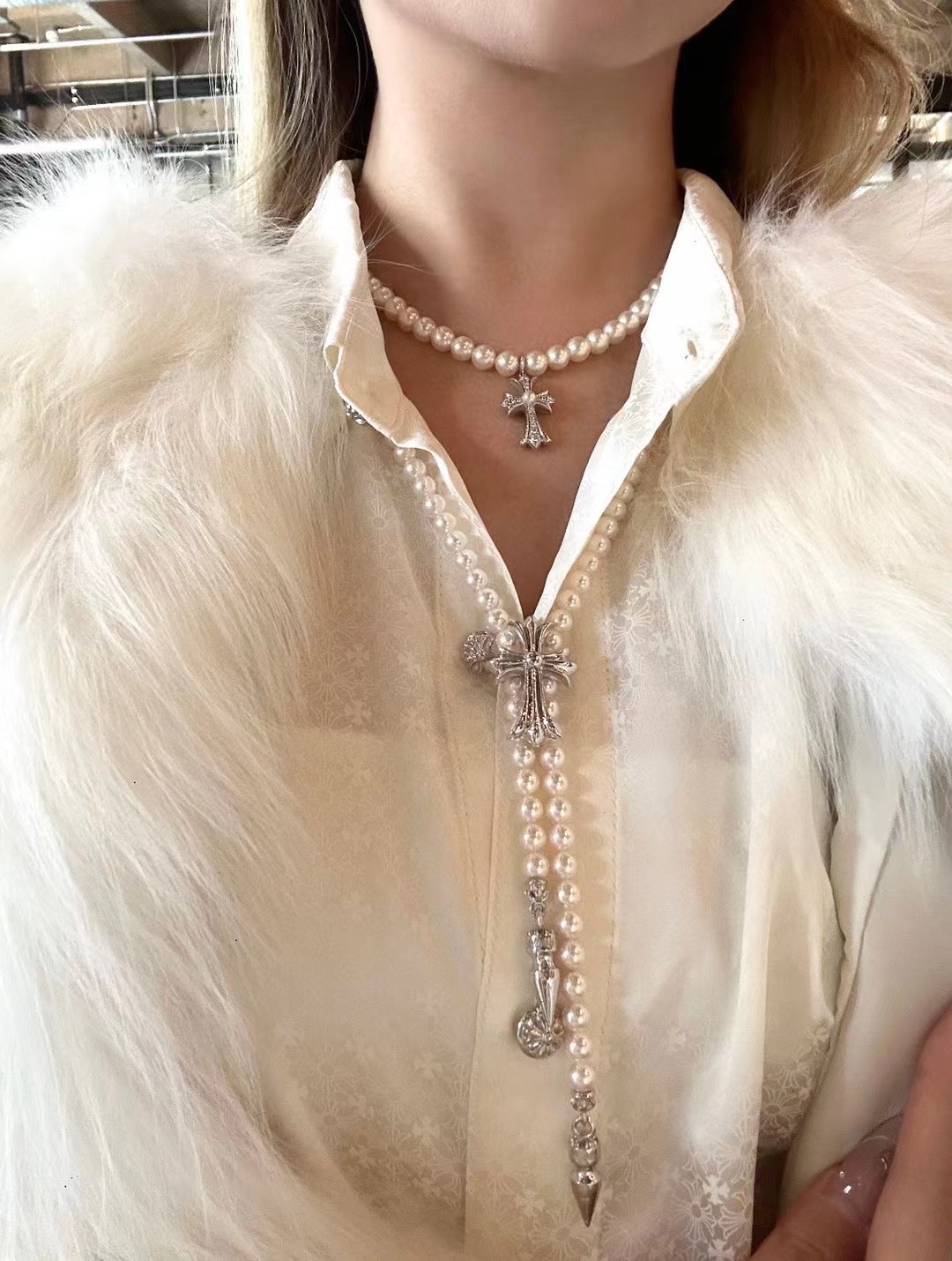 NO:3392664. The jewelry is from Chrome Hearts designer.