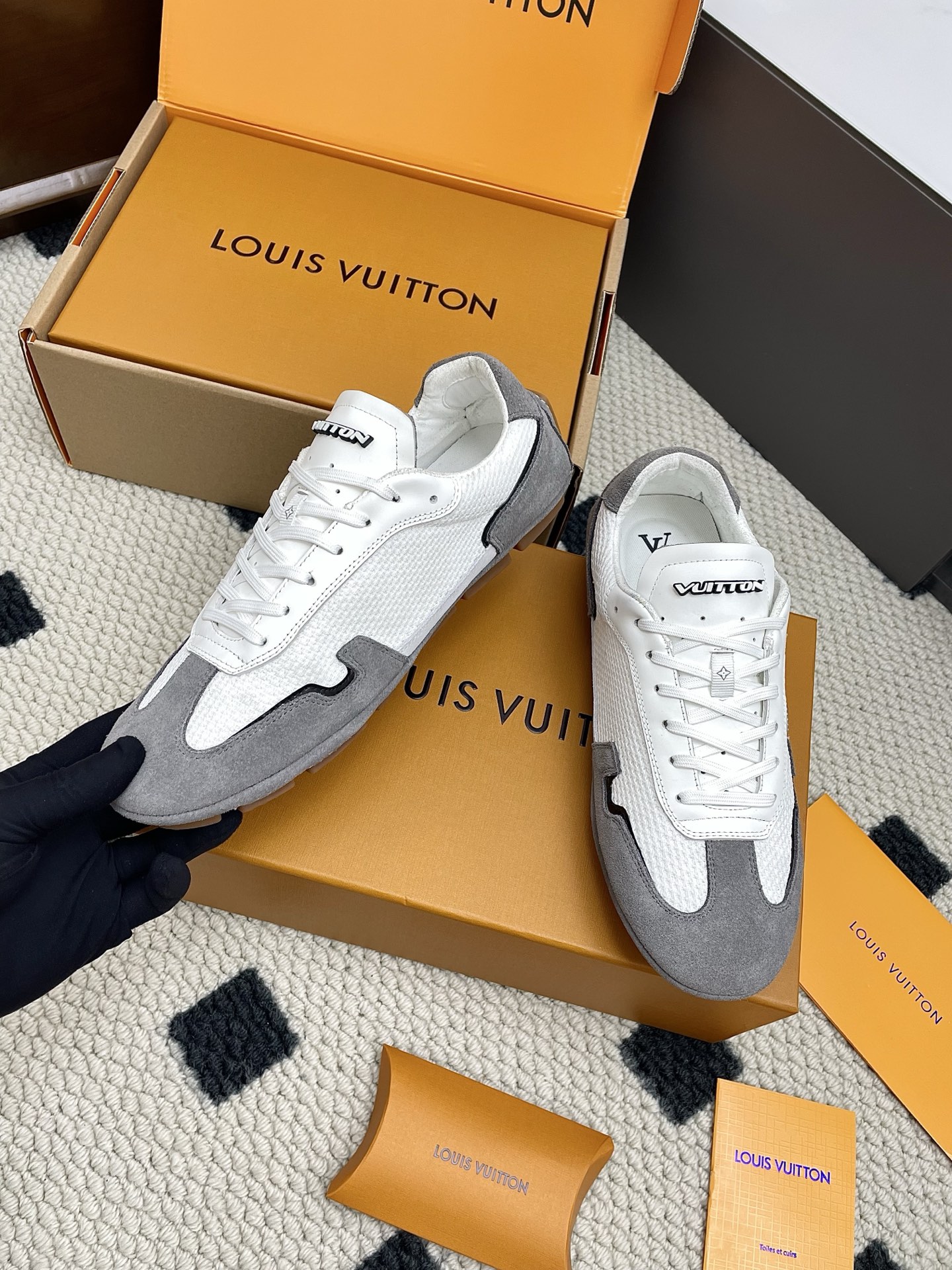 This shoes is AAAAA 1:1 quality (superb). Materials used are identical to the original ones. Louis Vuitton trademark marks are indistinguishable to the authentic. Photos take by actual shoes, what you receive will be 100% same with our photos.