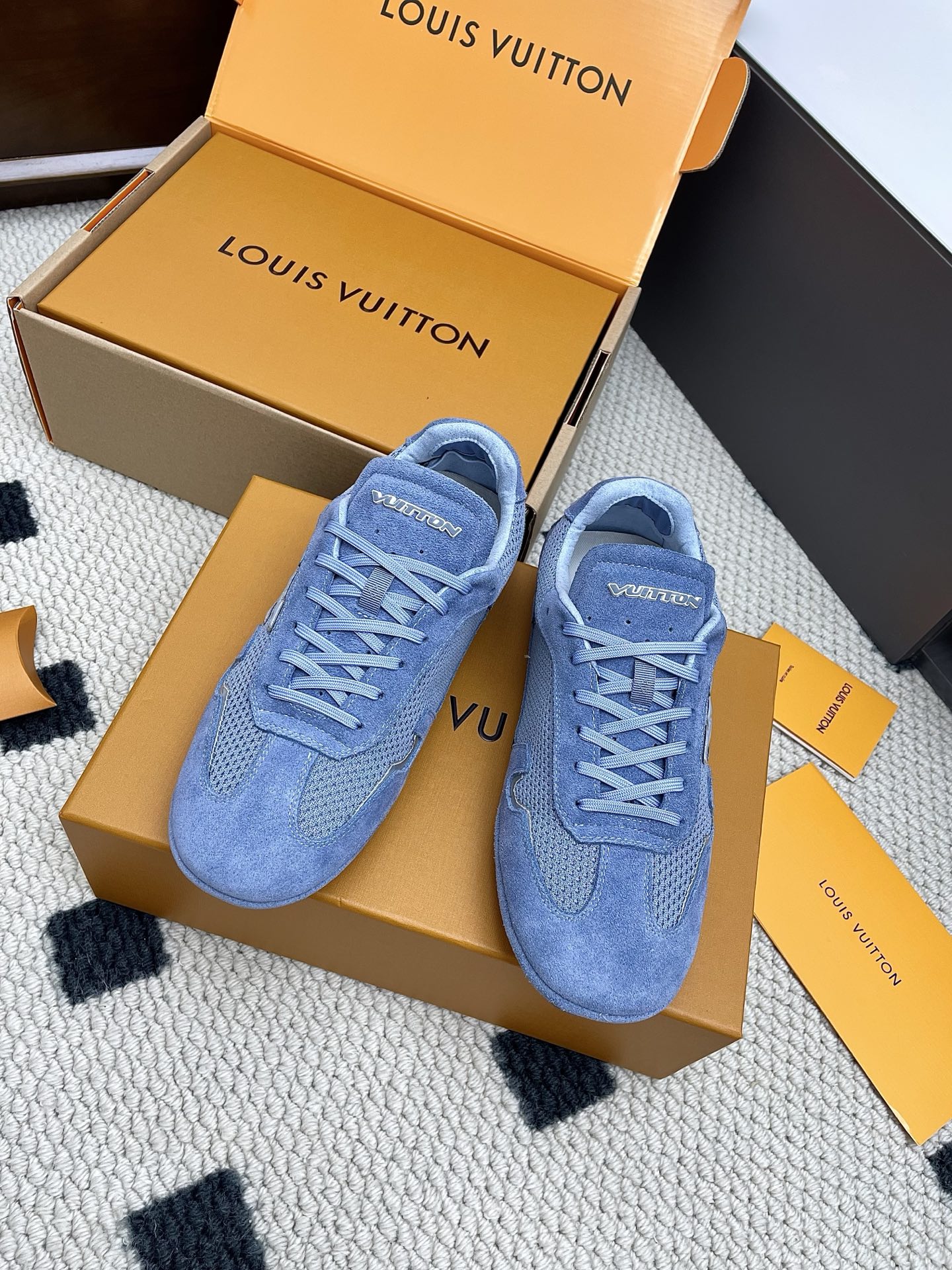 This shoes is AAAAA 1:1 quality (superb). Materials used are identical to the original ones. Louis Vuitton trademark marks are indistinguishable to the authentic. Photos take by actual shoes, what you receive will be 100% same with our photos.