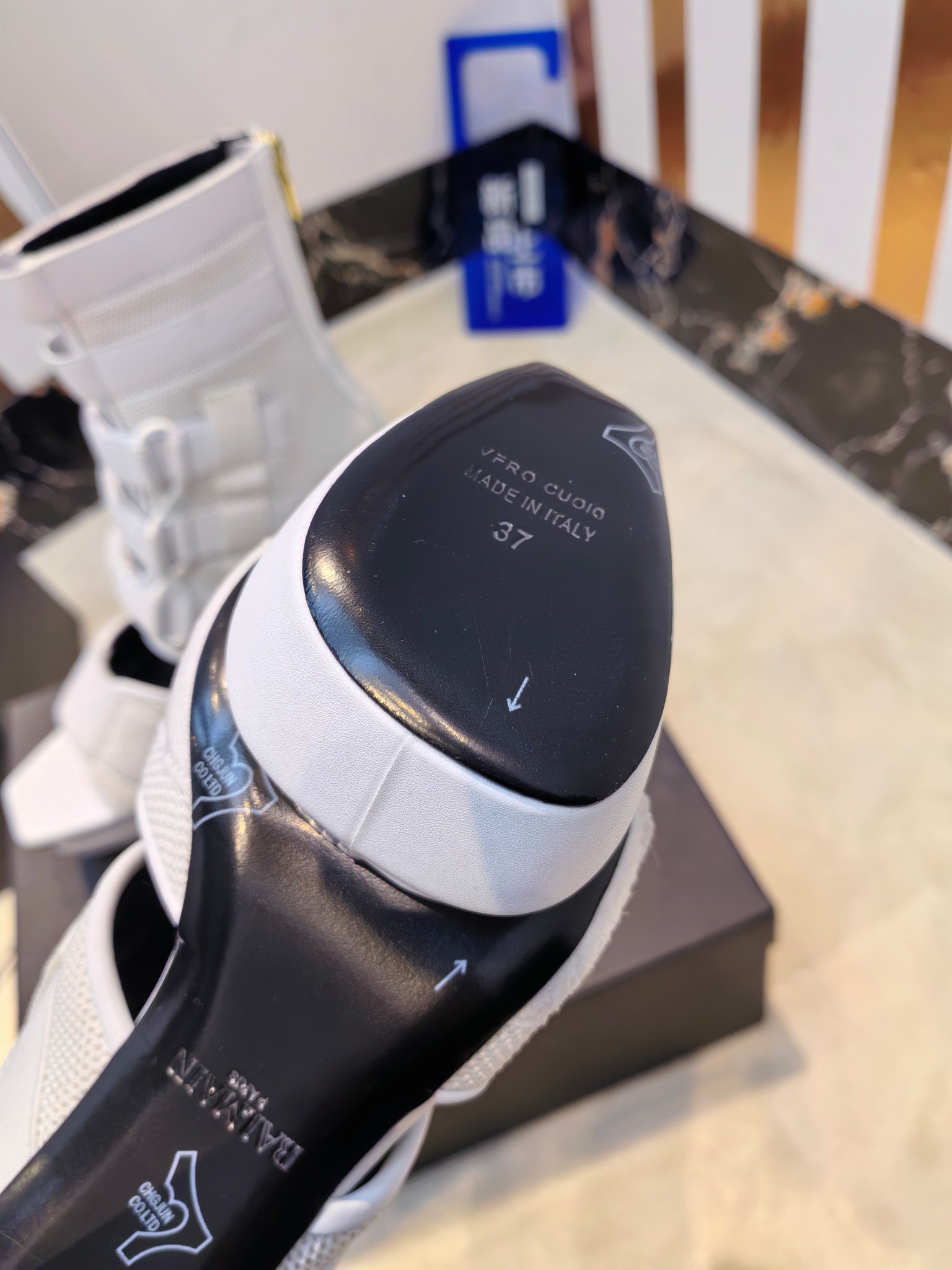 This shoes is AAAAA 1:1 quality (superb). Materials used are identical to the original ones. Balmain trademark marks are indistinguishable to the authentic. Photos take by actual shoes, what you receive will be 100% same with our photos.