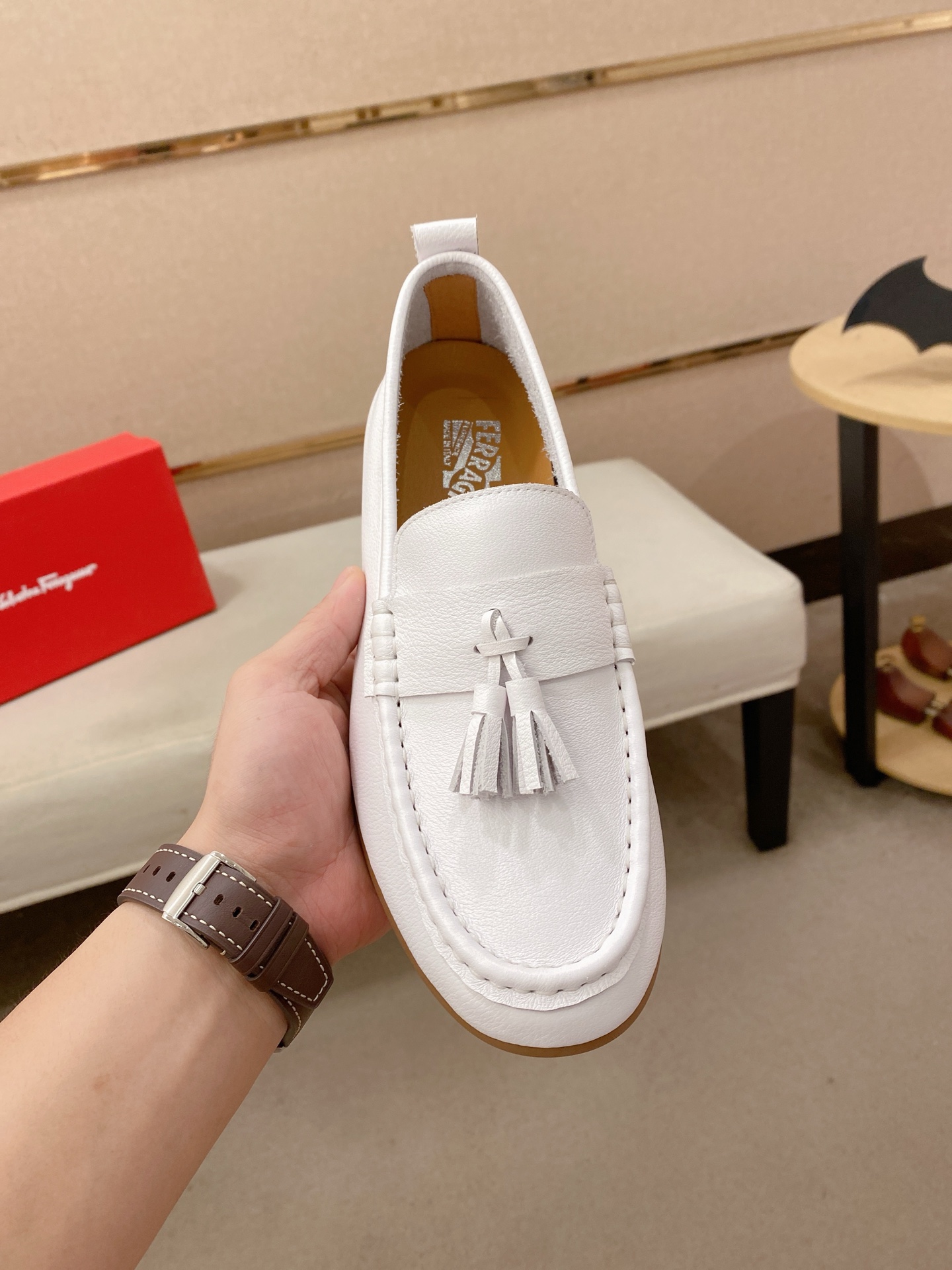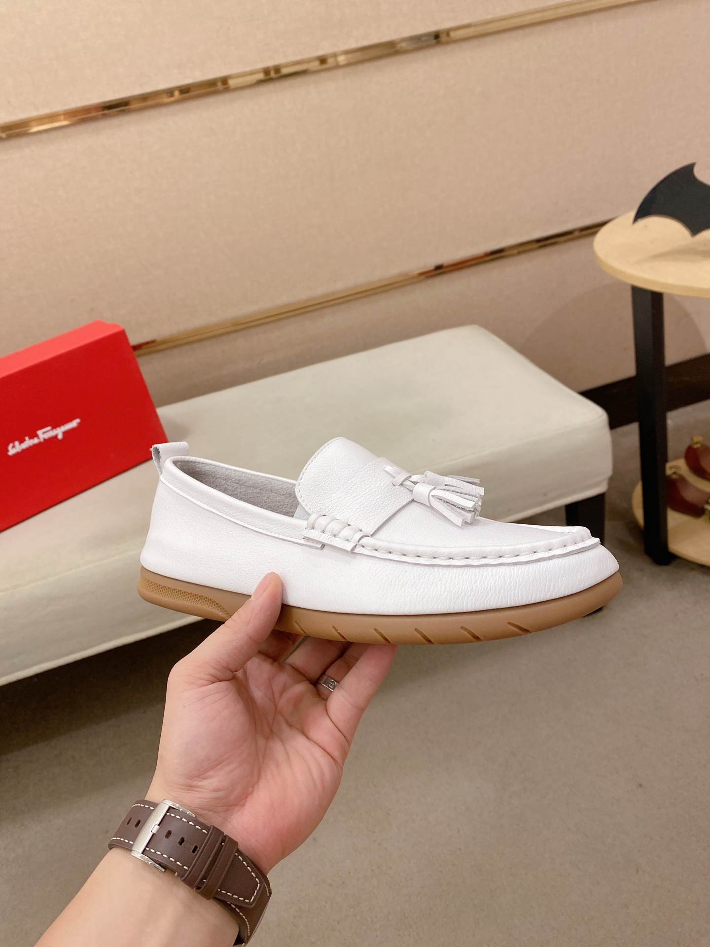 This shoes is AAAAA 1:1 quality (superb). Materials used are identical to the original ones. Salvatore Ferragamo trademark marks are indistinguishable to the authentic. Photos take by actual shoes, what you receive will be 100% same with our photos.