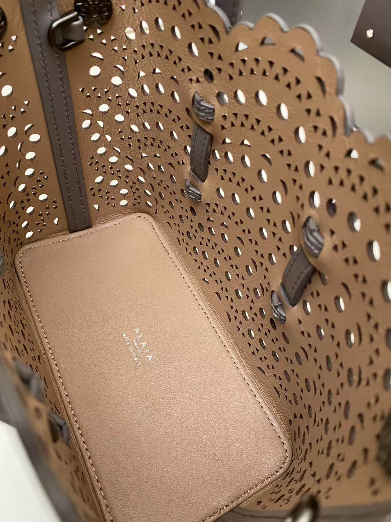 This bags is AAAAA 1:1 quality (superb). Materials used are identical to the original ones. Alaia trademark marks are indistinguishable to the authentic. Photos take by actual bags, what you receive will be 100% same with our photos.