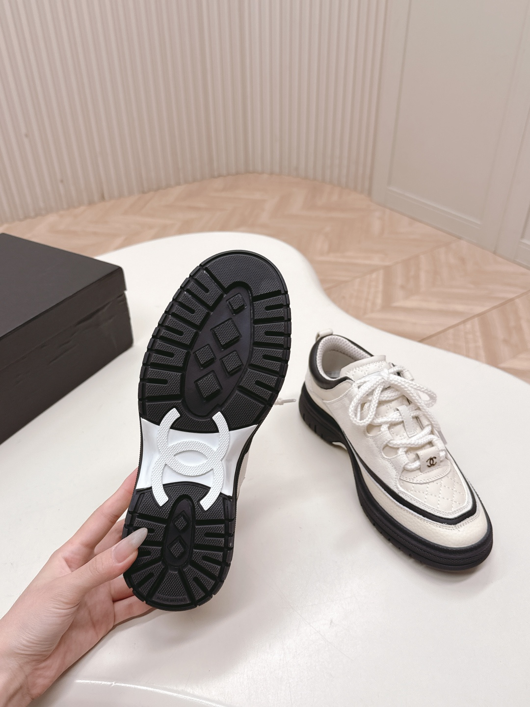 This shoes is AAAAA 1:1 quality (superb). Materials used are identical to the original ones. Chanel trademark marks are indistinguishable to the authentic. Photos take by actual shoes, what you receive will be 100% same with our photos.
