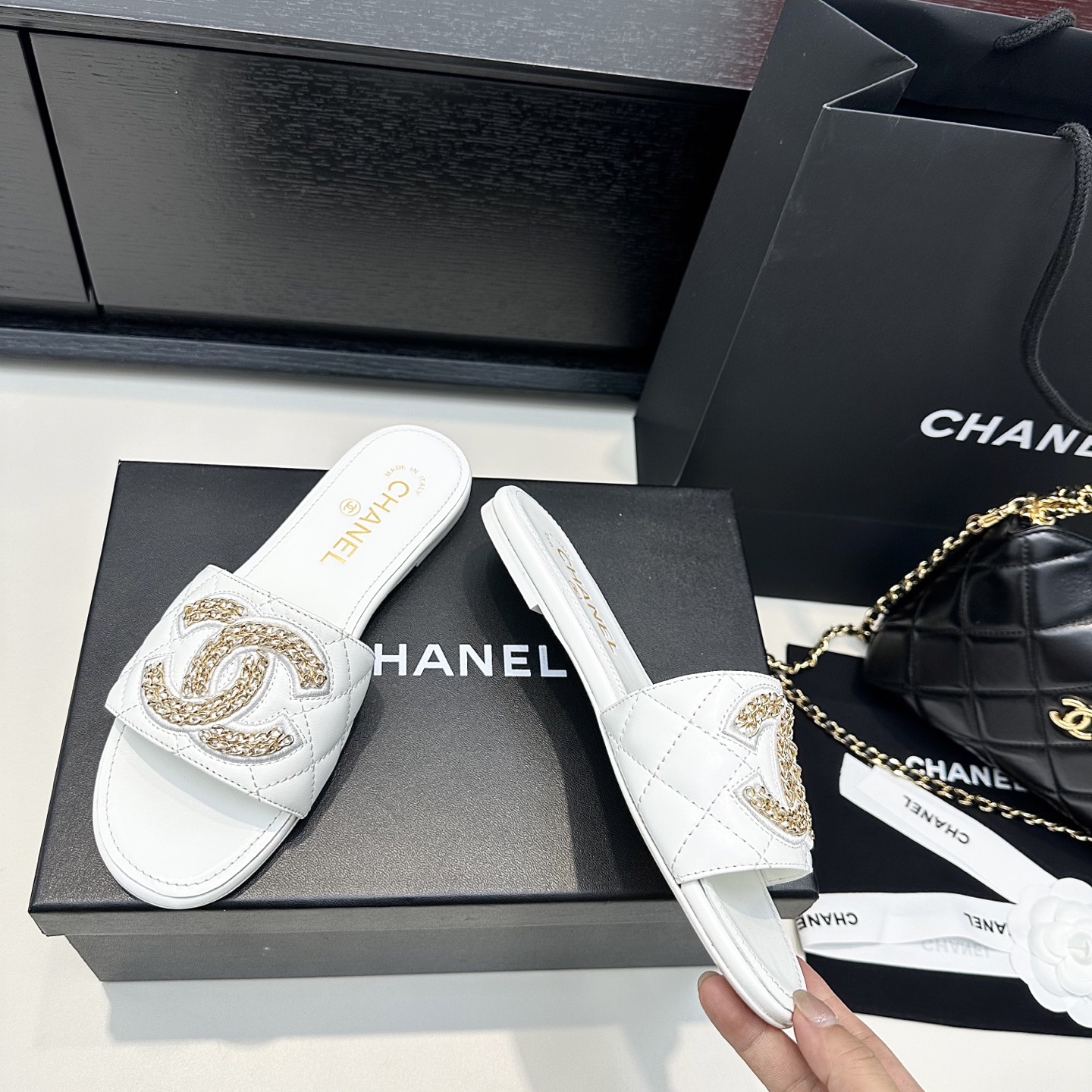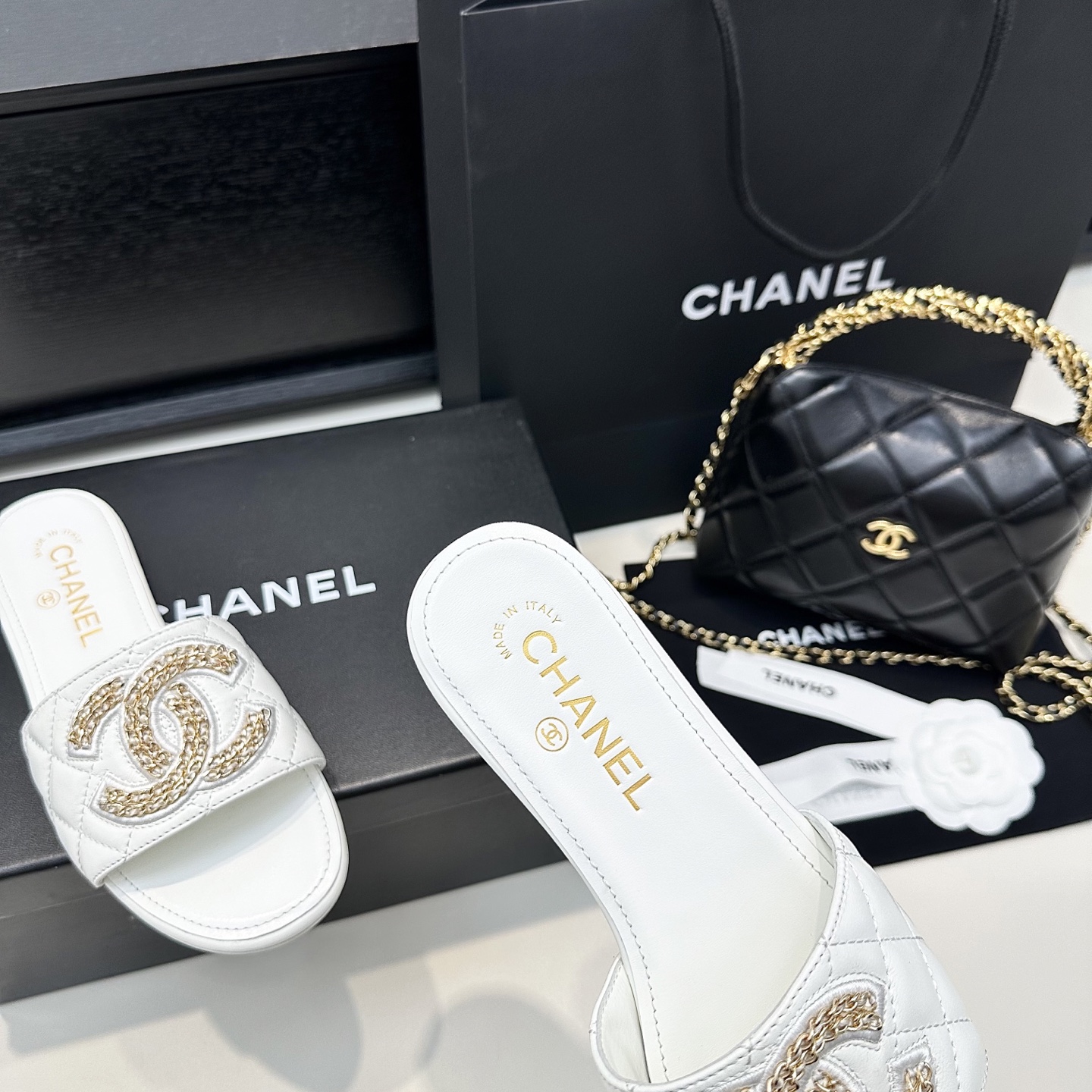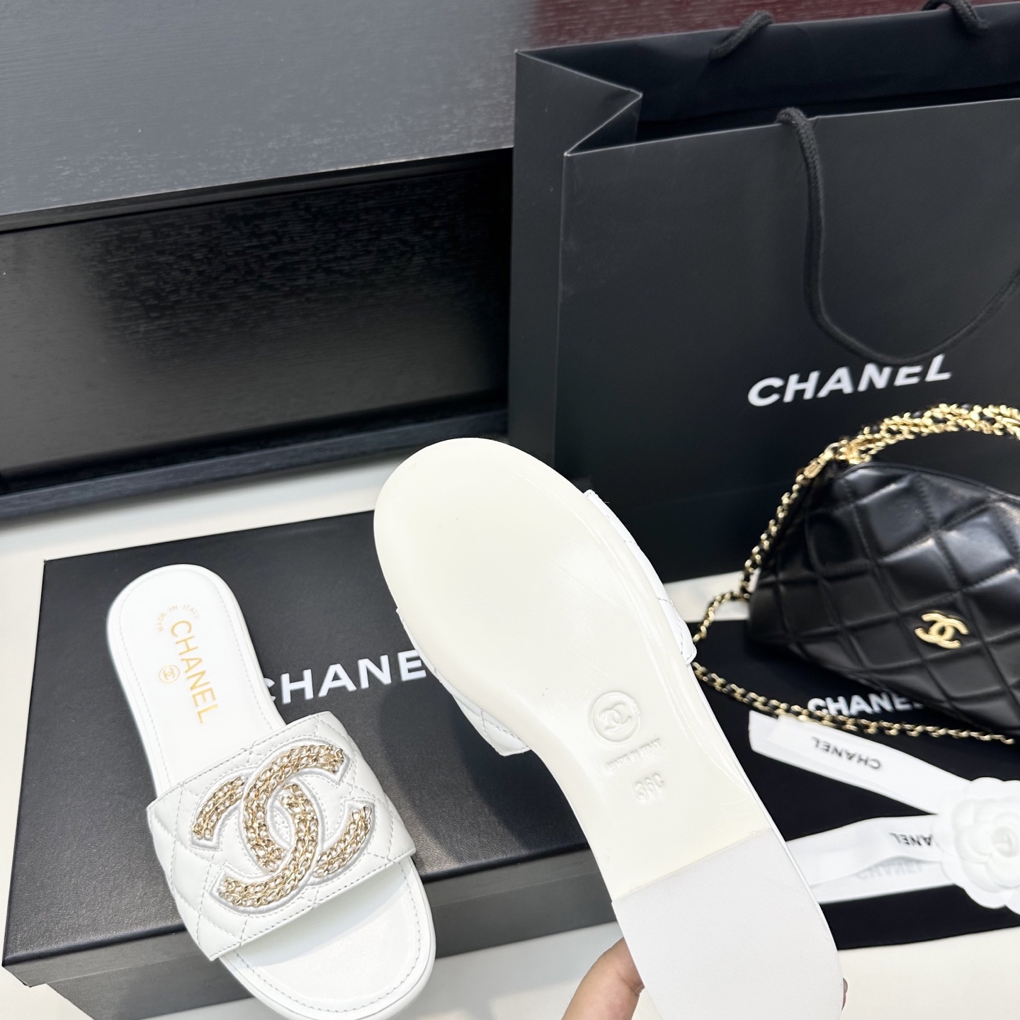 This shoes is AAAAA 1:1 quality (superb). Materials used are identical to the original ones. Chanel trademark marks are indistinguishable to the authentic. Photos take by actual shoes, what you receive will be 100% same with our photos.