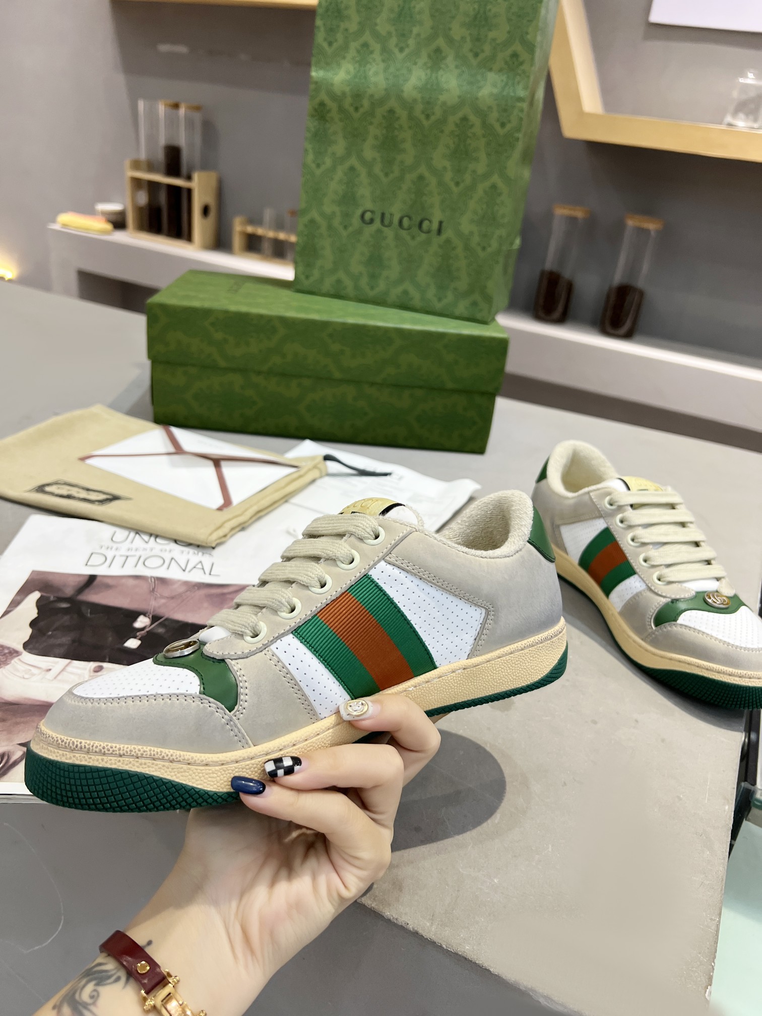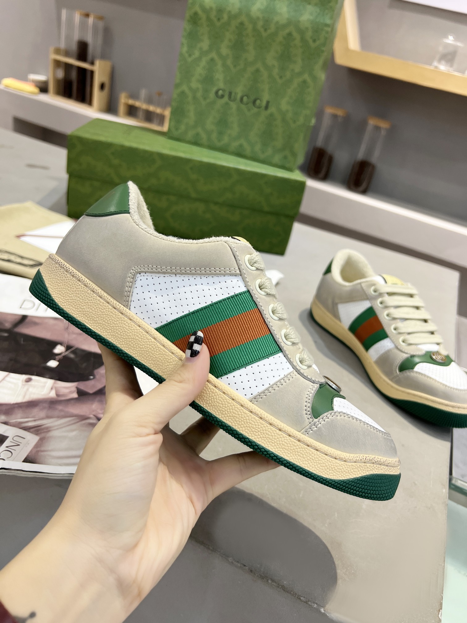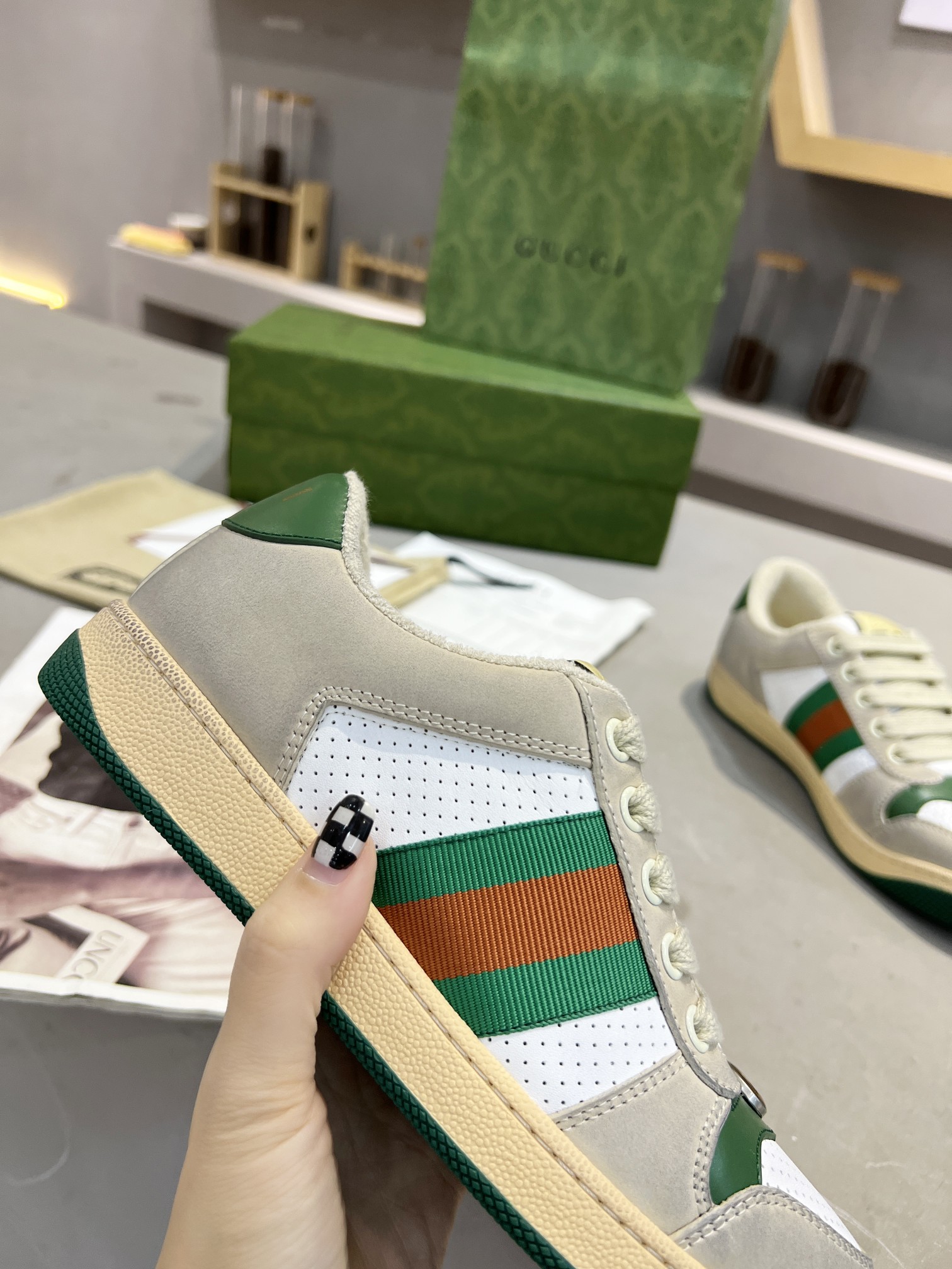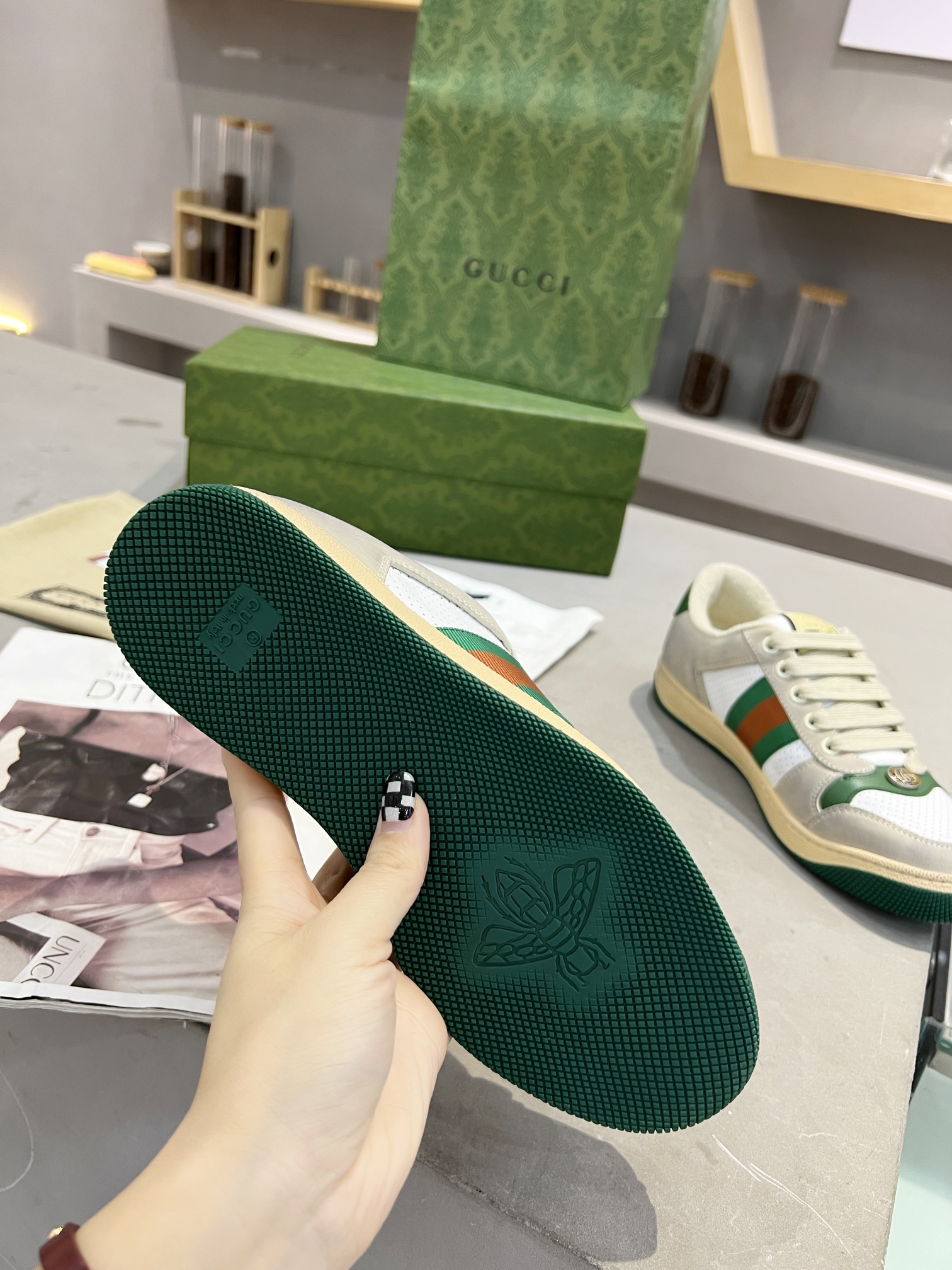 This shoes is AAAAA 1:1 quality (superb). Materials used are identical to the original ones. trademark marks are indistinguishable to the authentic. Photos take by actual shoes, what you receive will be 100% same with our photos.