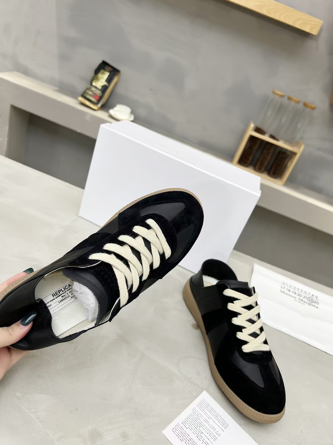 This shoes is AAAAA 1:1 quality (superb). Materials used are identical to the original ones. Maison Margiela trademark marks are indistinguishable to the authentic. Photos take by actual shoes, what you receive will be 100% same with our photos.