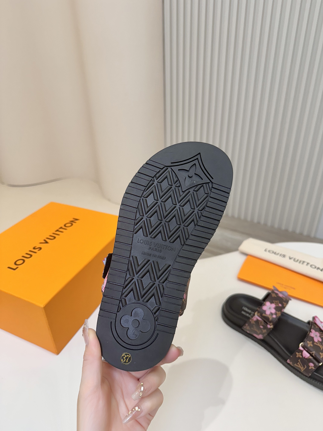 This shoes is AAAAA 1:1 quality (superb). Materials used are identical to the original ones. Louis Vuitton trademark marks are indistinguishable to the authentic. Photos take by actual shoes, what you receive will be 100% same with our photos.