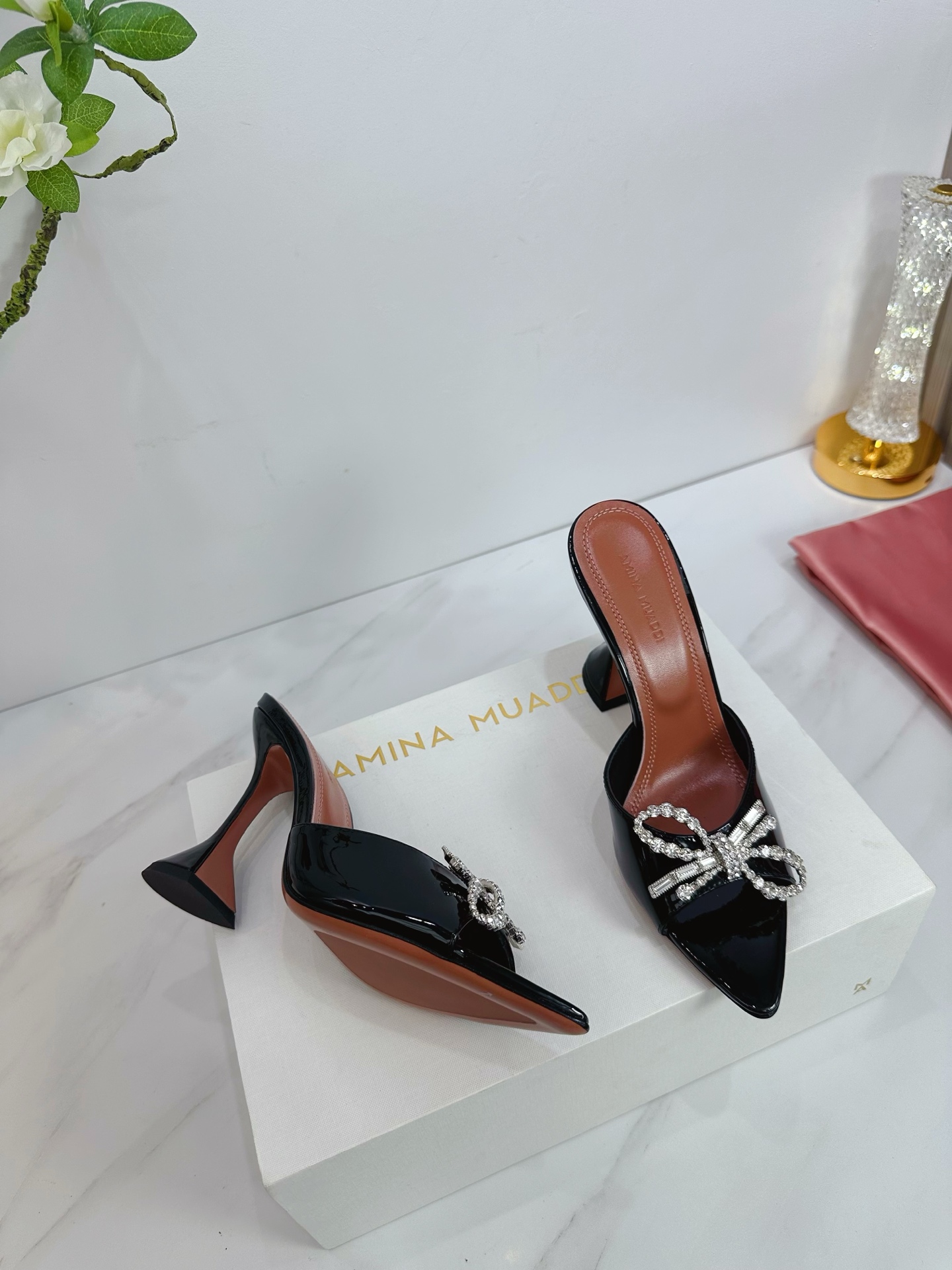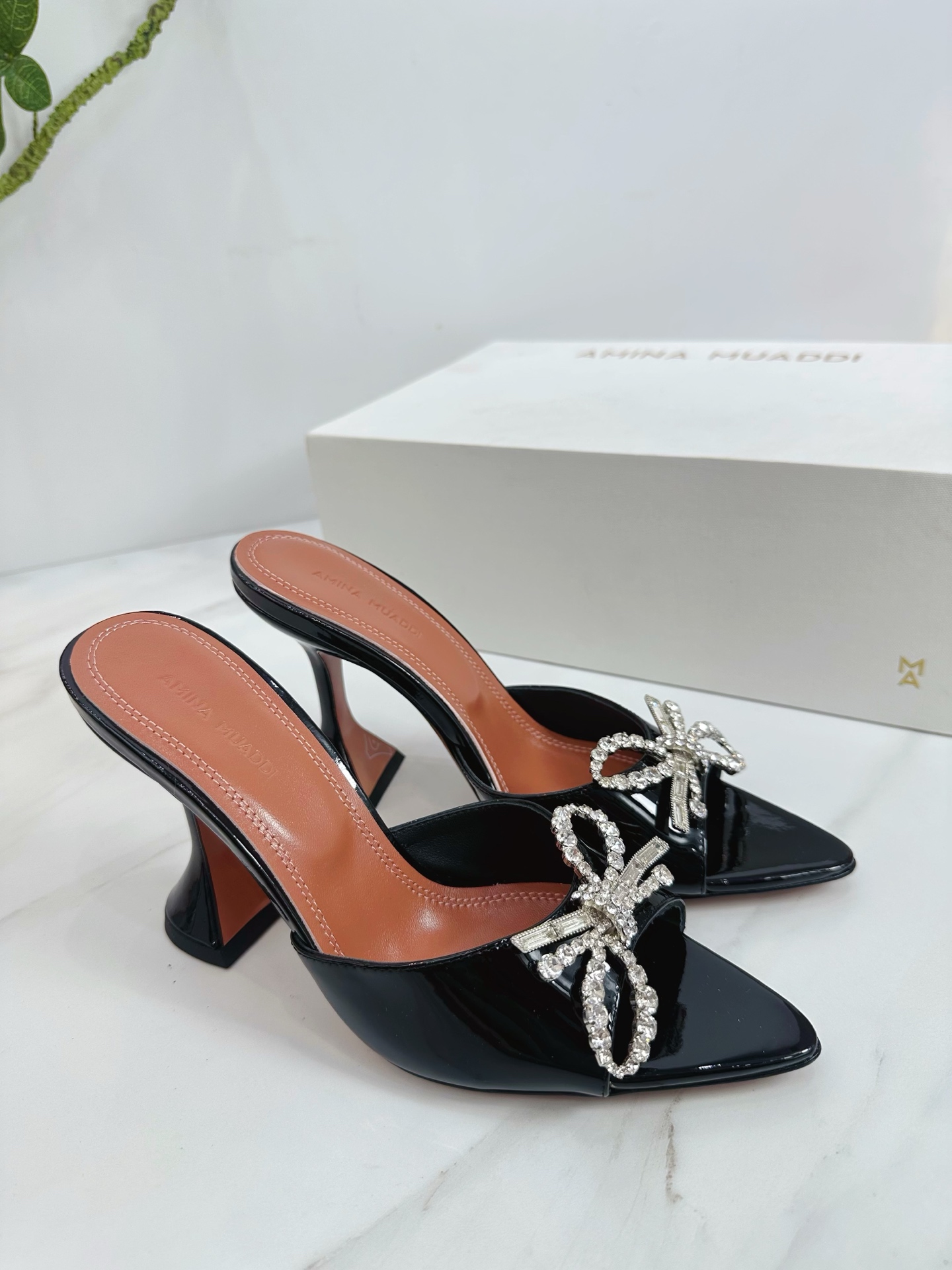 This shoes is AAAAA 1:1 quality (superb). Materials used are identical to the original ones. Amina Muaddi trademark marks are indistinguishable to the authentic. Photos take by actual shoes, what you receive will be 100% same with our photos.