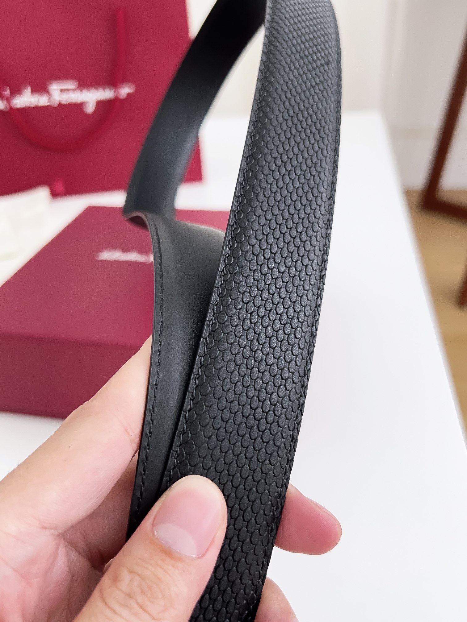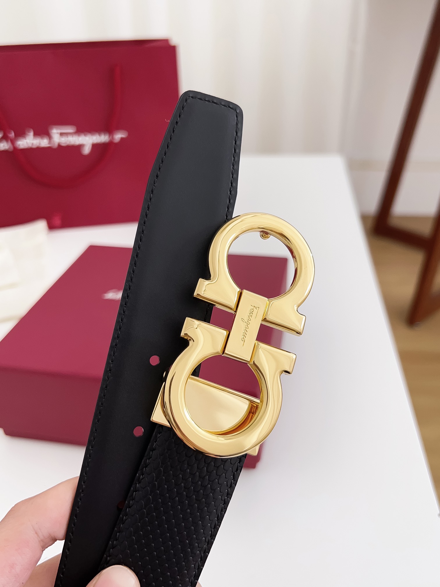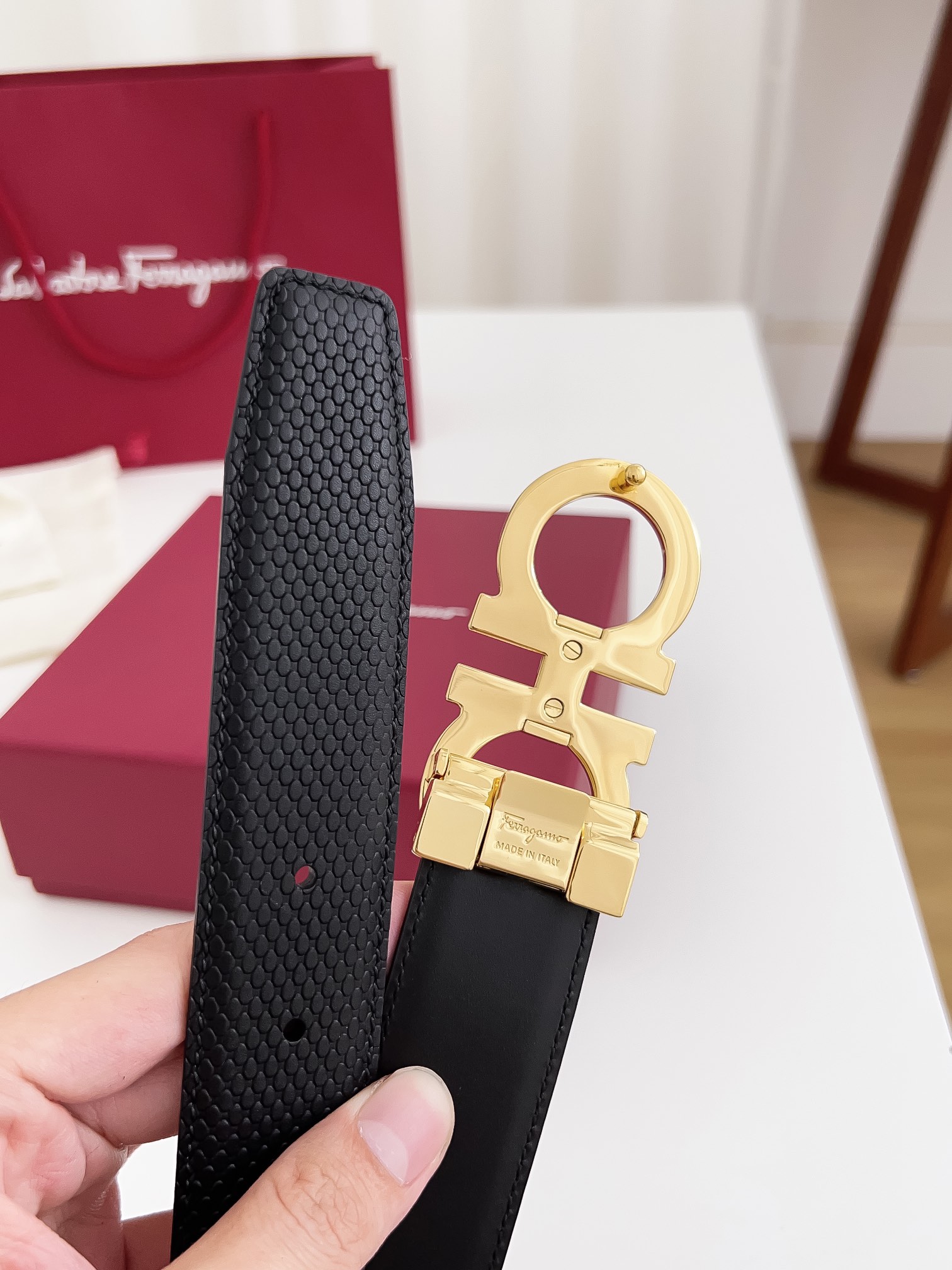 This belt is AAAAA 1:1 quality (superb). Materials used are identical to the original ones. Salvatore Ferragamo trademark marks are indistinguishable to the authentic. Photos take by actual belt, what you receive will be 100% same with our photos.