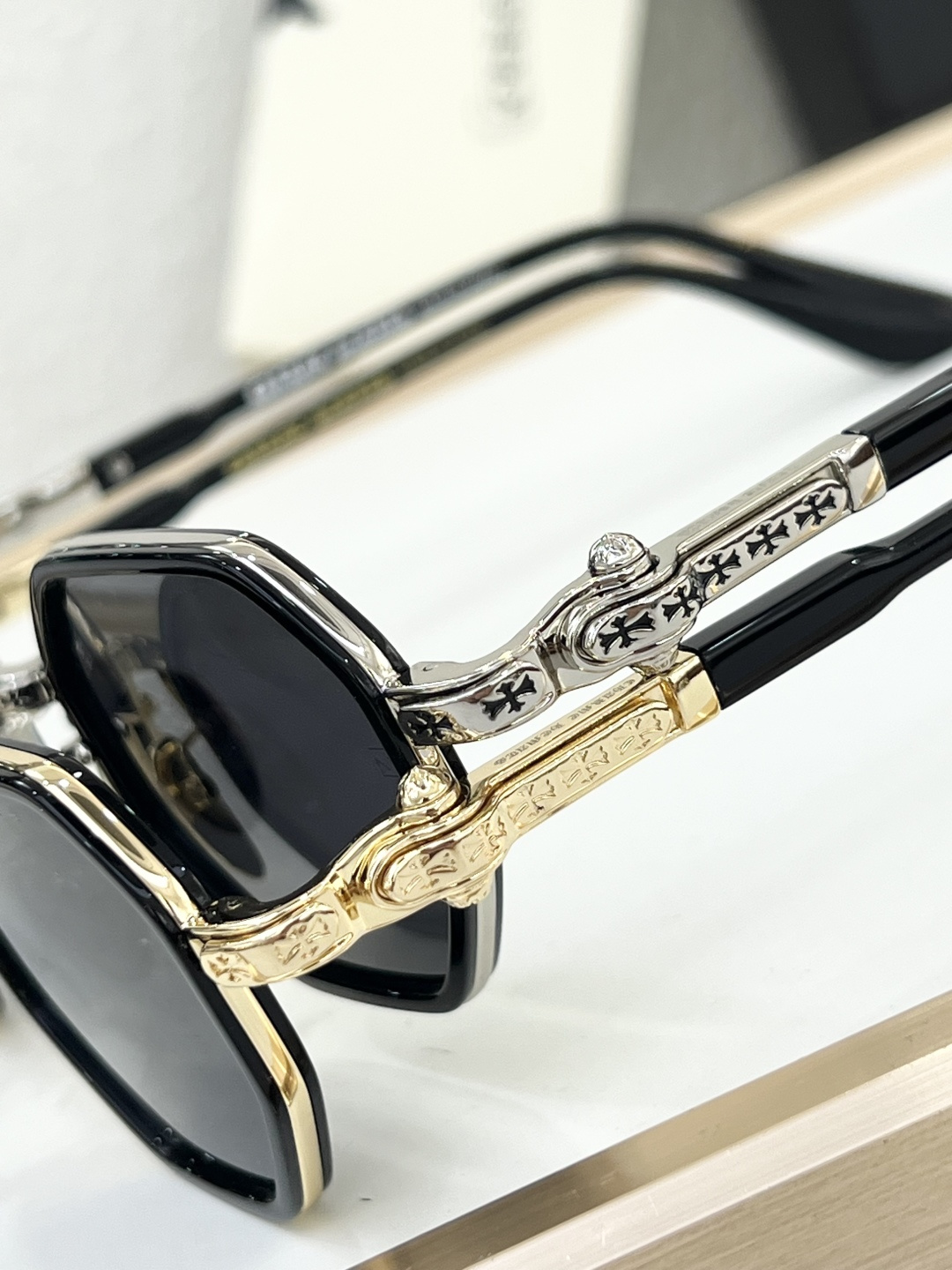 This sunglasses is AAAAA 1:1 quality (superb). Materials used are identical to the original ones. Chrome Hearts trademark marks are indistinguishable to the authentic. Photos take by actual sunglasses, what you receive will be 100% same with our photos.