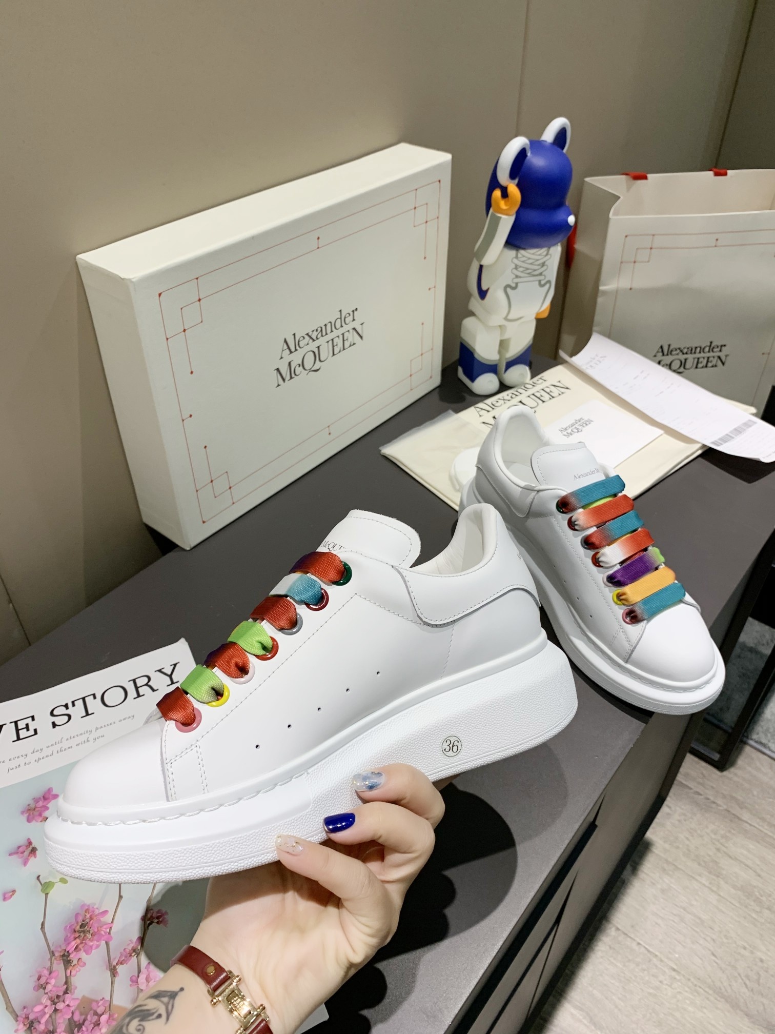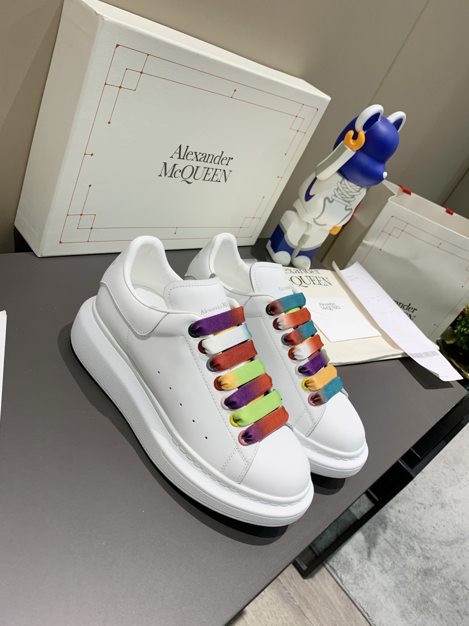 This shoes is AAAAA 1:1 quality (superb). Materials used are identical to the original ones. McQueen trademark marks are indistinguishable to the authentic. Photos take by actual shoes, what you receive will be 100% same with our photos.