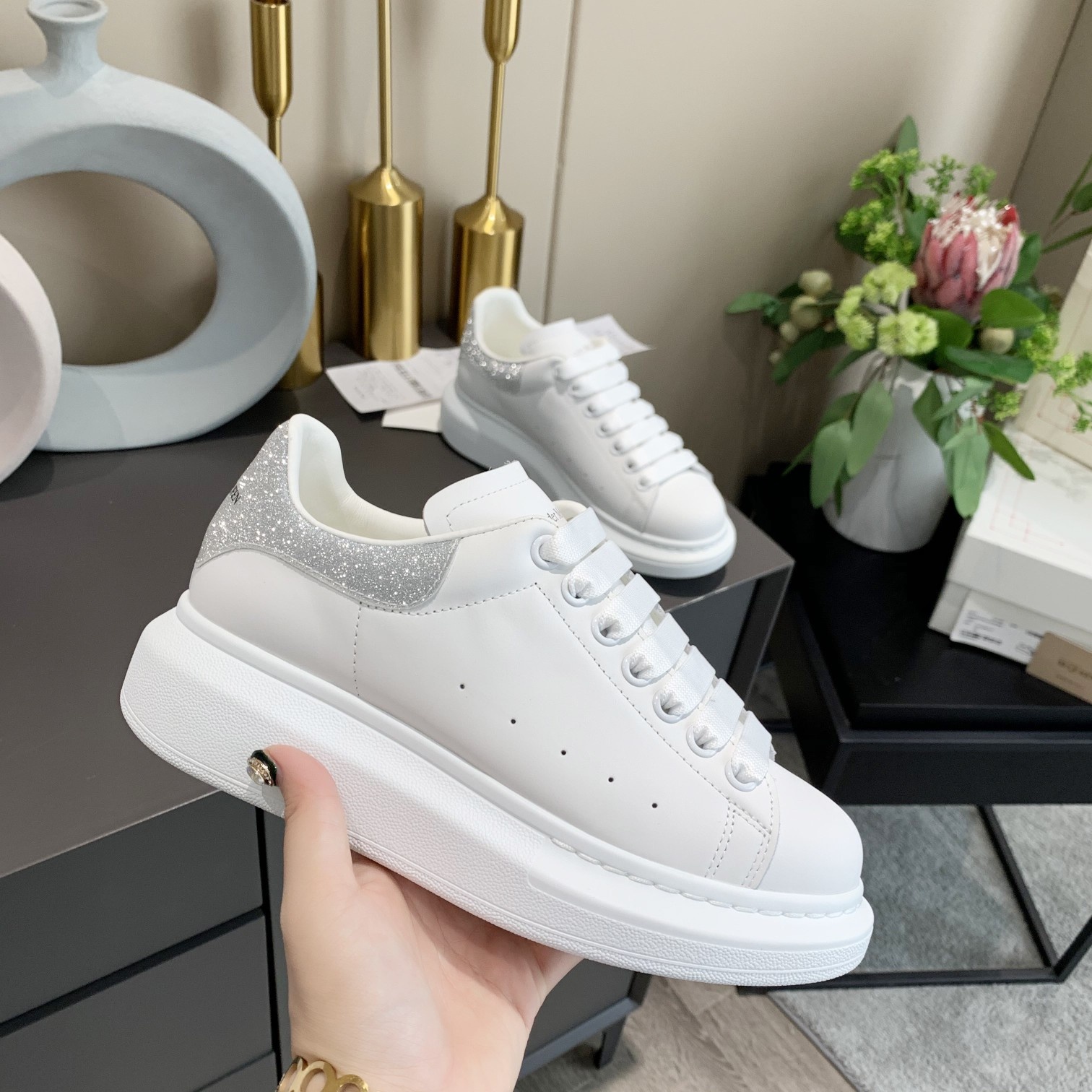 This shoes is AAAAA 1:1 quality (superb). Materials used are identical to the original ones. McQueen trademark marks are indistinguishable to the authentic. Photos take by actual shoes, what you receive will be 100% same with our photos.