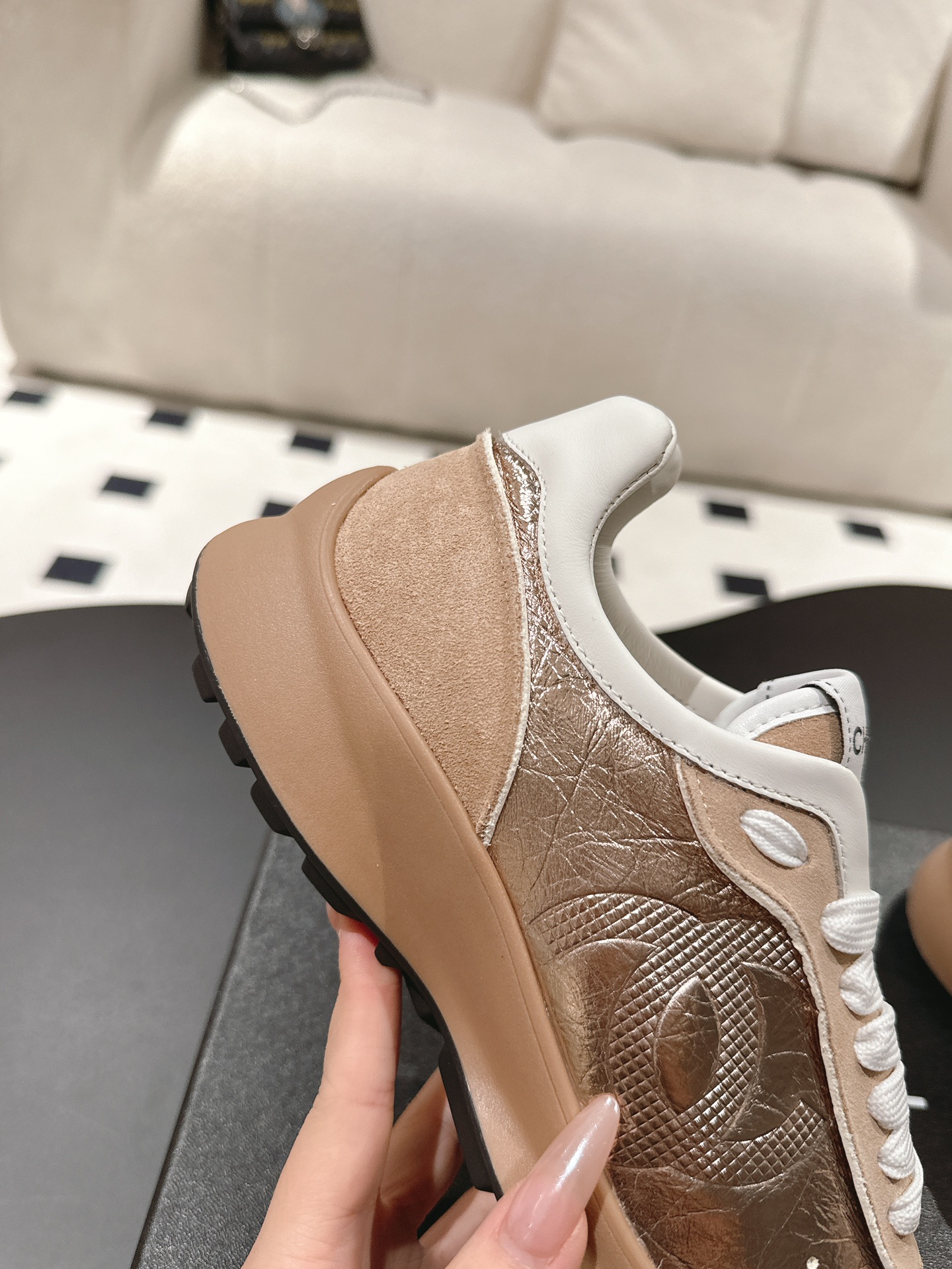 This shoes is AAAAA 1:1 quality (superb). Materials used are identical to the original ones. trademark marks are indistinguishable to the authentic. Photos take by actual shoes, what you receive will be 100% same with our photos.