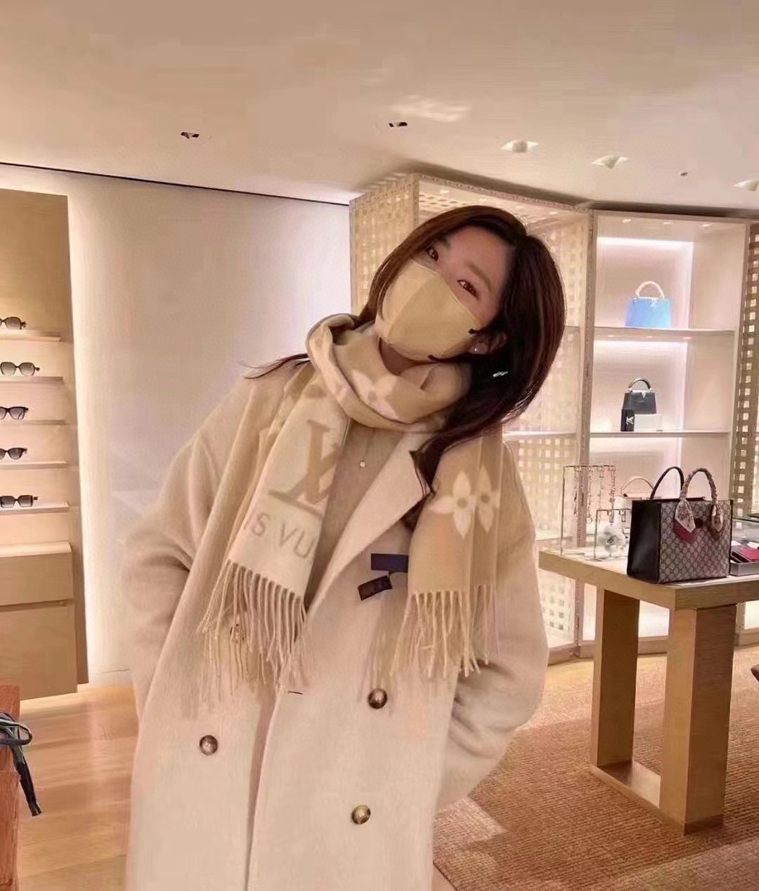 NO:3545323. The scarf is from Louis Vuitton designer.