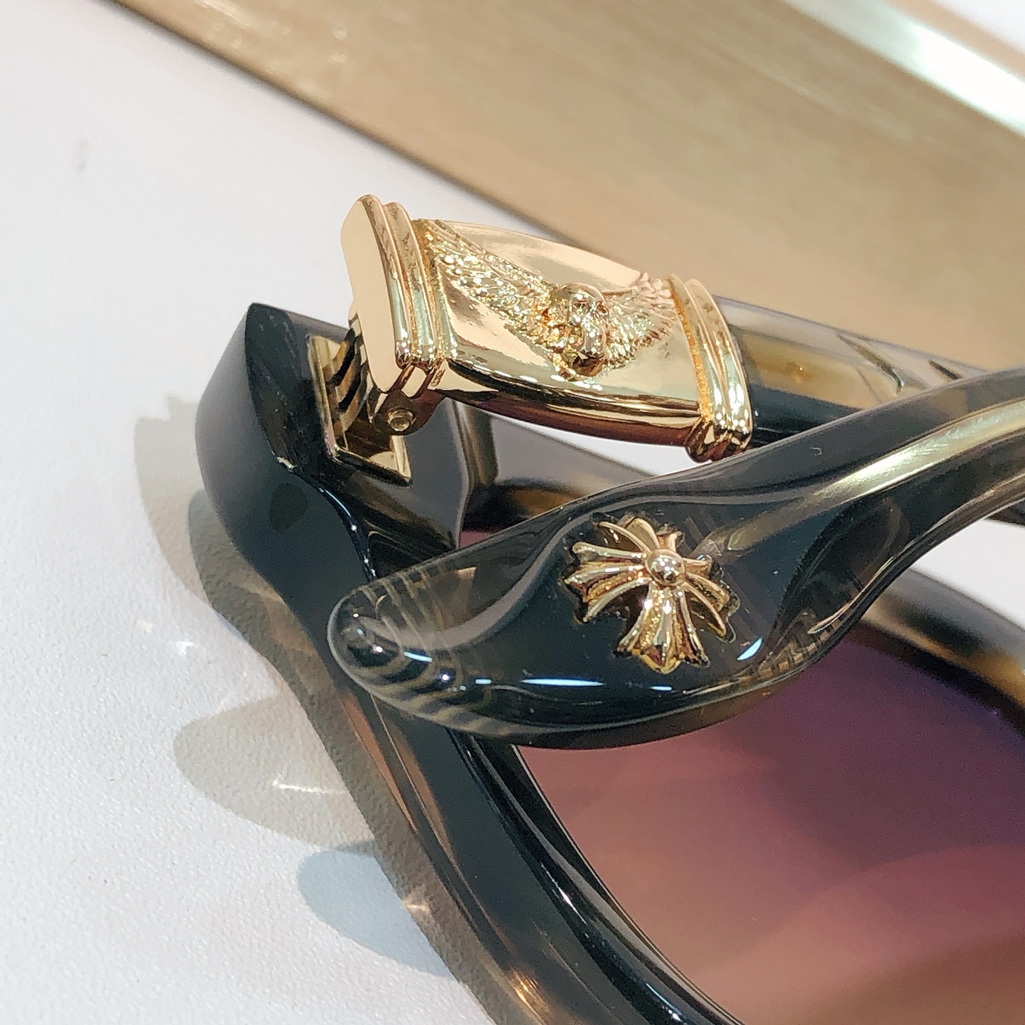 This sunglasses is AAAAA 1:1 quality (superb). Materials used are identical to the original ones. Chrome Hearts trademark marks are indistinguishable to the authentic. Photos take by actual sunglasses, what you receive will be 100% same with our photos.