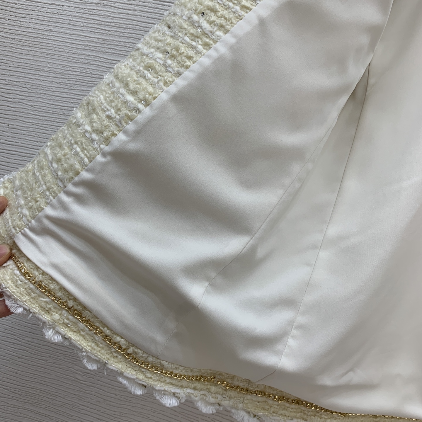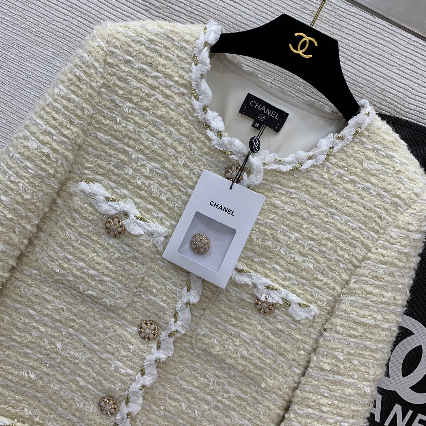 This clothes is AAAAA 1:1 quality (superb). Materials used are identical to the original ones. Chanel trademark marks are indistinguishable to the authentic. Photos take by actual clothes, what you receive will be 100% same with our photos.