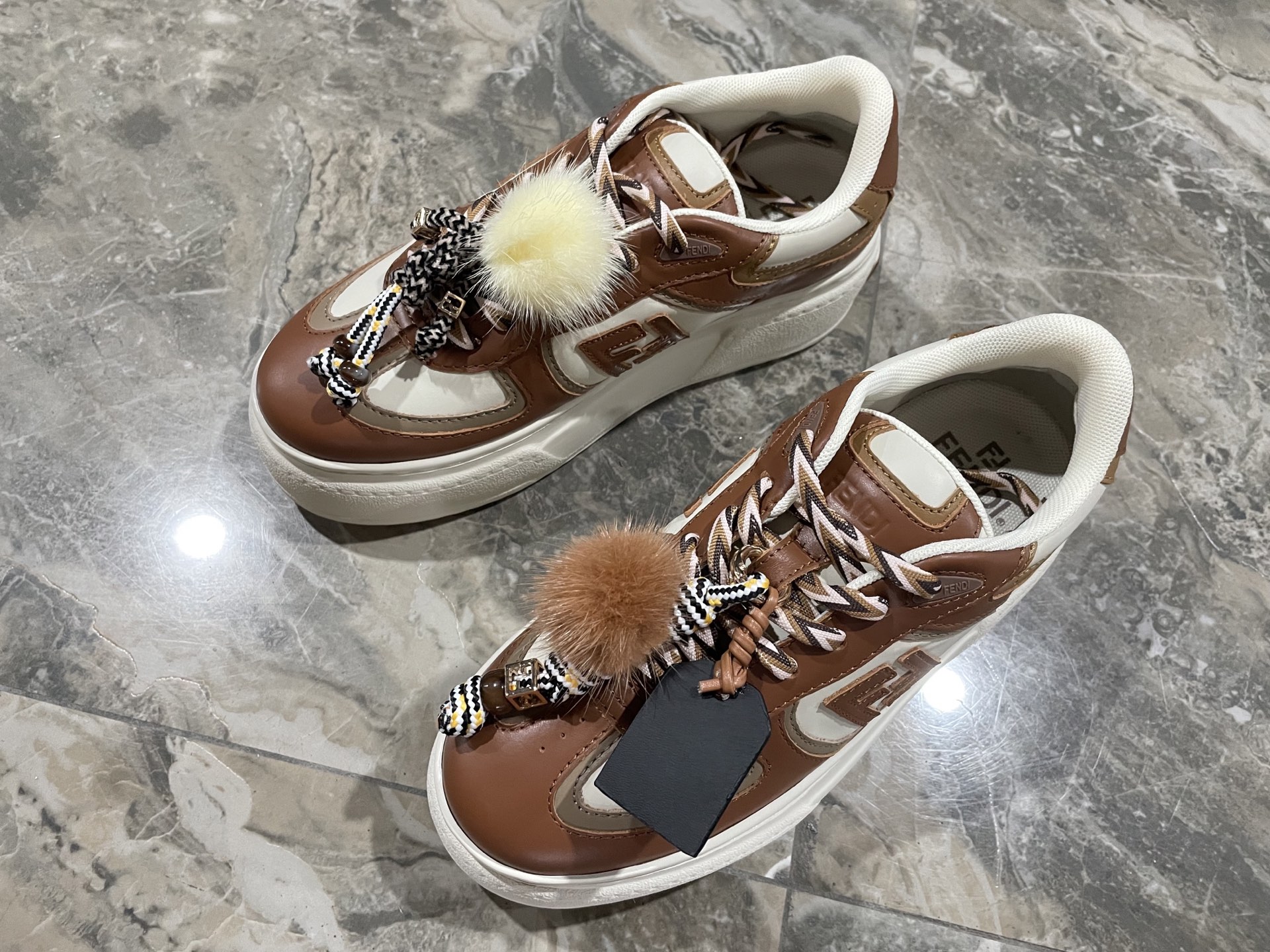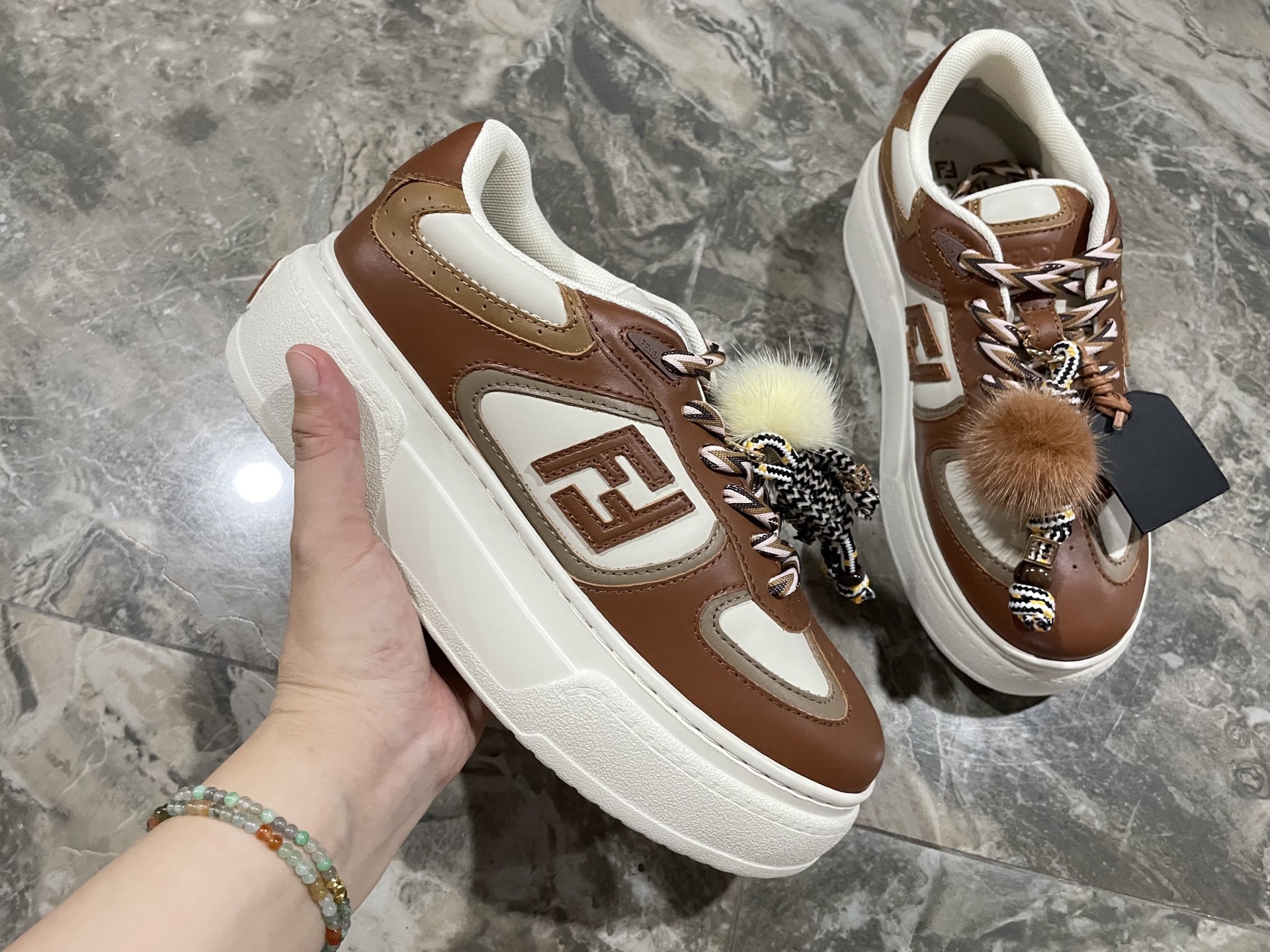This shoes is AAAAA 1:1 quality (superb). Materials used are identical to the original ones. Fendi trademark marks are indistinguishable to the authentic. Photos take by actual shoes, what you receive will be 100% same with our photos.