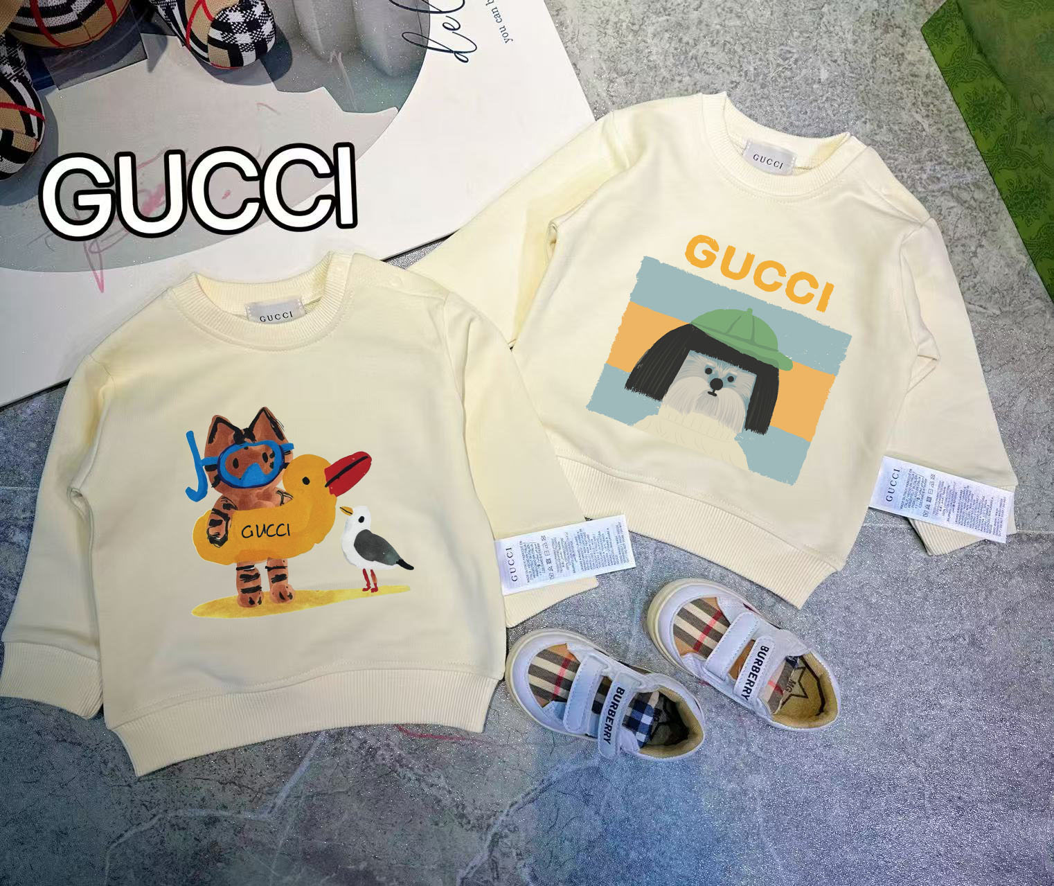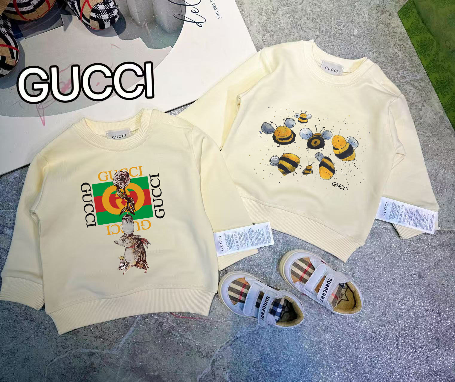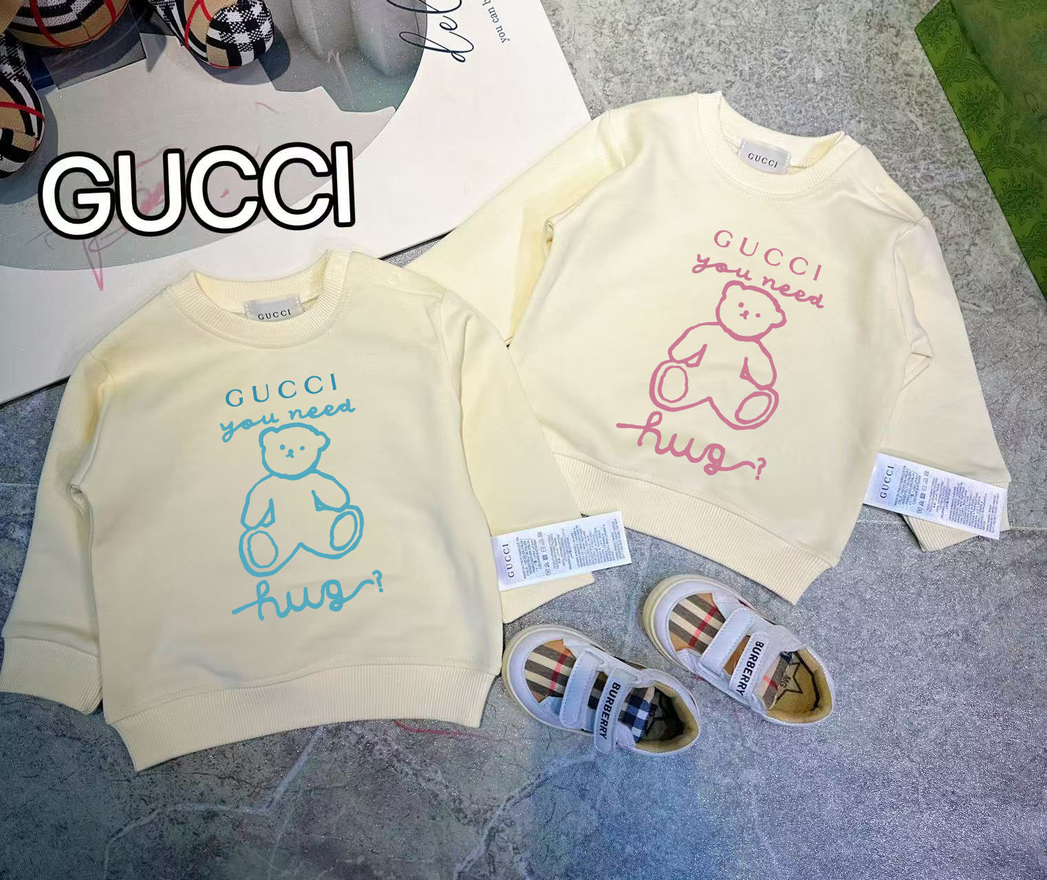 This children's clothes is AAAAA 1:1 quality (superb). Materials used are identical to the original ones. trademark marks are indistinguishable to the authentic. Photos take by actual children's clothes, what you receive will be 100% same with our photos.