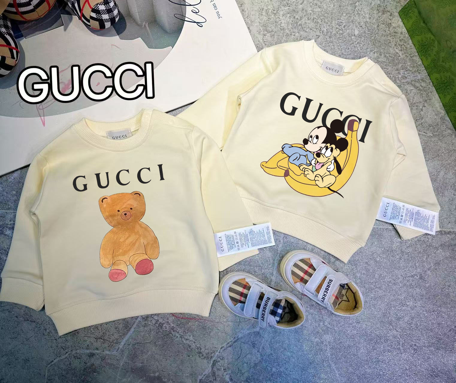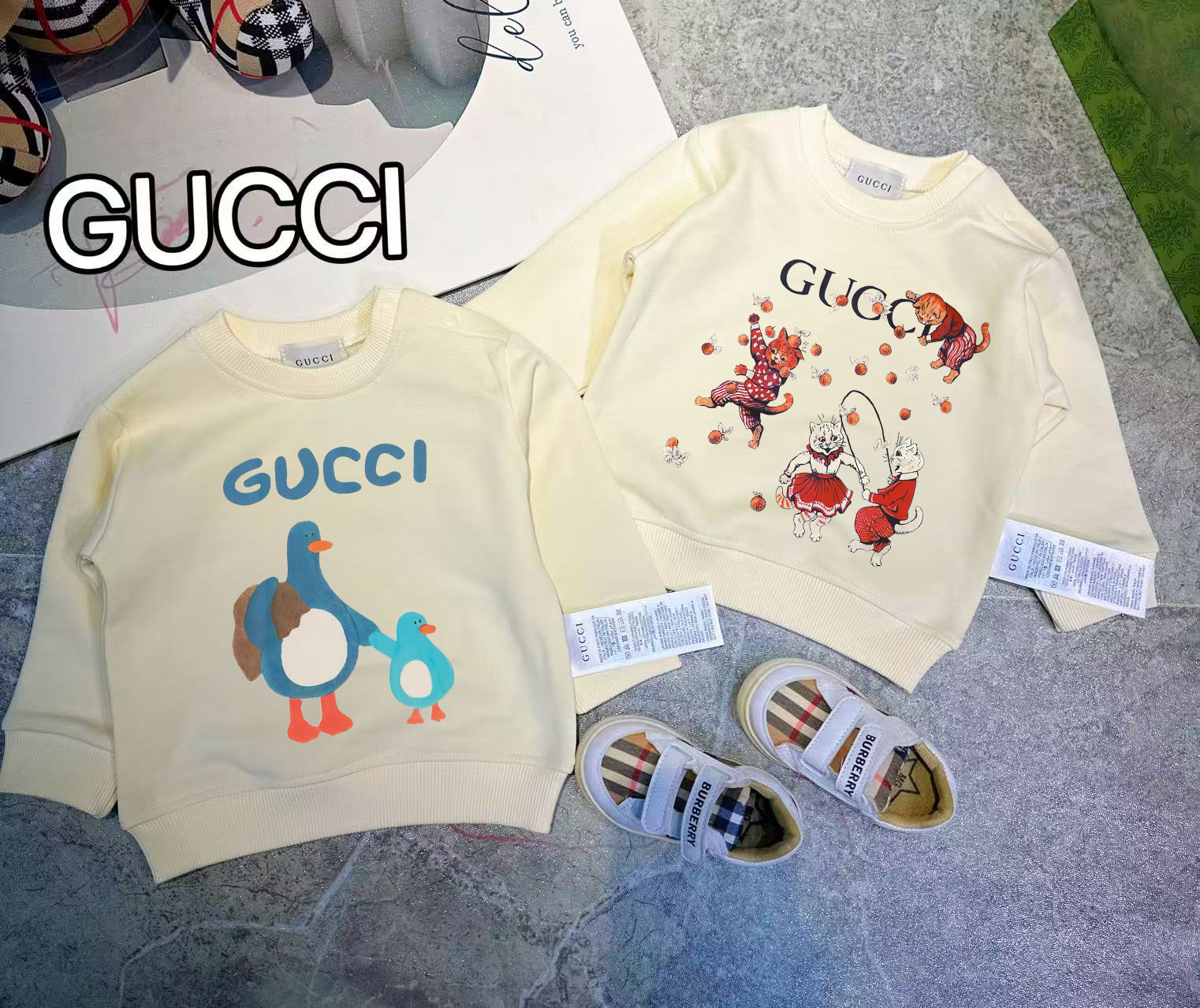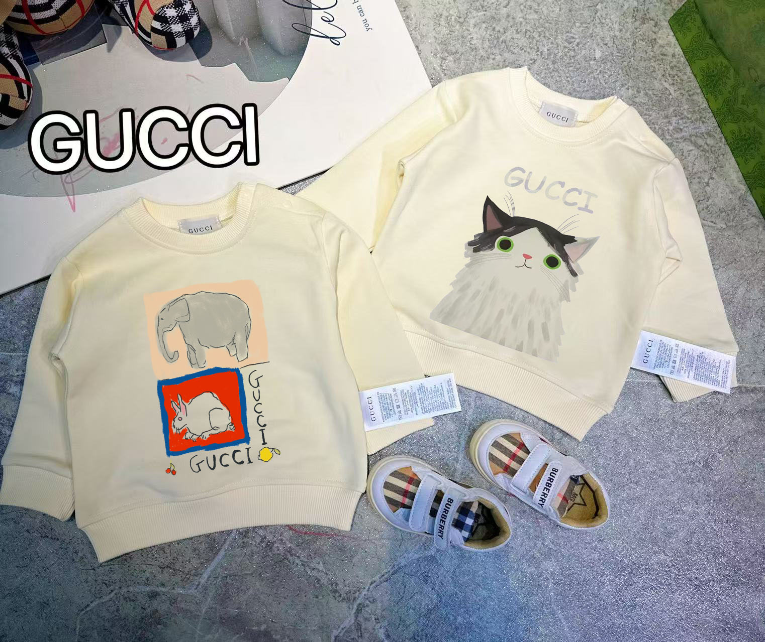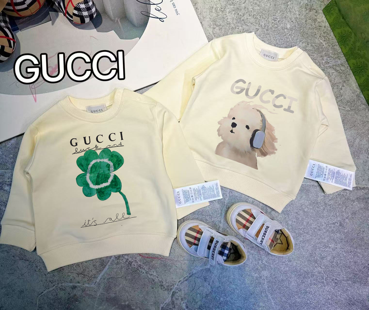 This children's clothes is AAAAA 1:1 quality (superb). Materials used are identical to the original ones. trademark marks are indistinguishable to the authentic. Photos take by actual children's clothes, what you receive will be 100% same with our photos.