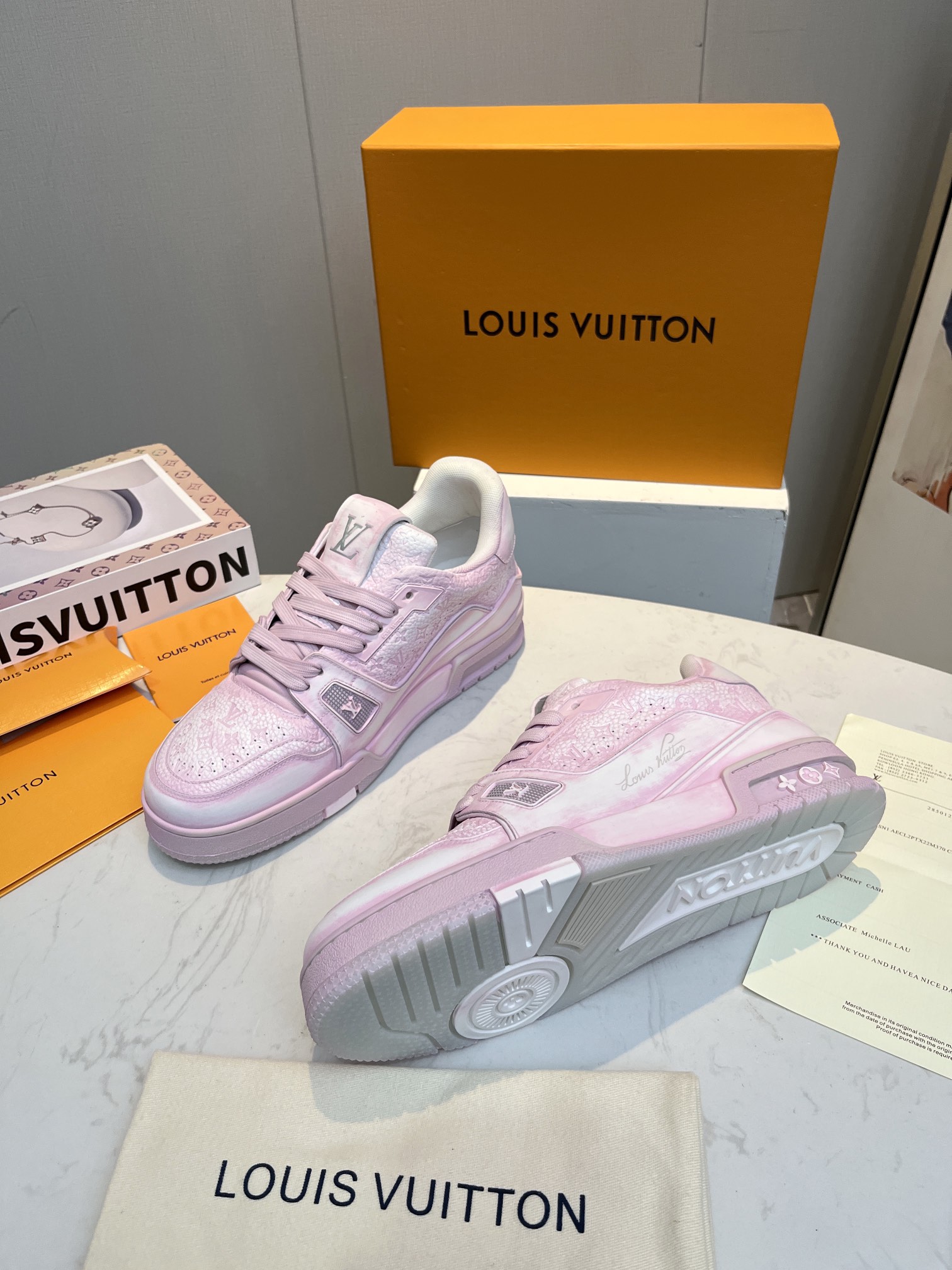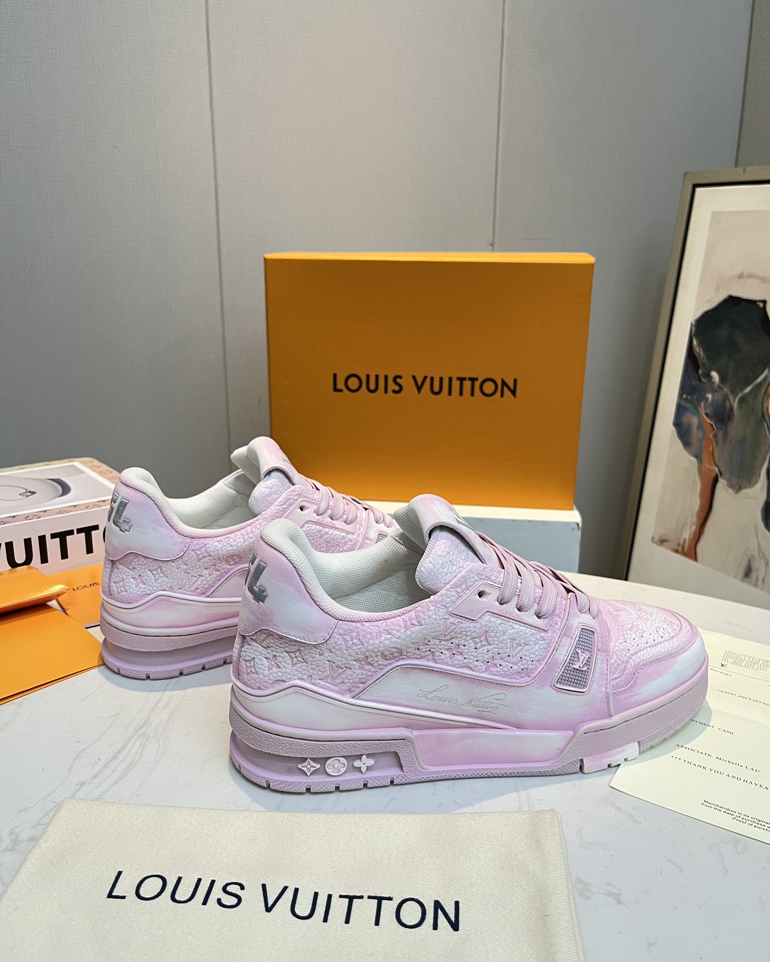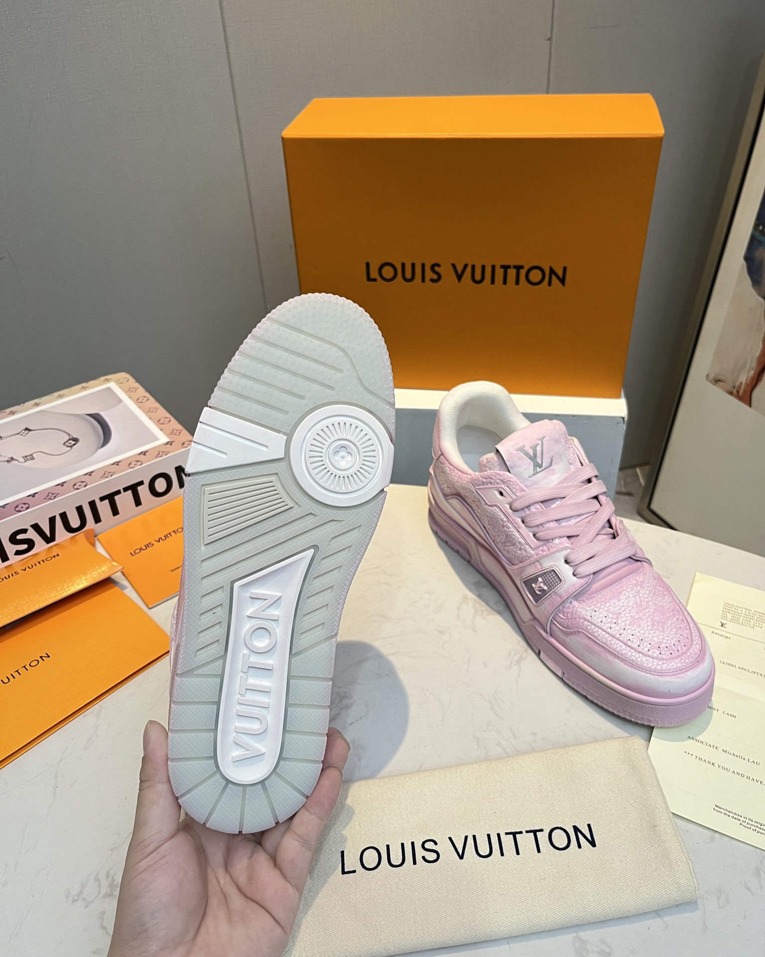 This shoes is AAAAA 1:1 quality (superb). Materials used are identical to the original ones. Louis Vuitton trademark marks are indistinguishable to the authentic. Photos take by actual shoes, what you receive will be 100% same with our photos.