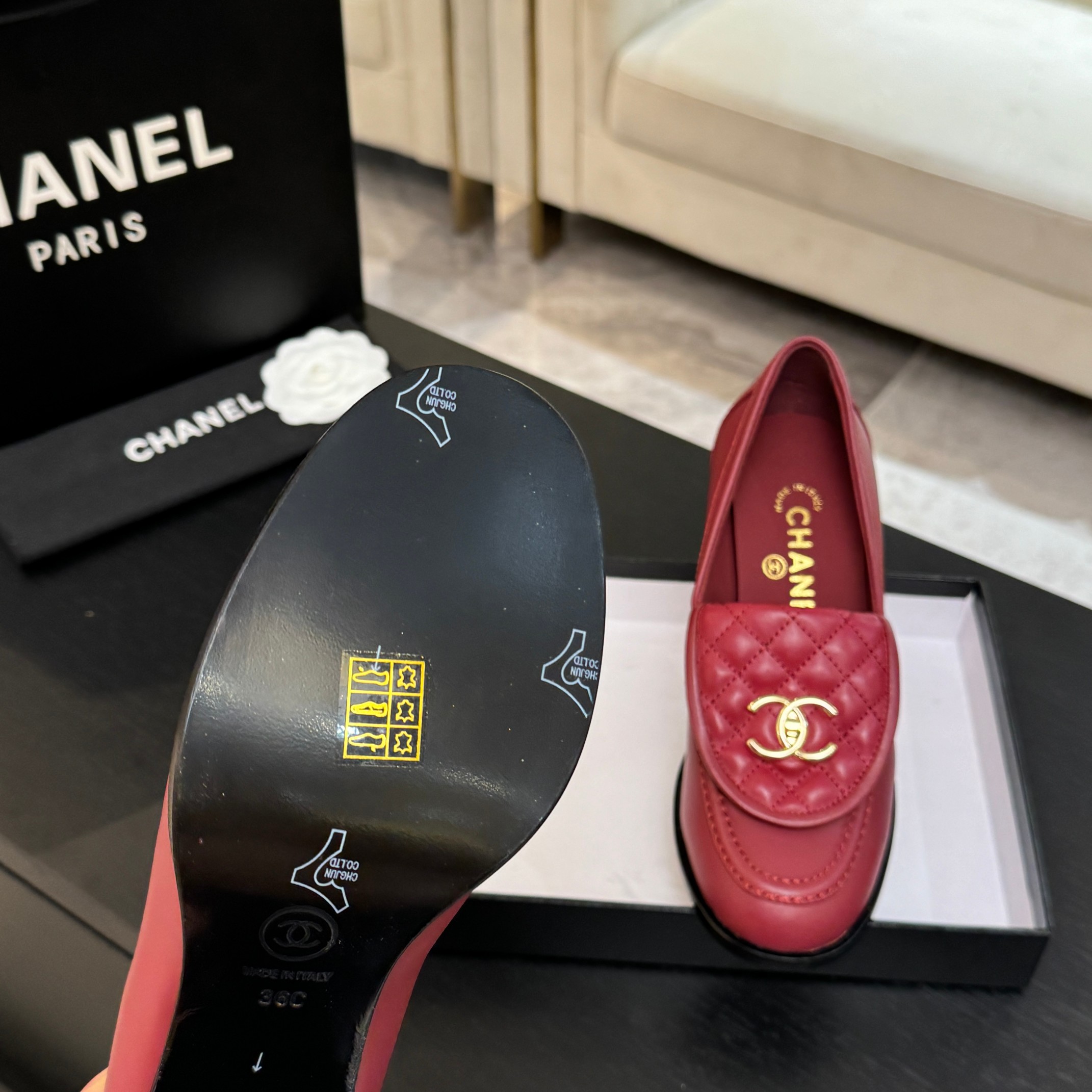 This shoes is AAAAA 1:1 quality (superb). Materials used are identical to the original ones. Chanel trademark marks are indistinguishable to the authentic. Photos take by actual shoes, what you receive will be 100% same with our photos.