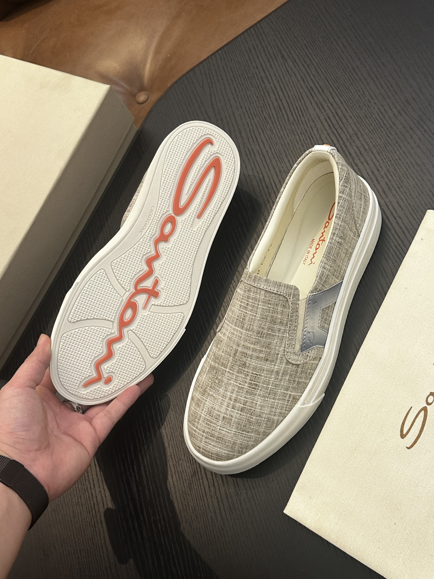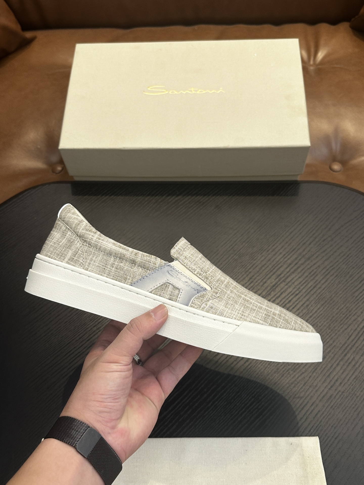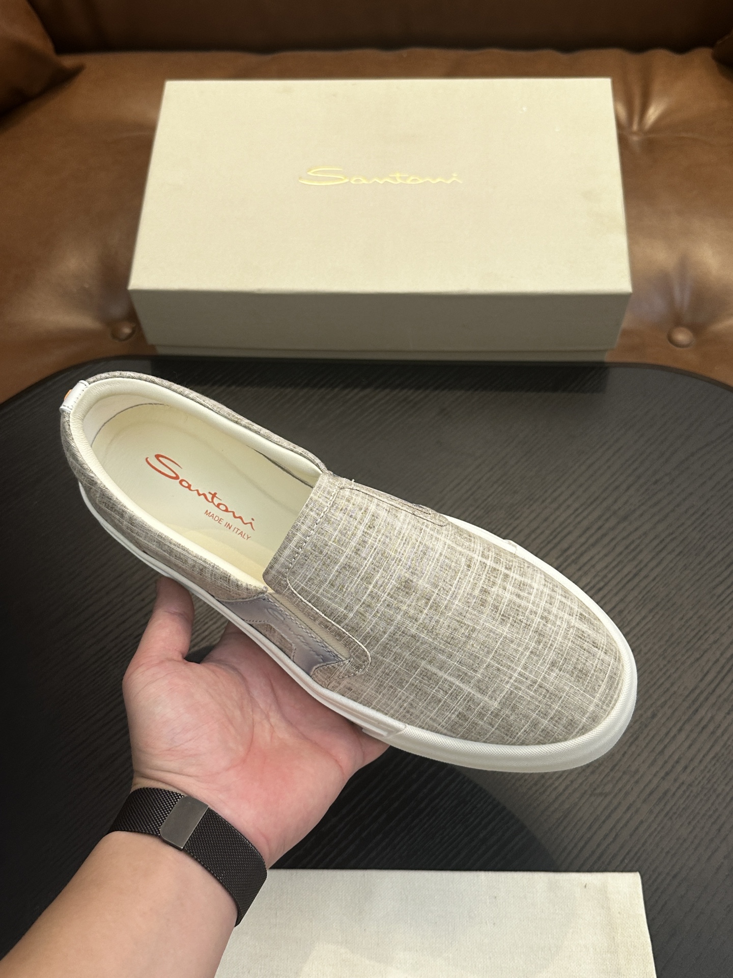 This shoes is AAAAA 1:1 quality (superb). Materials used are identical to the original ones. Santoni trademark marks are indistinguishable to the authentic. Photos take by actual shoes, what you receive will be 100% same with our photos.