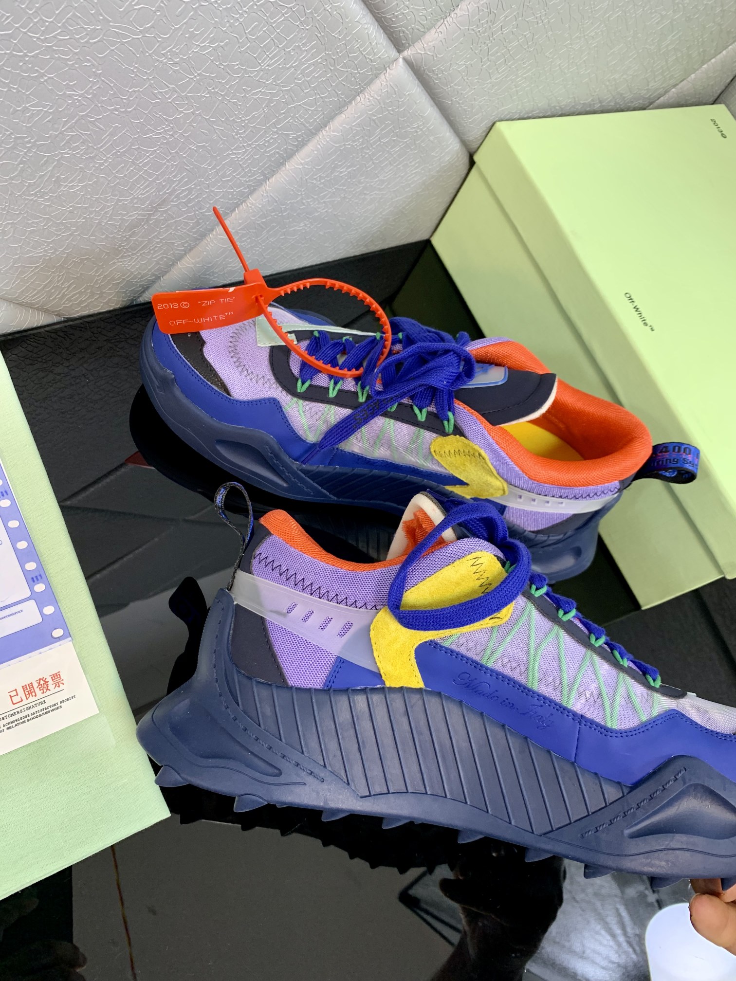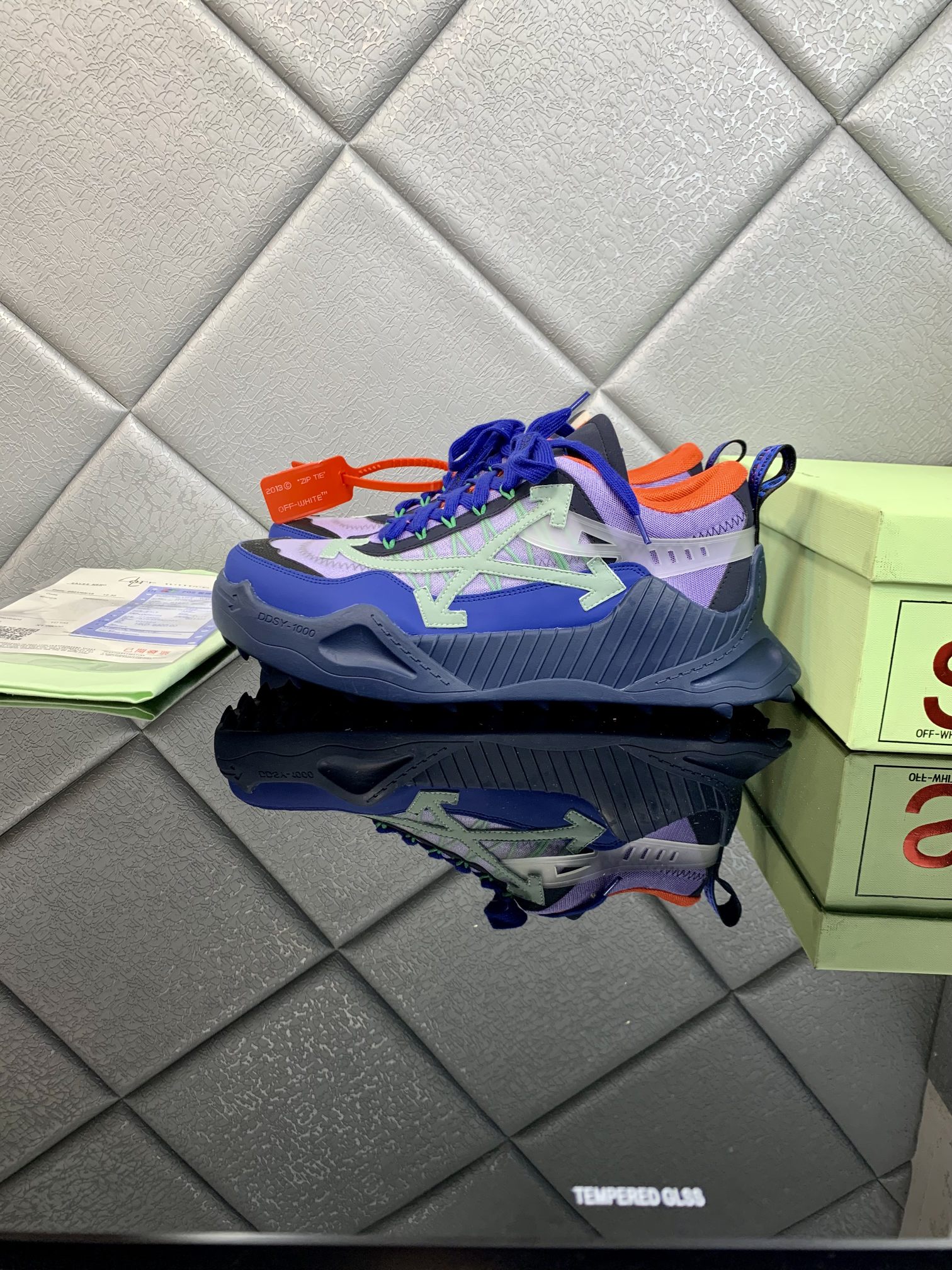 This shoes is AAAAA 1:1 quality (superb). Materials used are identical to the original ones. OFF WHITE trademark marks are indistinguishable to the authentic. Photos take by actual shoes, what you receive will be 100% same with our photos.
