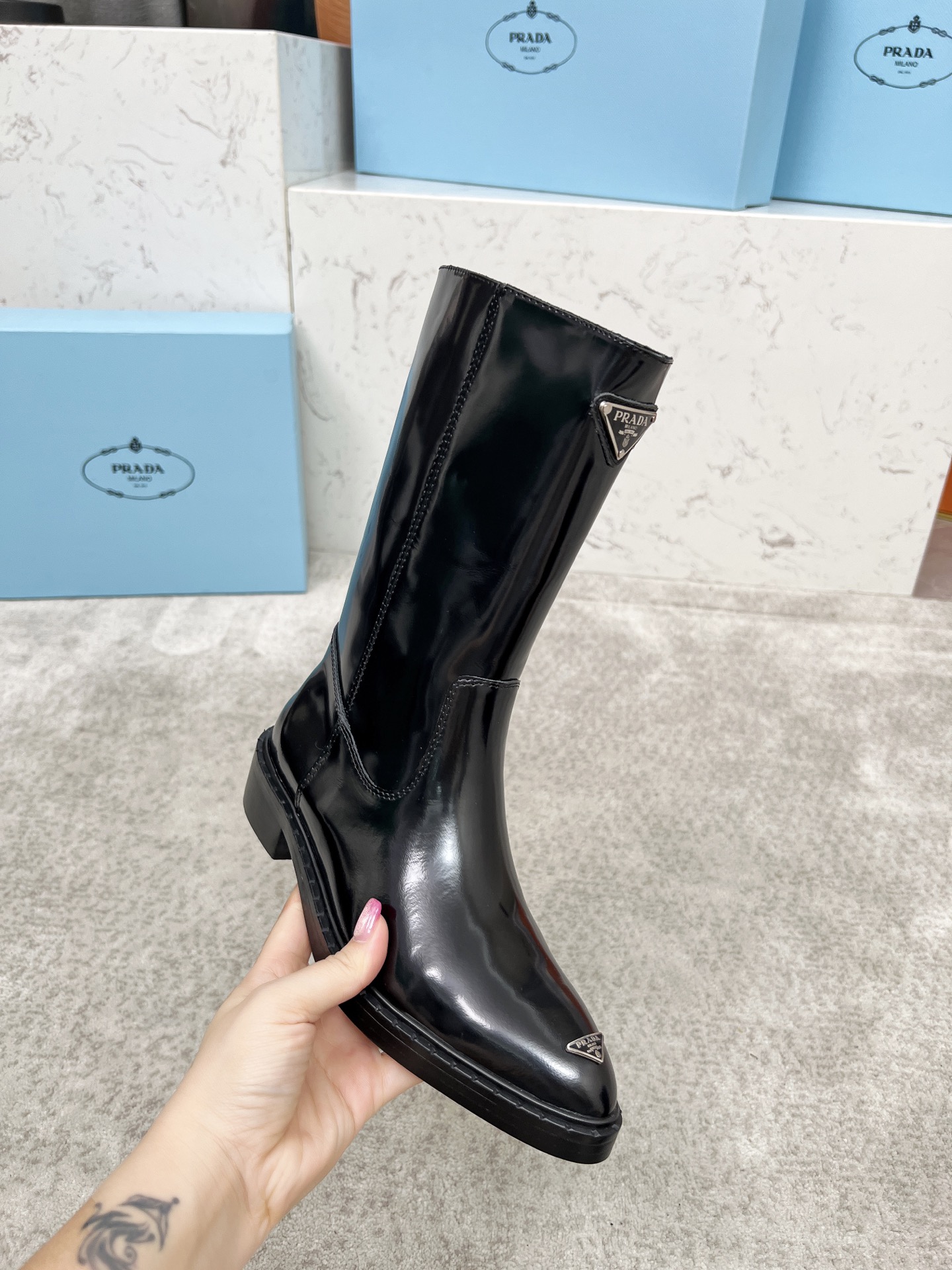 This shoes is AAAAA 1:1 quality (superb). Materials used are identical to the original ones. Prada trademark marks are indistinguishable to the authentic. Photos take by actual shoes, what you receive will be 100% same with our photos.