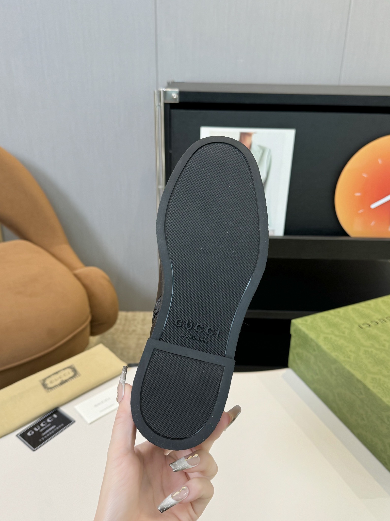 This shoes is AAAAA 1:1 quality (superb). Materials used are identical to the original ones. Gucci trademark marks are indistinguishable to the authentic. Photos take by actual shoes, what you receive will be 100% same with our photos.