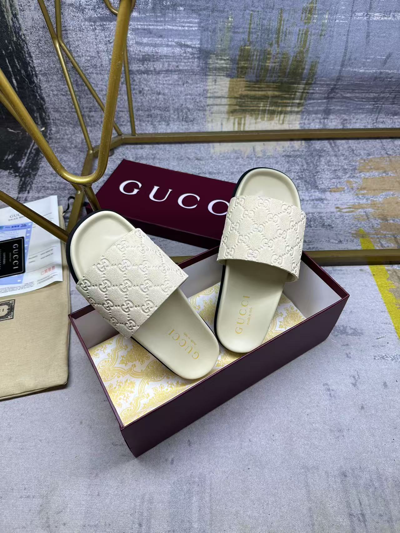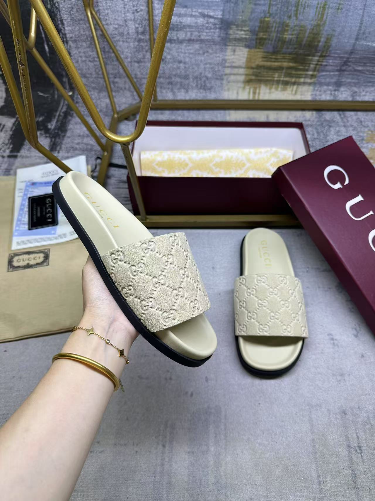 This shoes is AAAAA 1:1 quality (superb). Materials used are identical to the original ones. Gucci trademark marks are indistinguishable to the authentic. Photos take by actual shoes, what you receive will be 100% same with our photos.