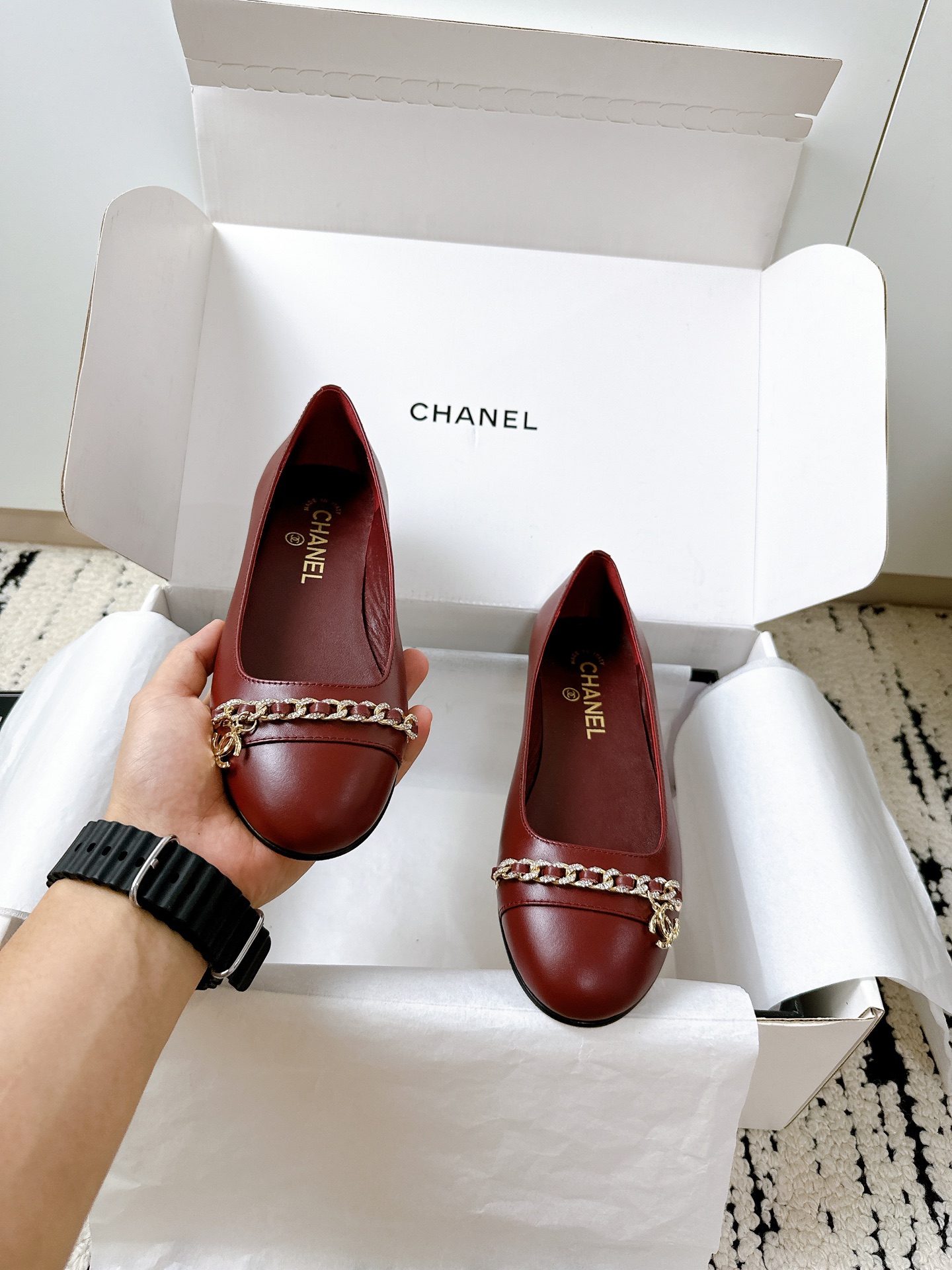 This shoes is AAAAA 1:1 quality (superb). Materials used are identical to the original ones. Chanel trademark marks are indistinguishable to the authentic. Photos take by actual shoes, what you receive will be 100% same with our photos.