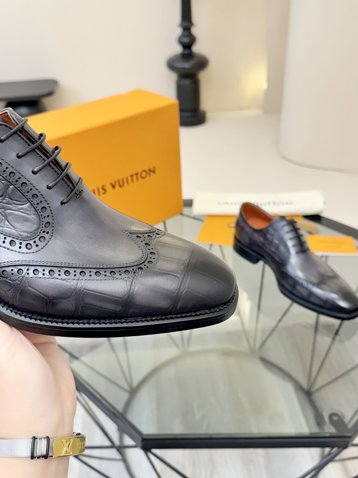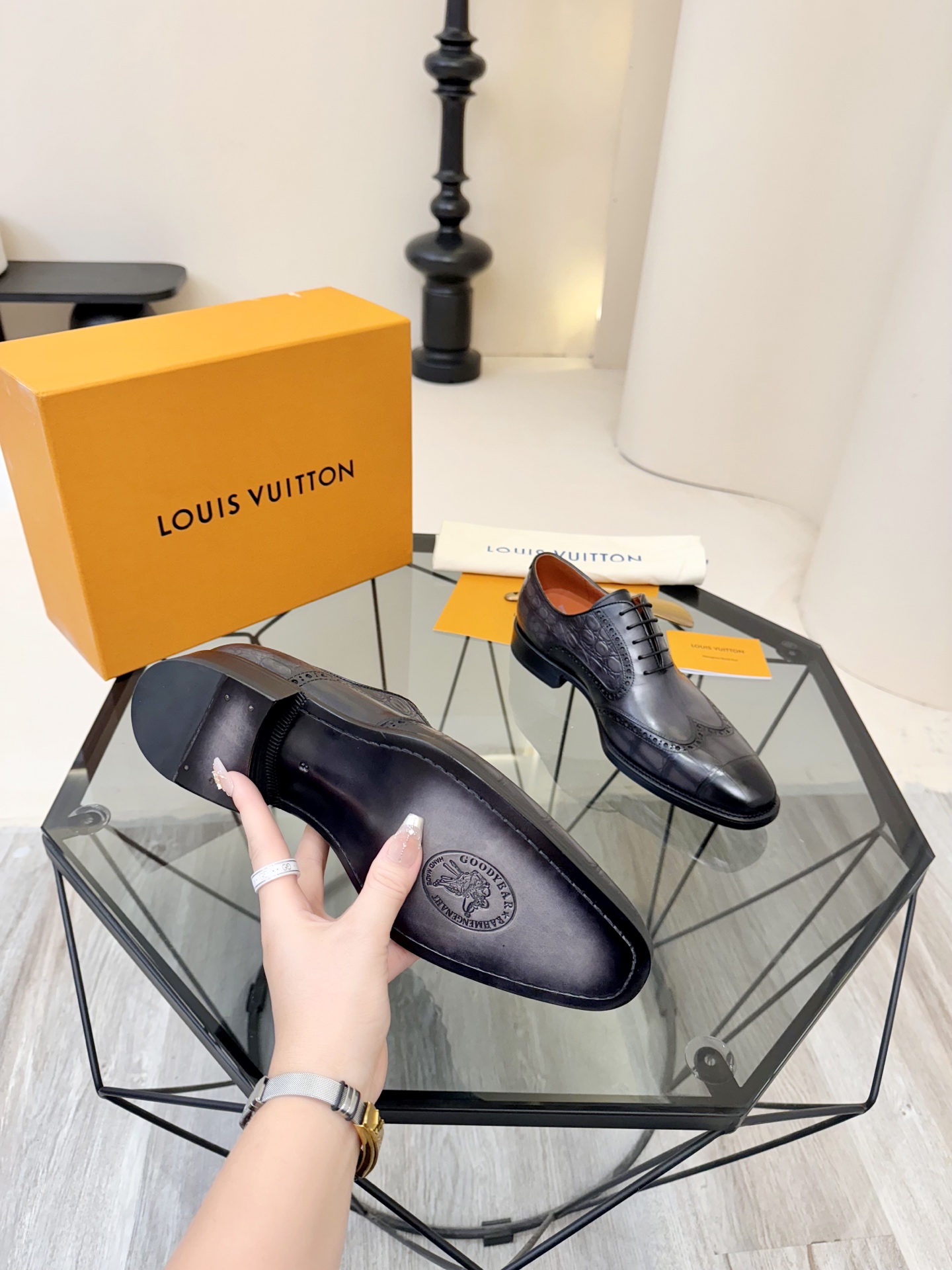 This shoes is AAAAA 1:1 quality (superb). Materials used are identical to the original ones. trademark marks are indistinguishable to the authentic. Photos take by actual shoes, what you receive will be 100% same with our photos.