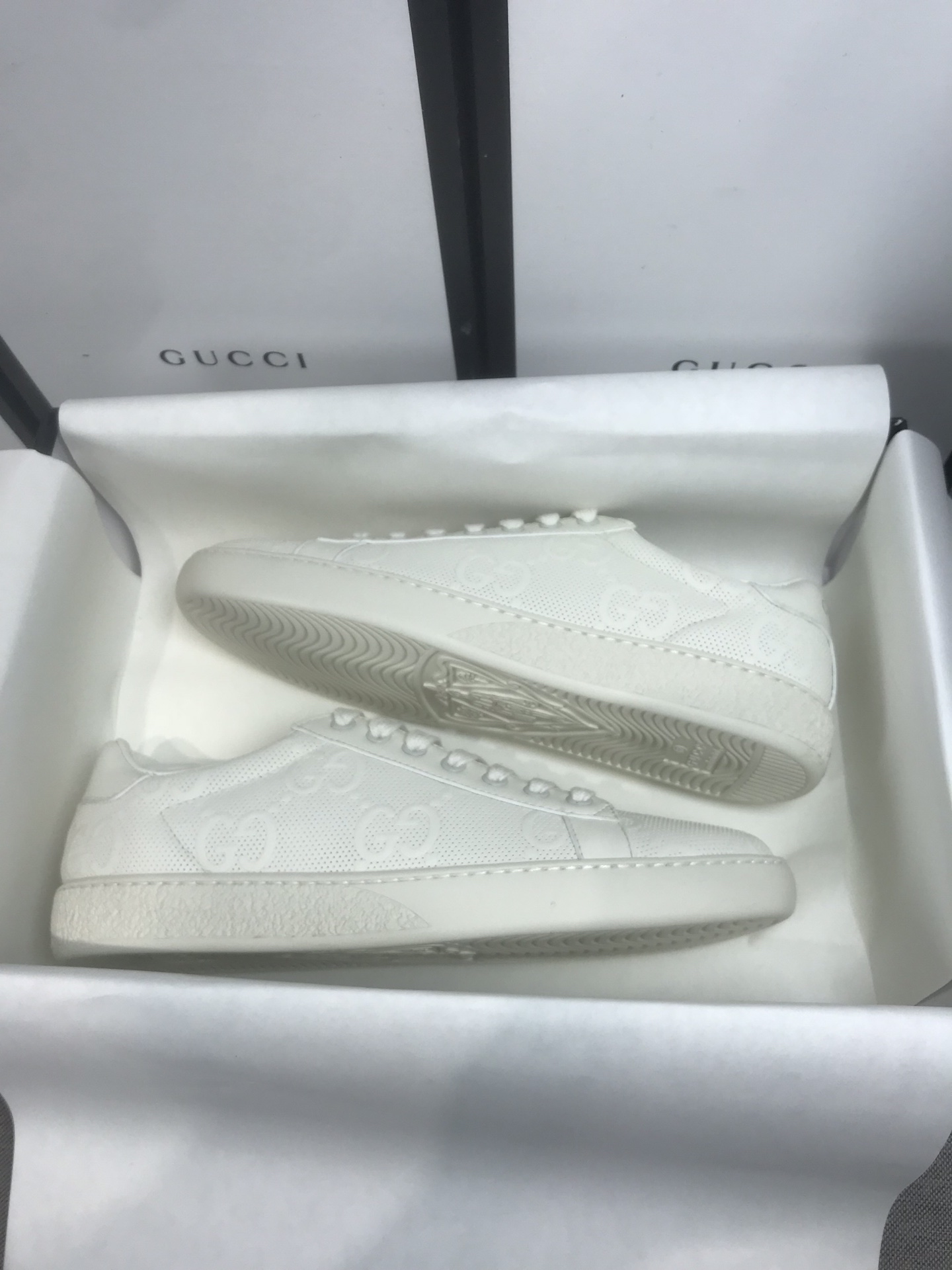This shoes is AAAAA 1:1 quality (superb). Materials used are identical to the original ones. Gucci trademark marks are indistinguishable to the authentic. Photos take by actual shoes, what you receive will be 100% same with our photos.