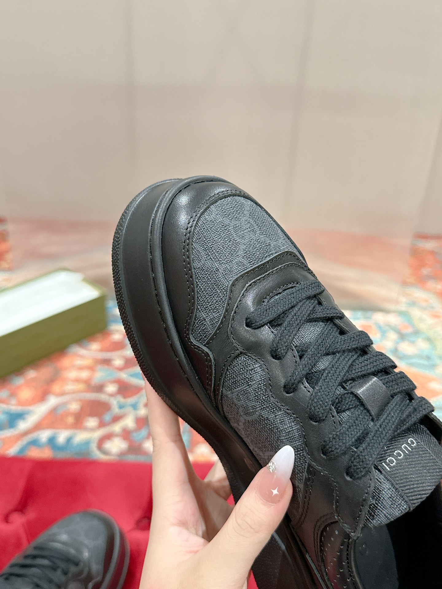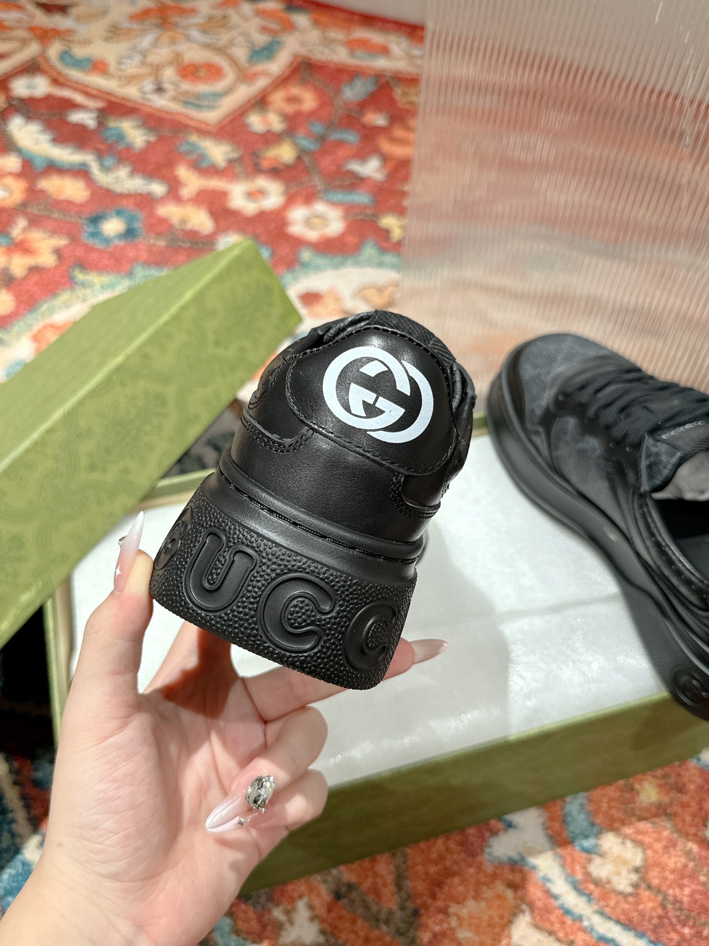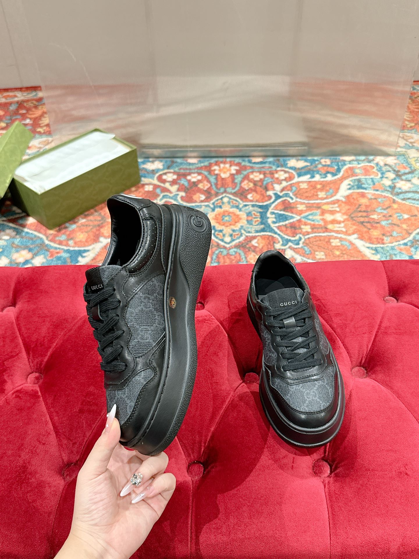 This shoes is AAAAA 1:1 quality (superb). Materials used are identical to the original ones. Gucci trademark marks are indistinguishable to the authentic. Photos take by actual shoes, what you receive will be 100% same with our photos.