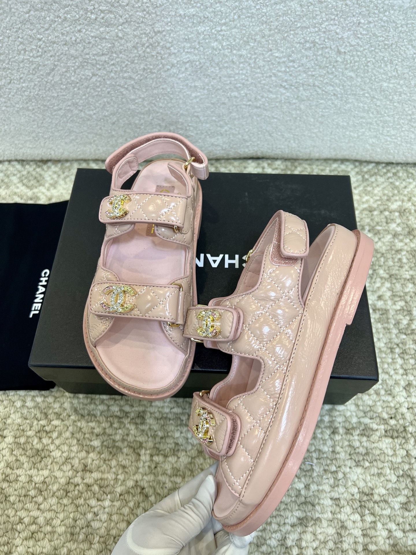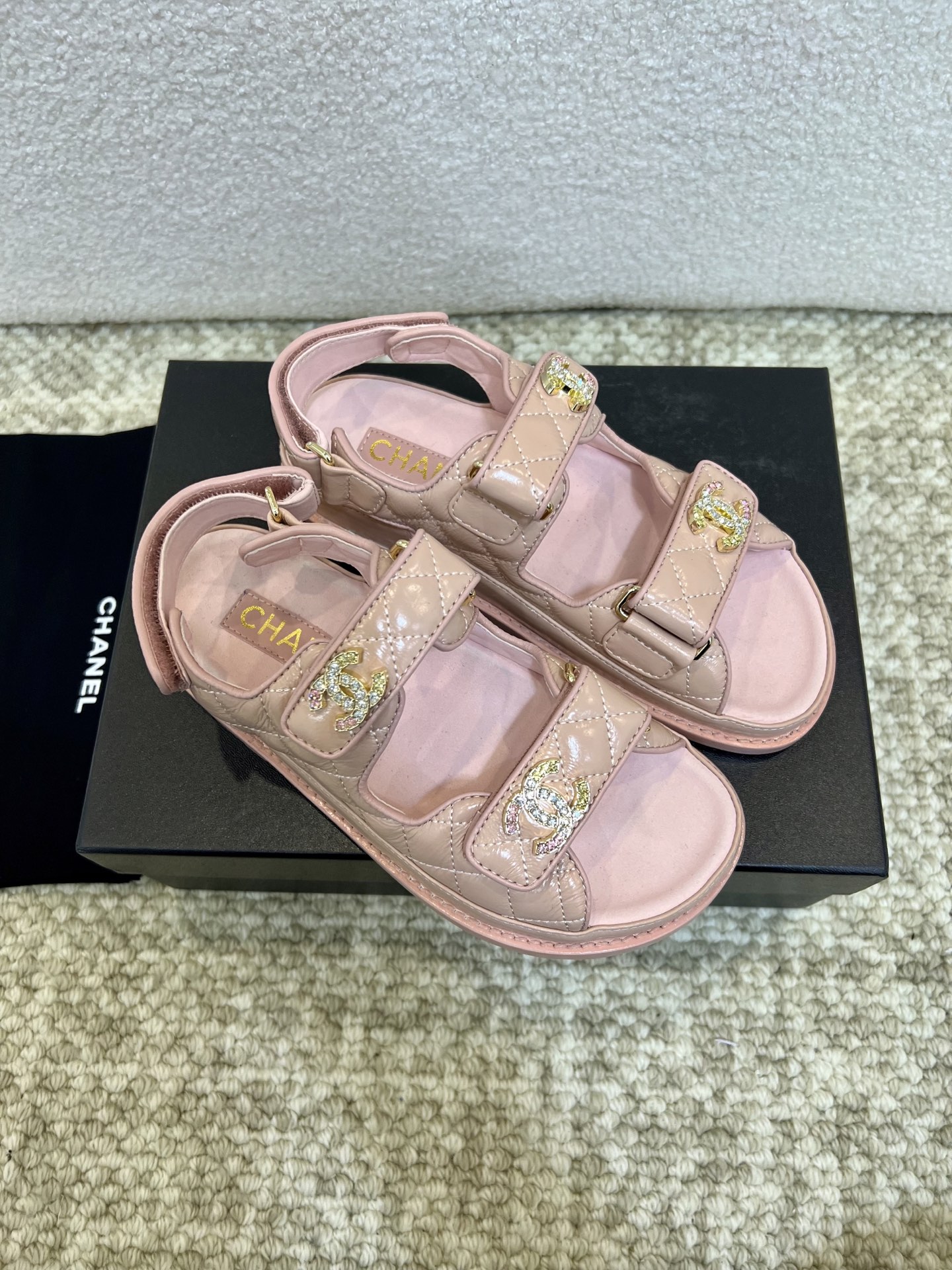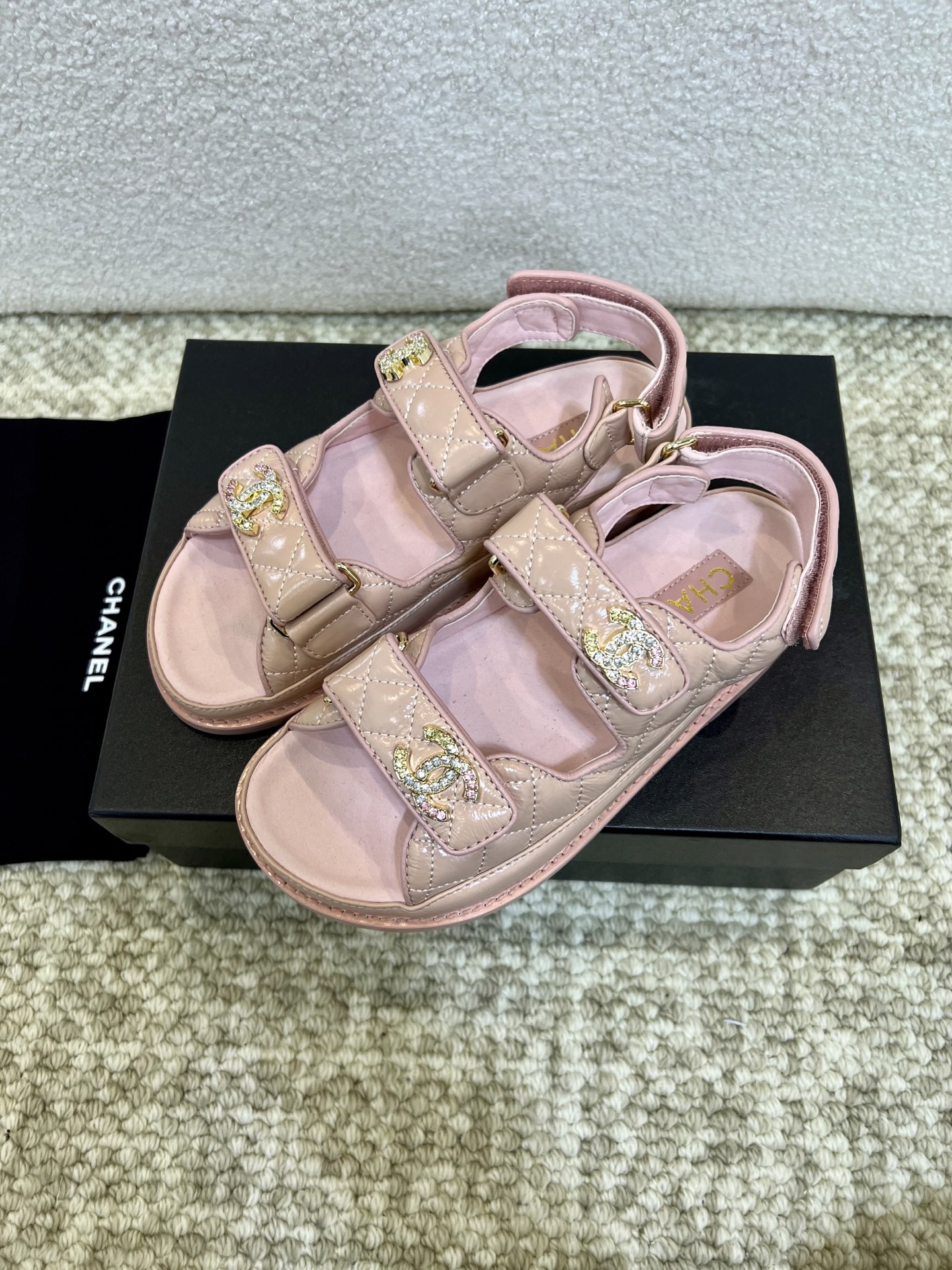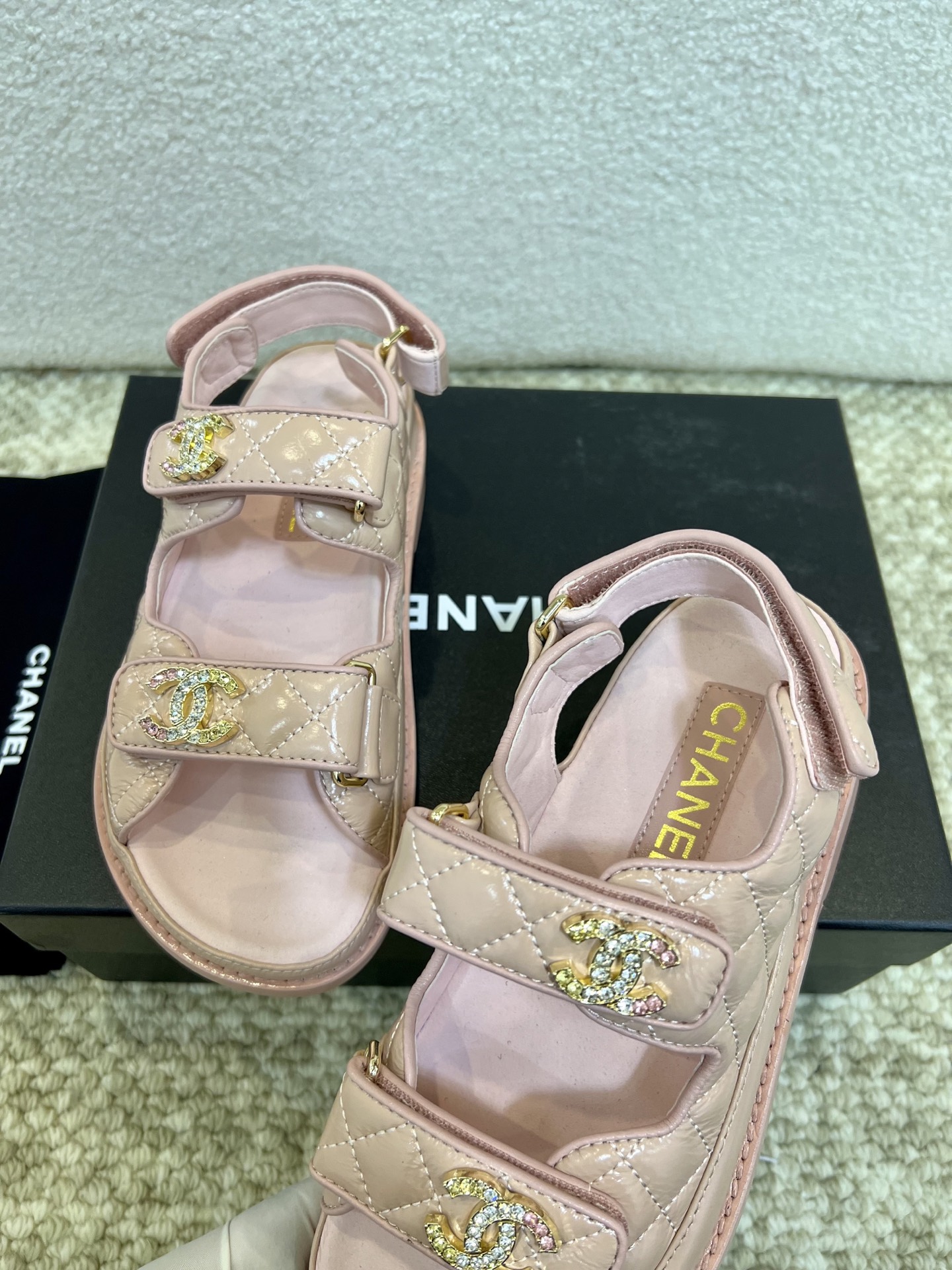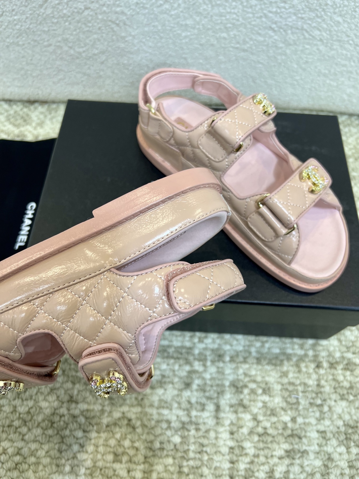 This shoes is AAAAA 1:1 quality (superb). Materials used are identical to the original ones. Chanel trademark marks are indistinguishable to the authentic. Photos take by actual shoes, what you receive will be 100% same with our photos.