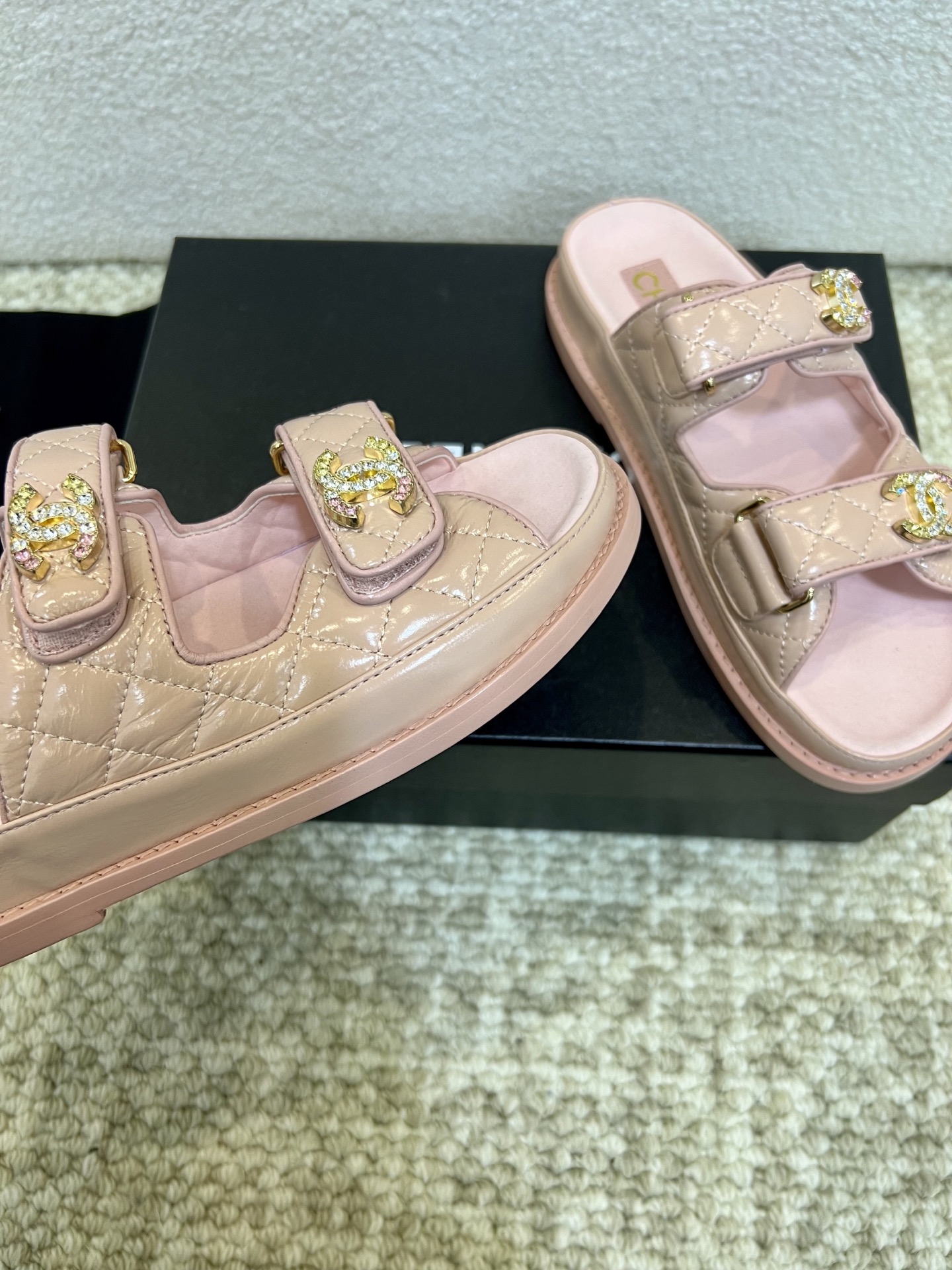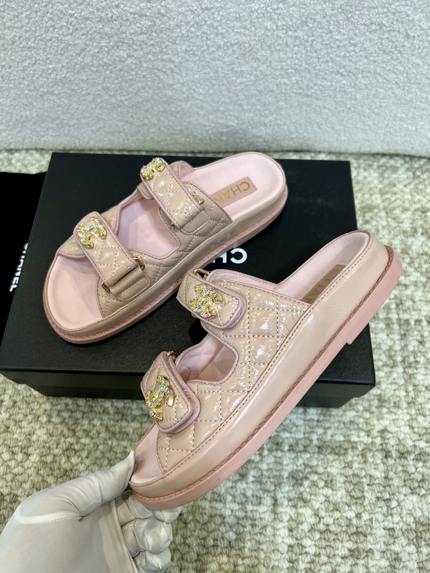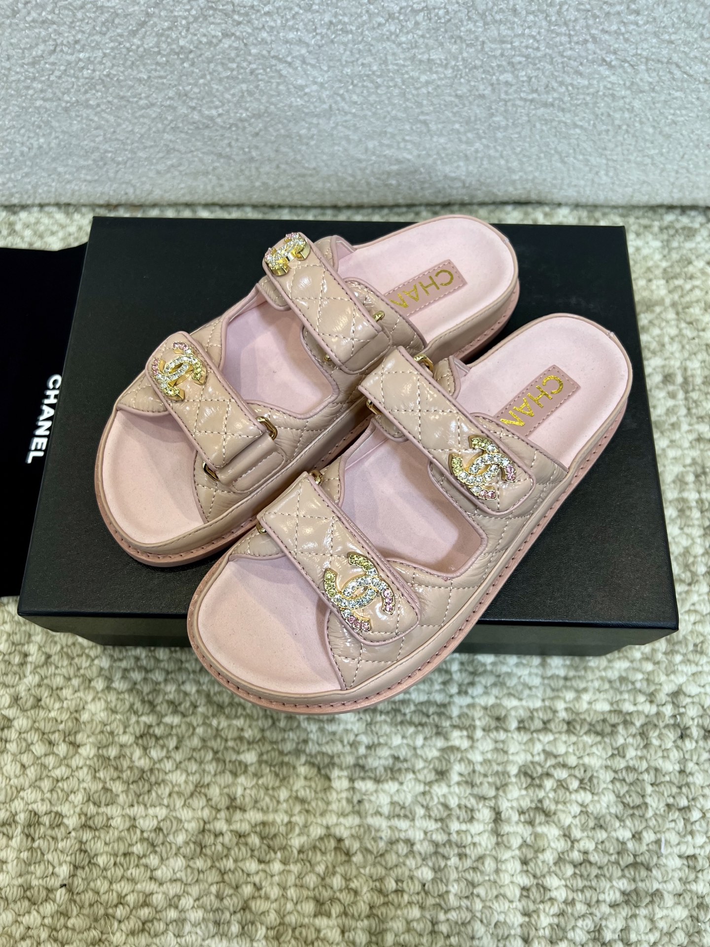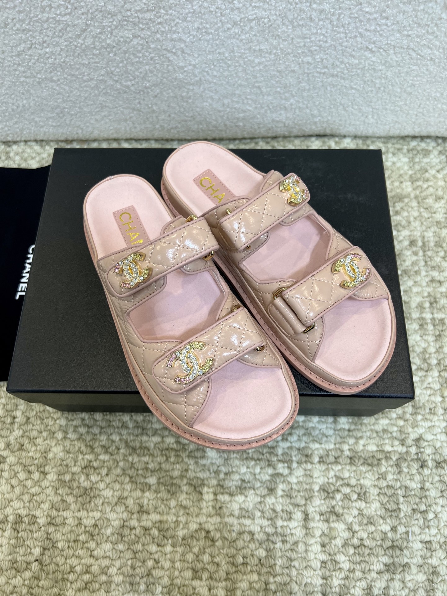 This shoes is AAAAA 1:1 quality (superb). Materials used are identical to the original ones. Chanel trademark marks are indistinguishable to the authentic. Photos take by actual shoes, what you receive will be 100% same with our photos.