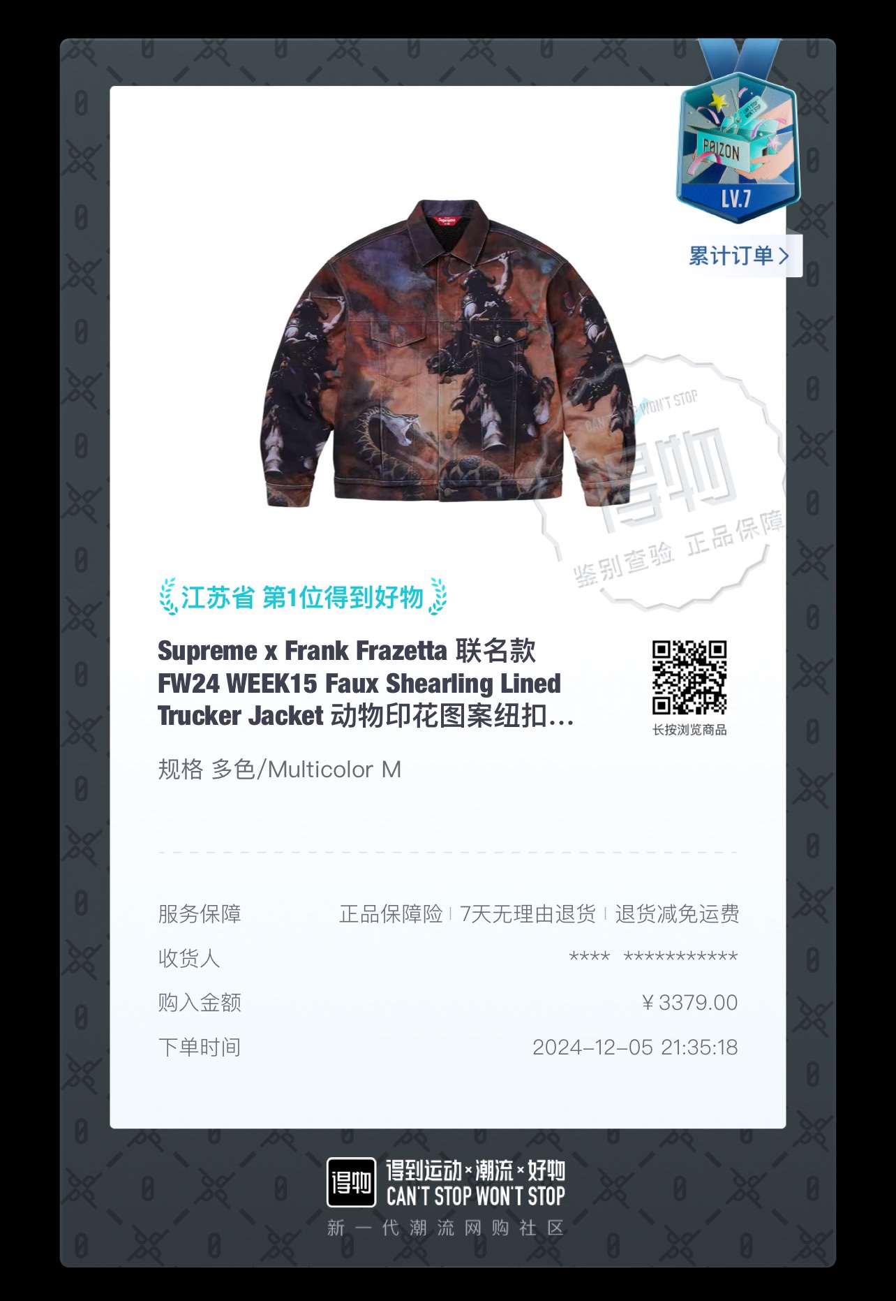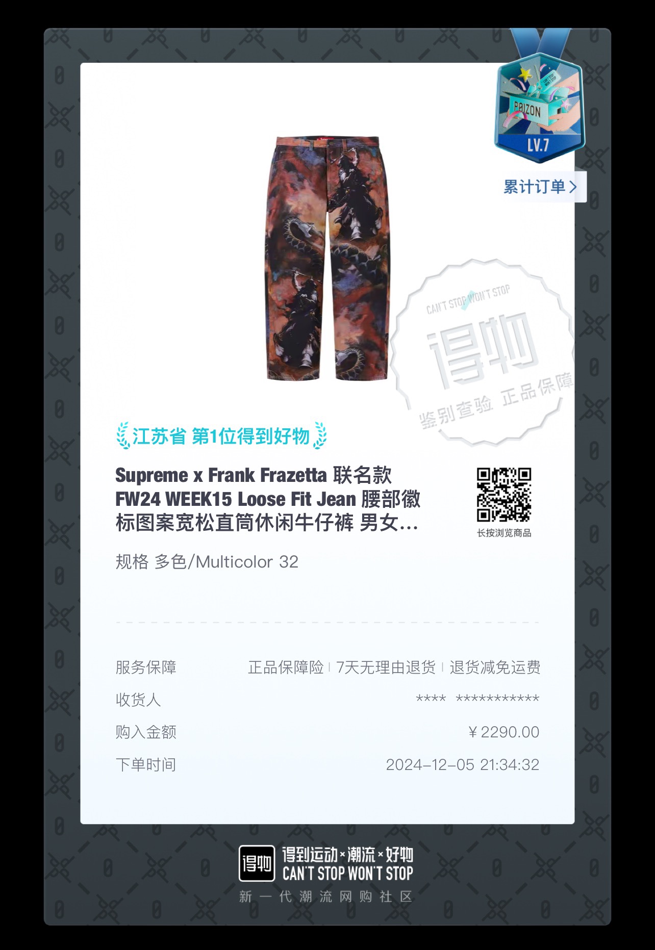 NO:3634210. The clothes is from Superme designer.