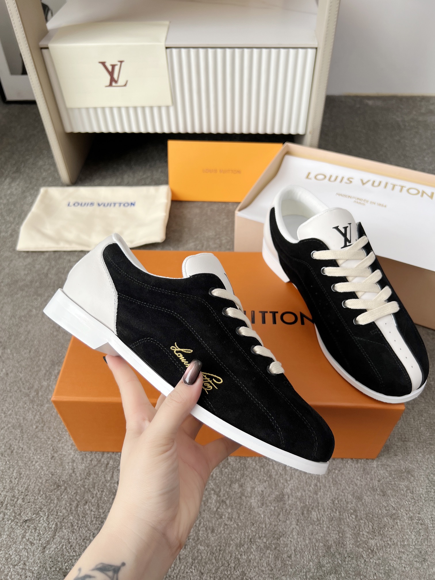This shoes is AAAAA 1:1 quality (superb). Materials used are identical to the original ones. Louis Vuitton trademark marks are indistinguishable to the authentic. Photos take by actual shoes, what you receive will be 100% same with our photos.