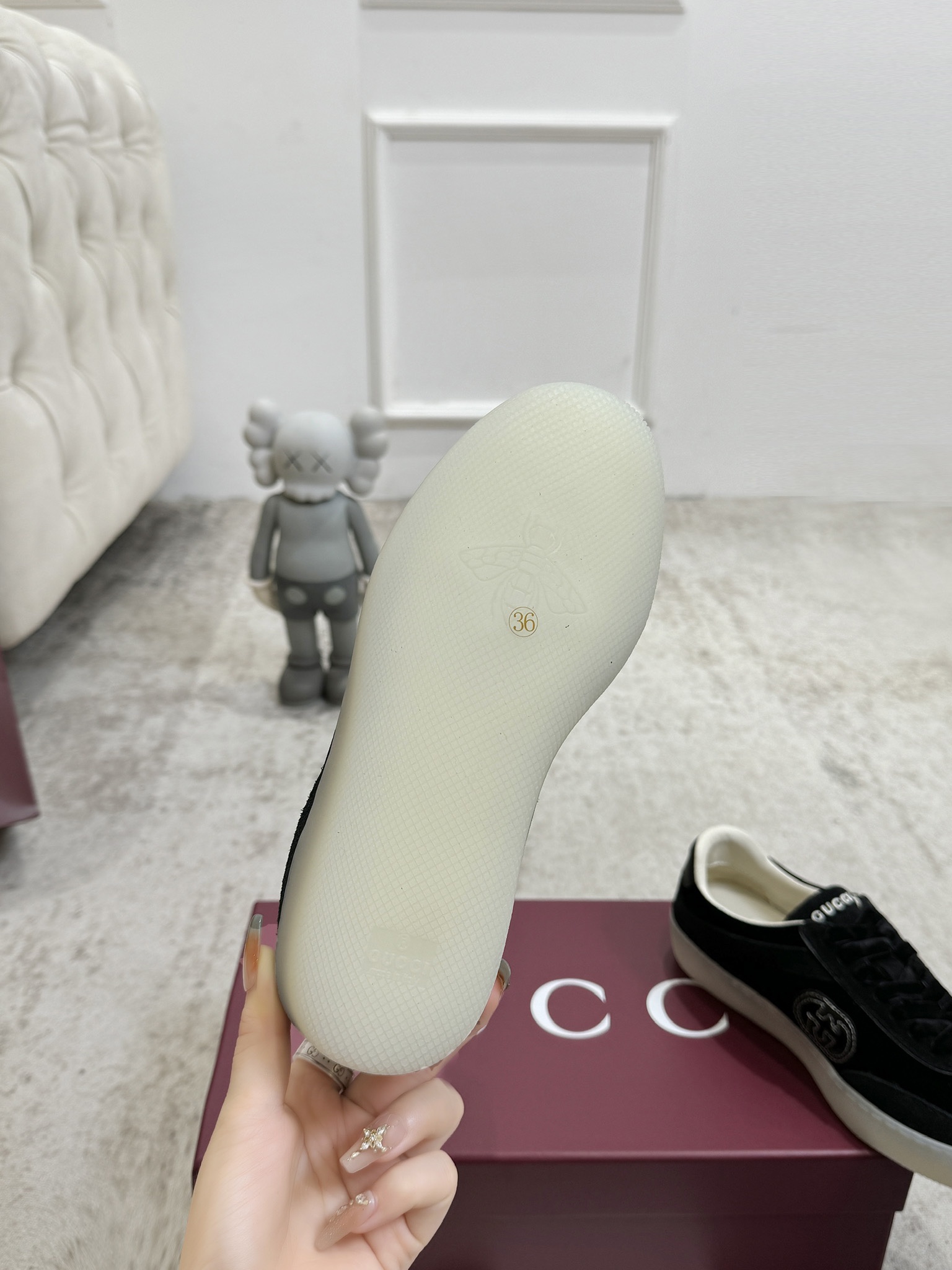 This shoes is AAAAA 1:1 quality (superb). Materials used are identical to the original ones. Gucci trademark marks are indistinguishable to the authentic. Photos take by actual shoes, what you receive will be 100% same with our photos.