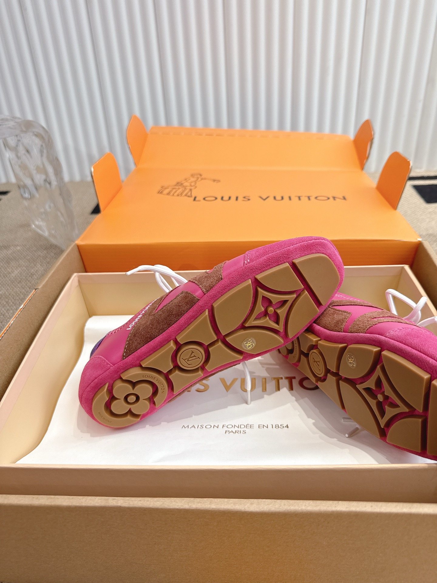 This shoes is AAAAA 1:1 quality (superb). Materials used are identical to the original ones. Louis Vuitton trademark marks are indistinguishable to the authentic. Photos take by actual shoes, what you receive will be 100% same with our photos.