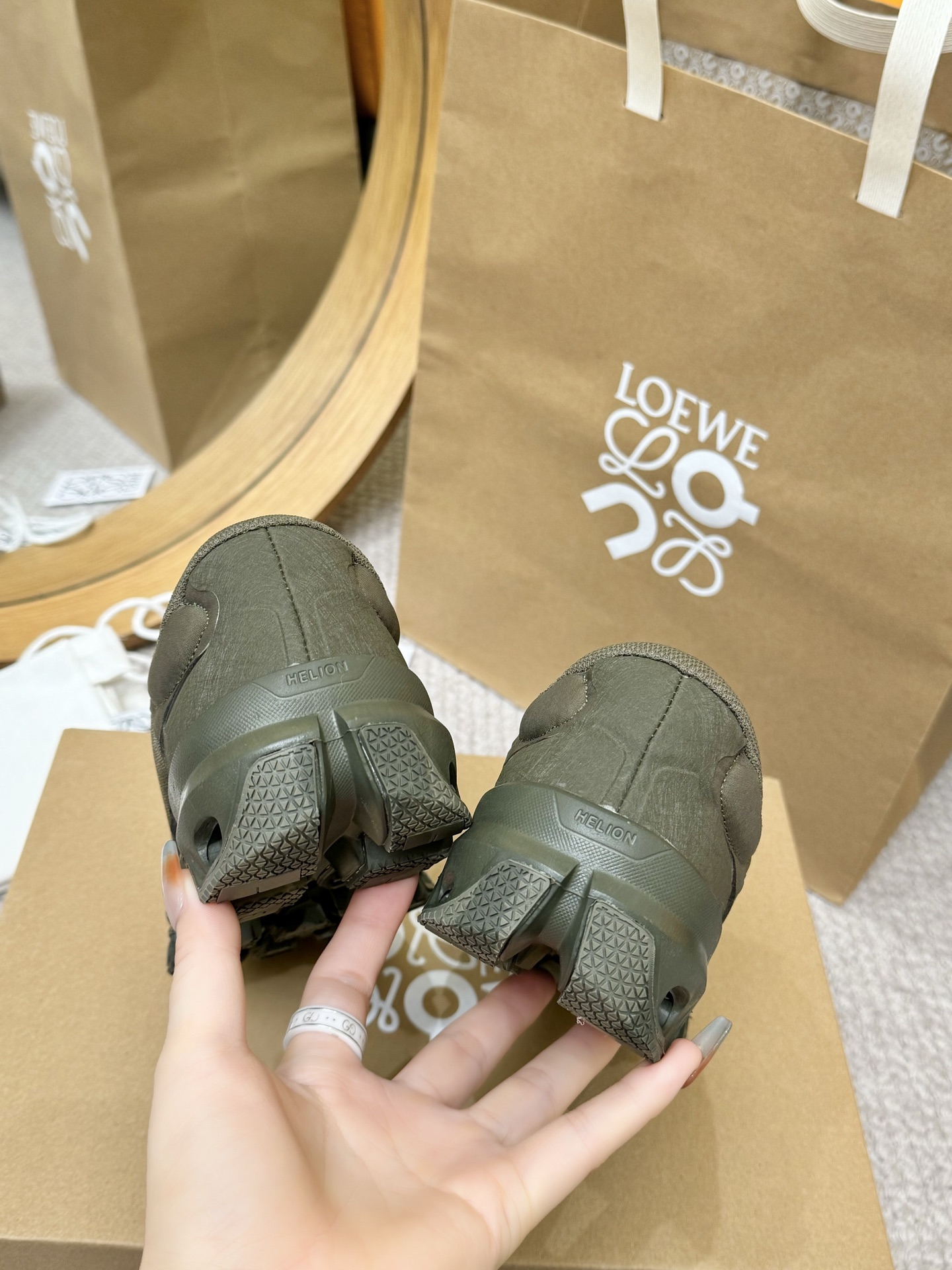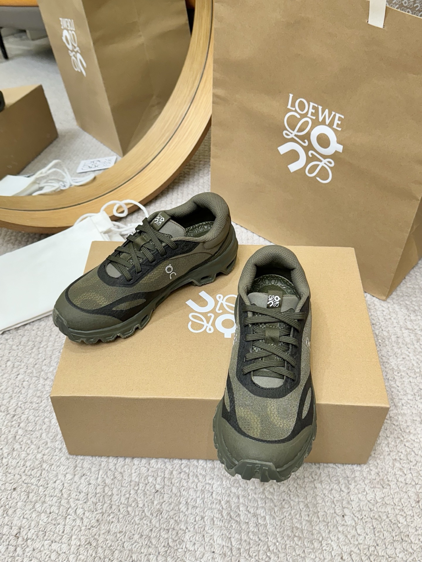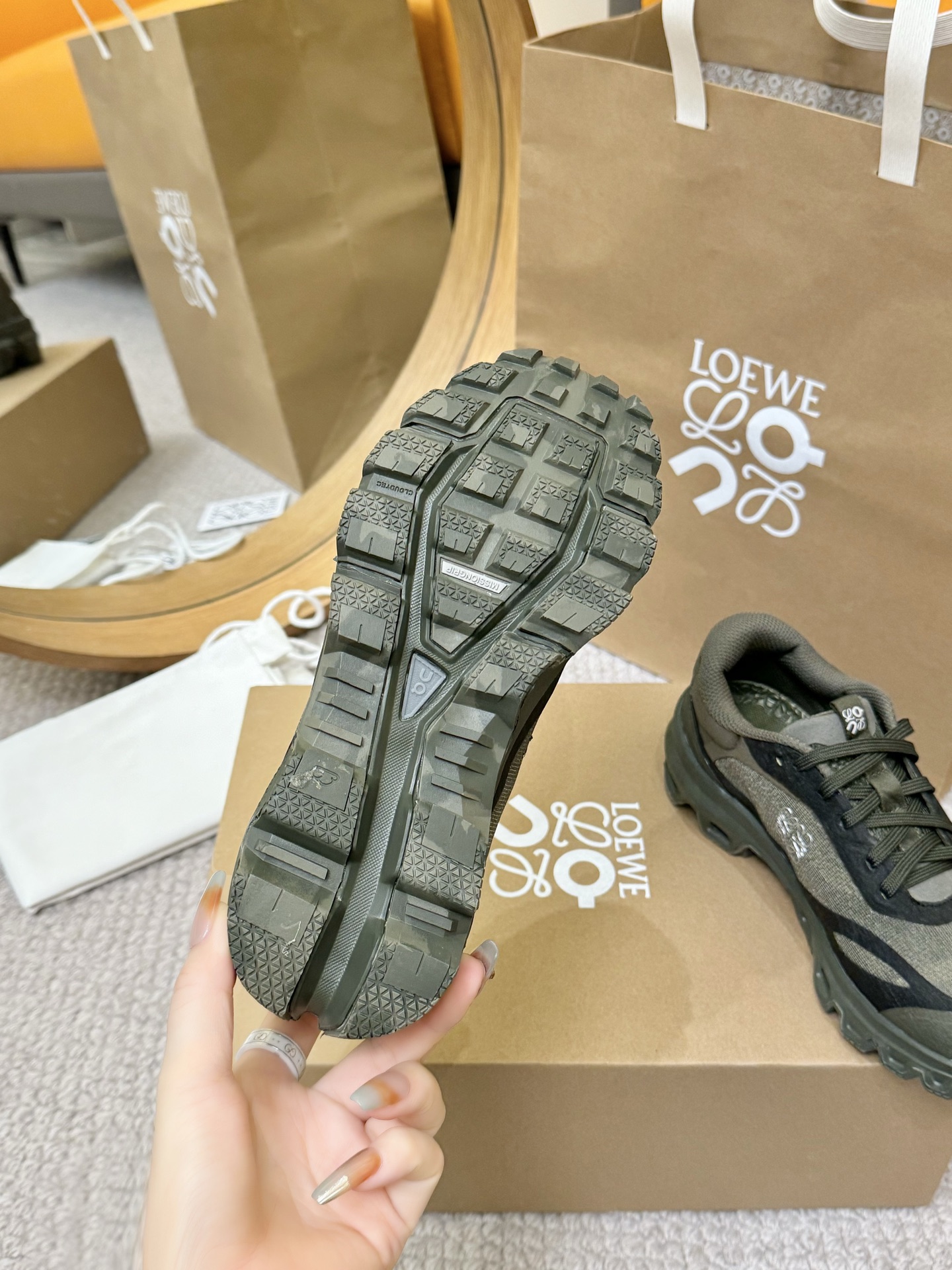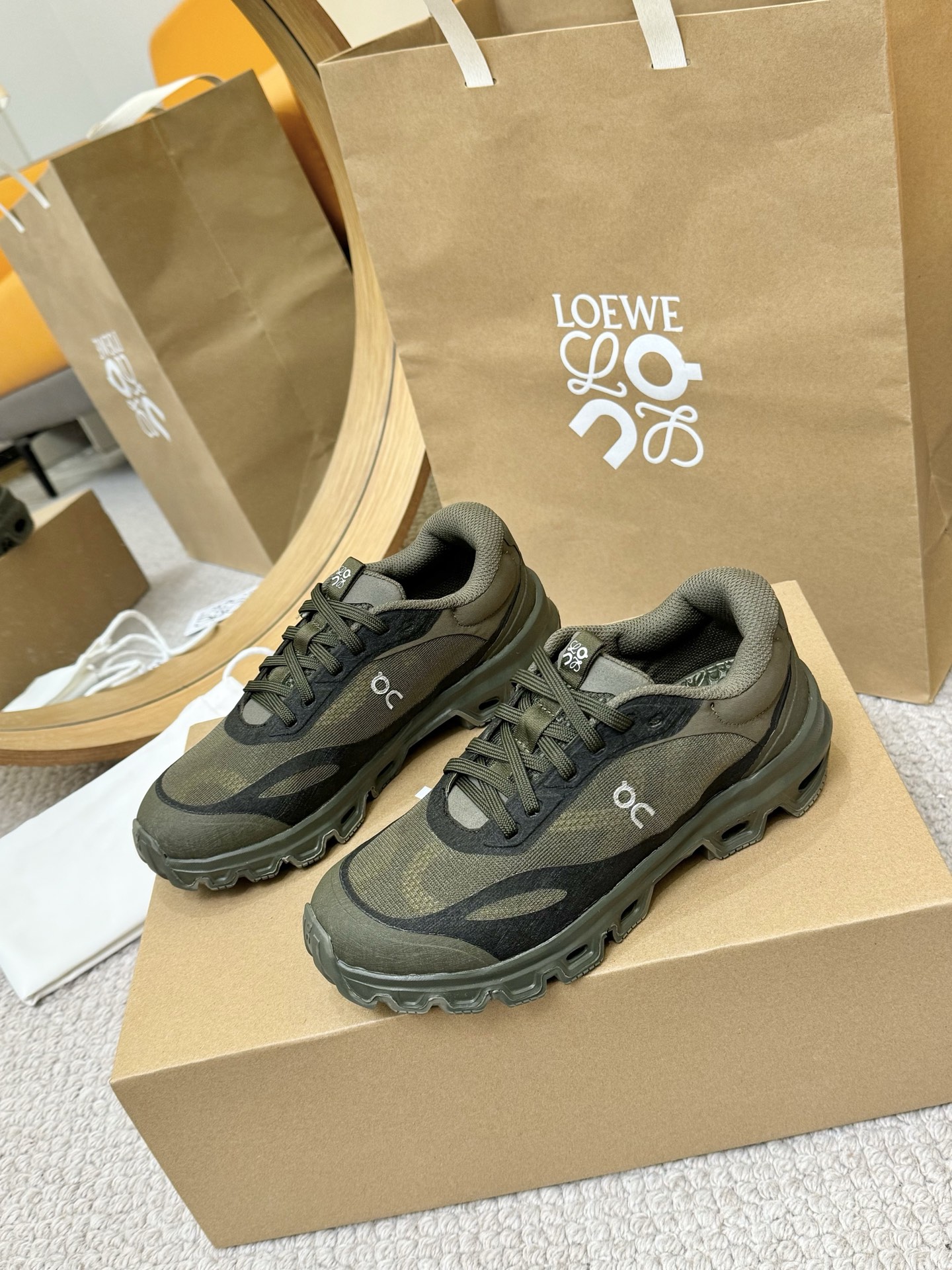 This shoes is AAAAA 1:1 quality (superb). Materials used are identical to the original ones. Loewe & On trademark marks are indistinguishable to the authentic. Photos take by actual shoes, what you receive will be 100% same with our photos.