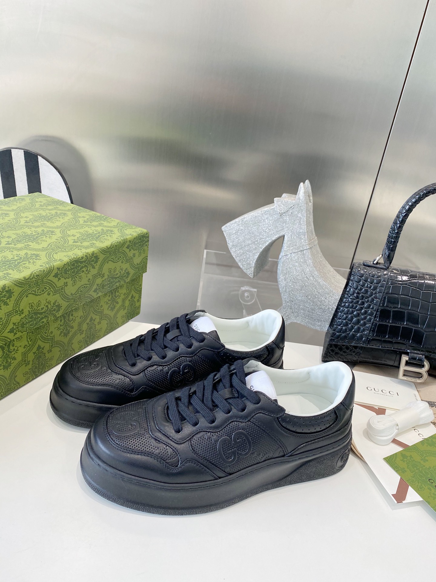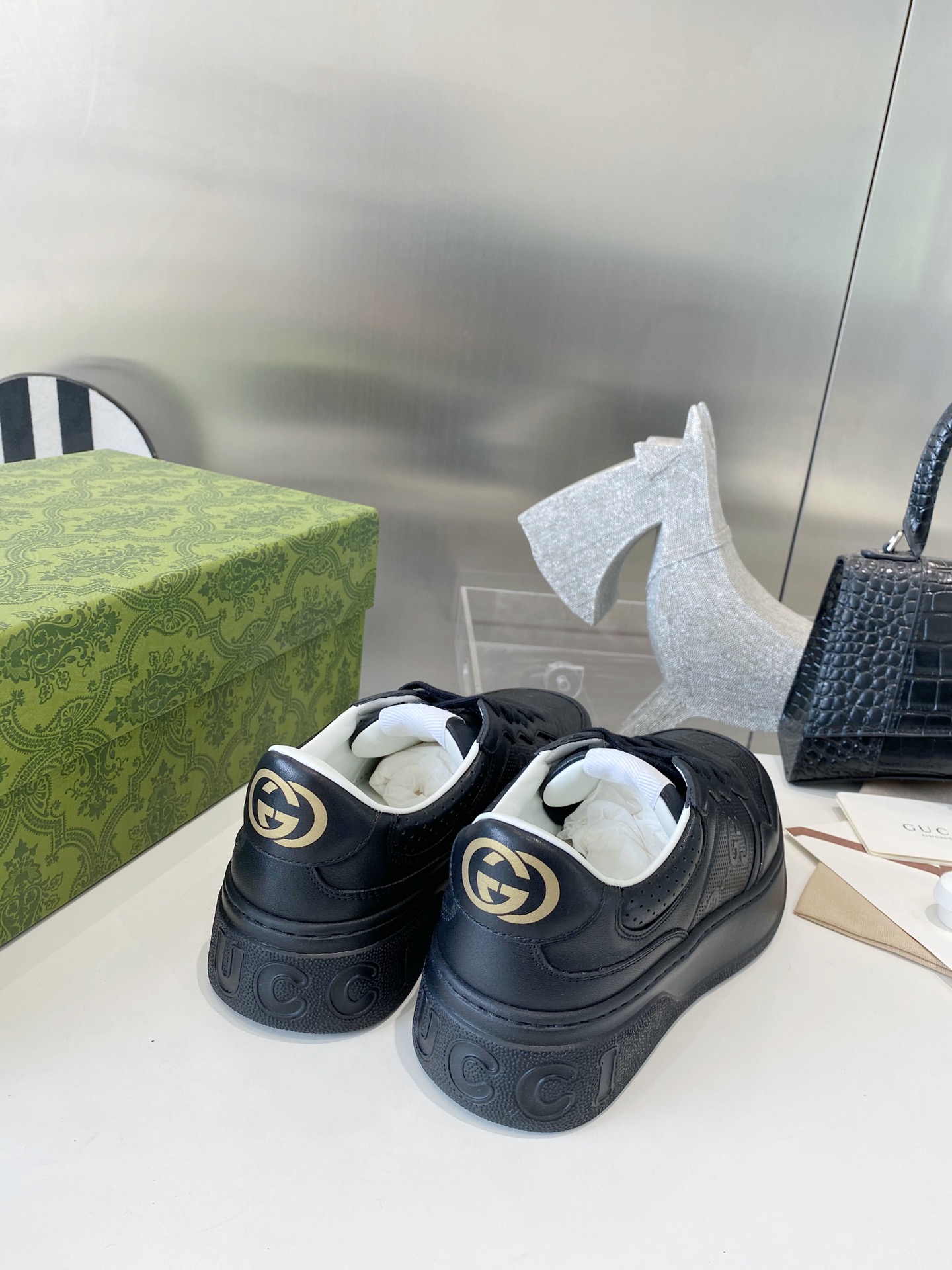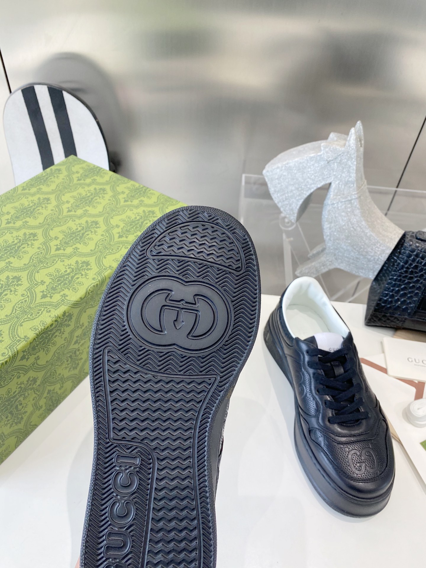 This shoes is AAAAA 1:1 quality (superb). Materials used are identical to the original ones. Gucci trademark marks are indistinguishable to the authentic. Photos take by actual shoes, what you receive will be 100% same with our photos.