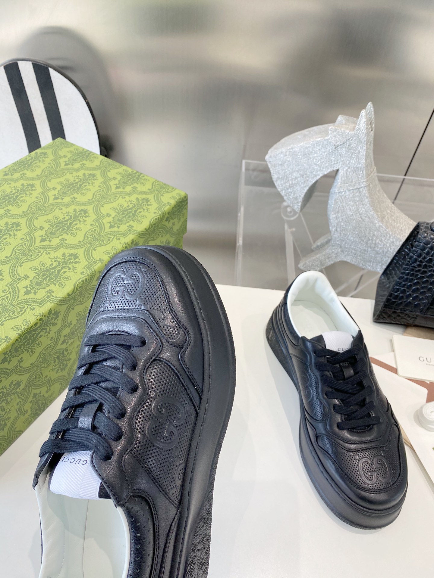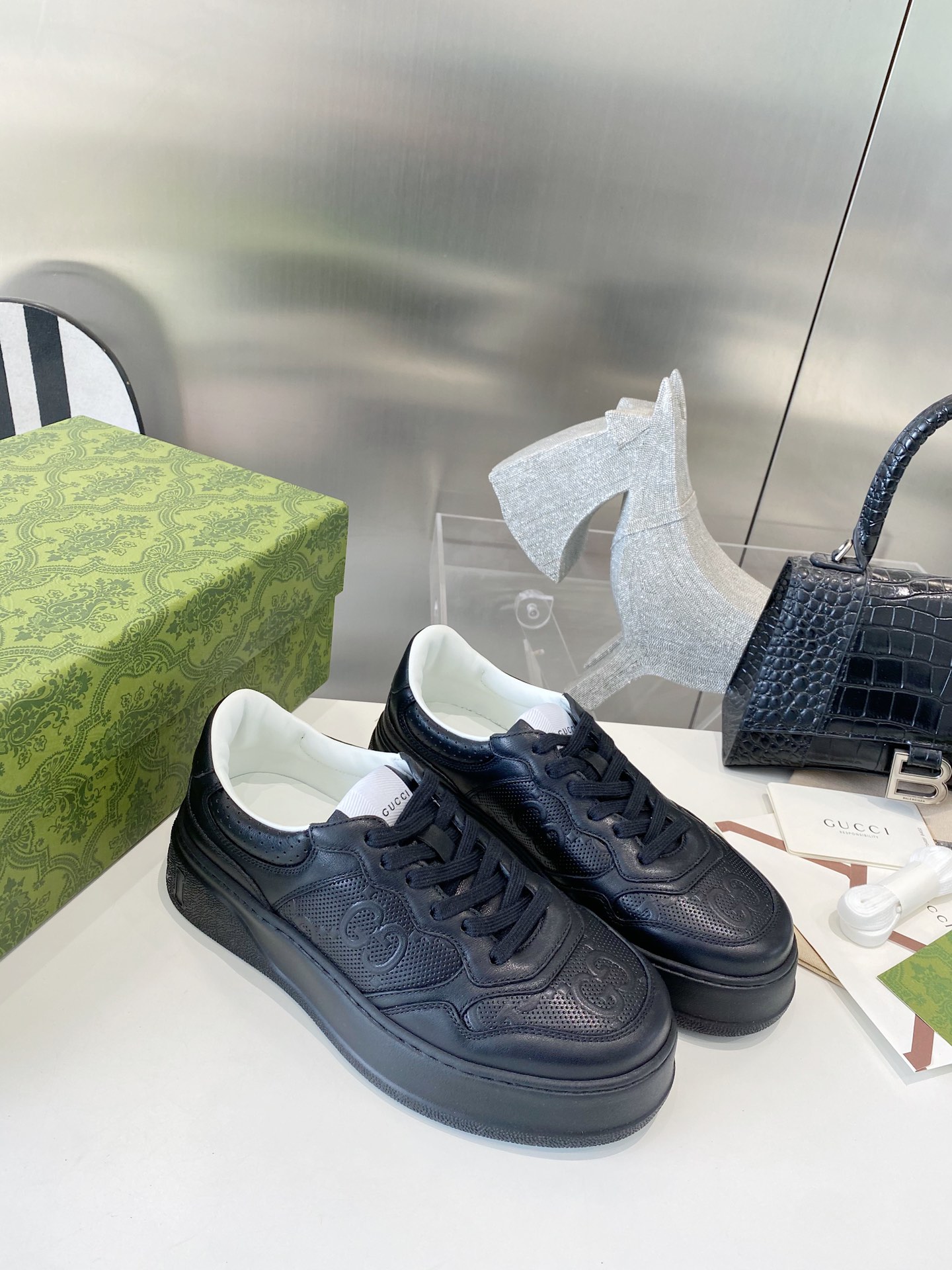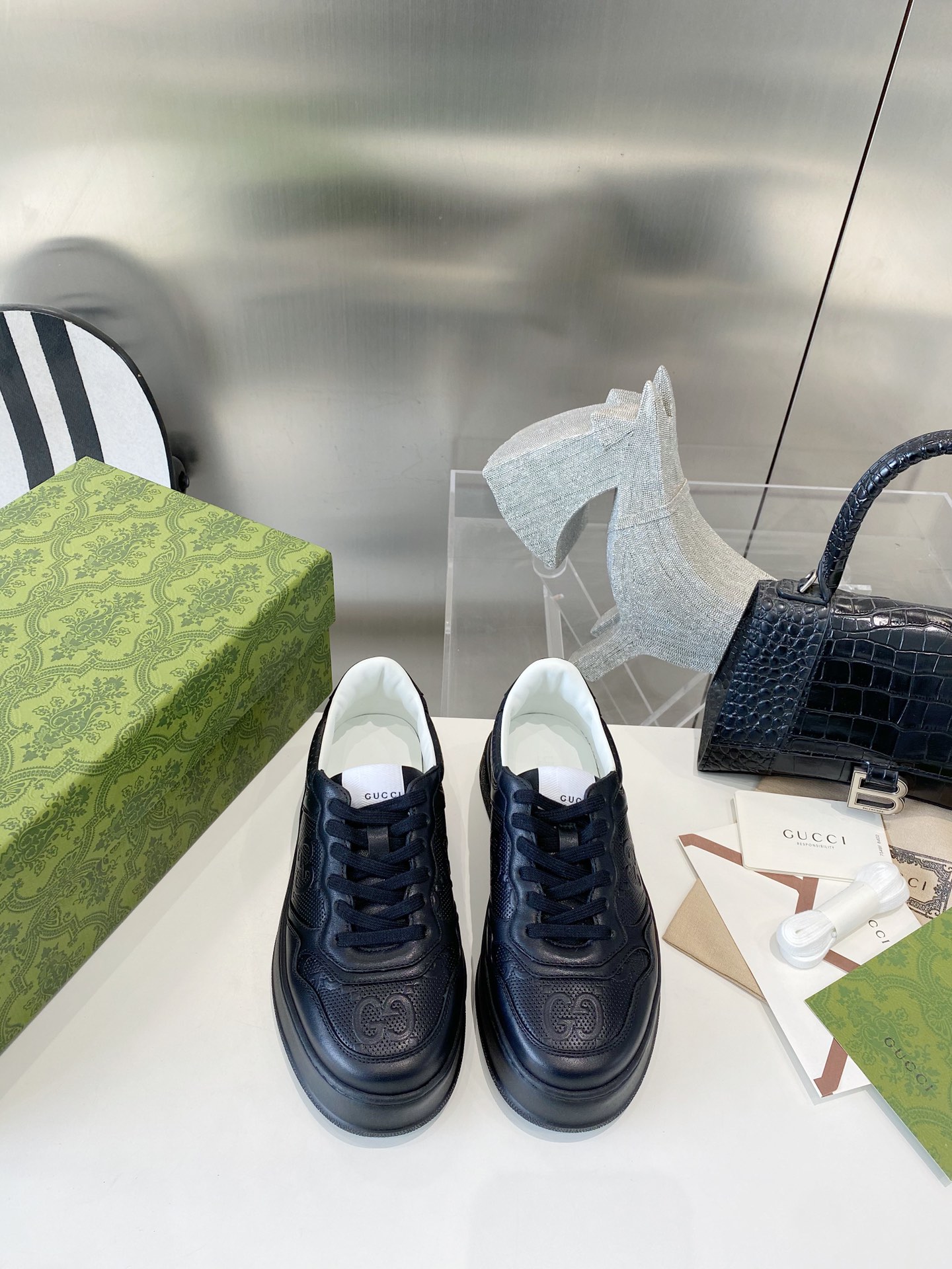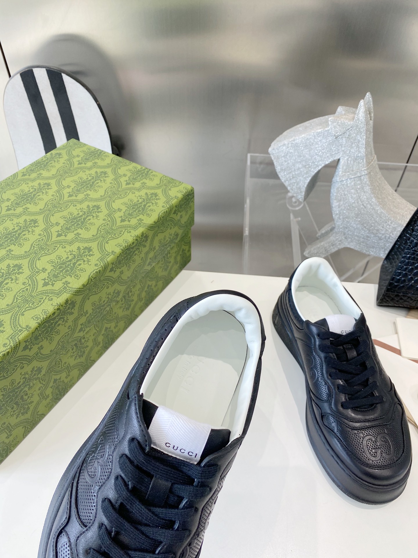 This shoes is AAAAA 1:1 quality (superb). Materials used are identical to the original ones. Gucci trademark marks are indistinguishable to the authentic. Photos take by actual shoes, what you receive will be 100% same with our photos.