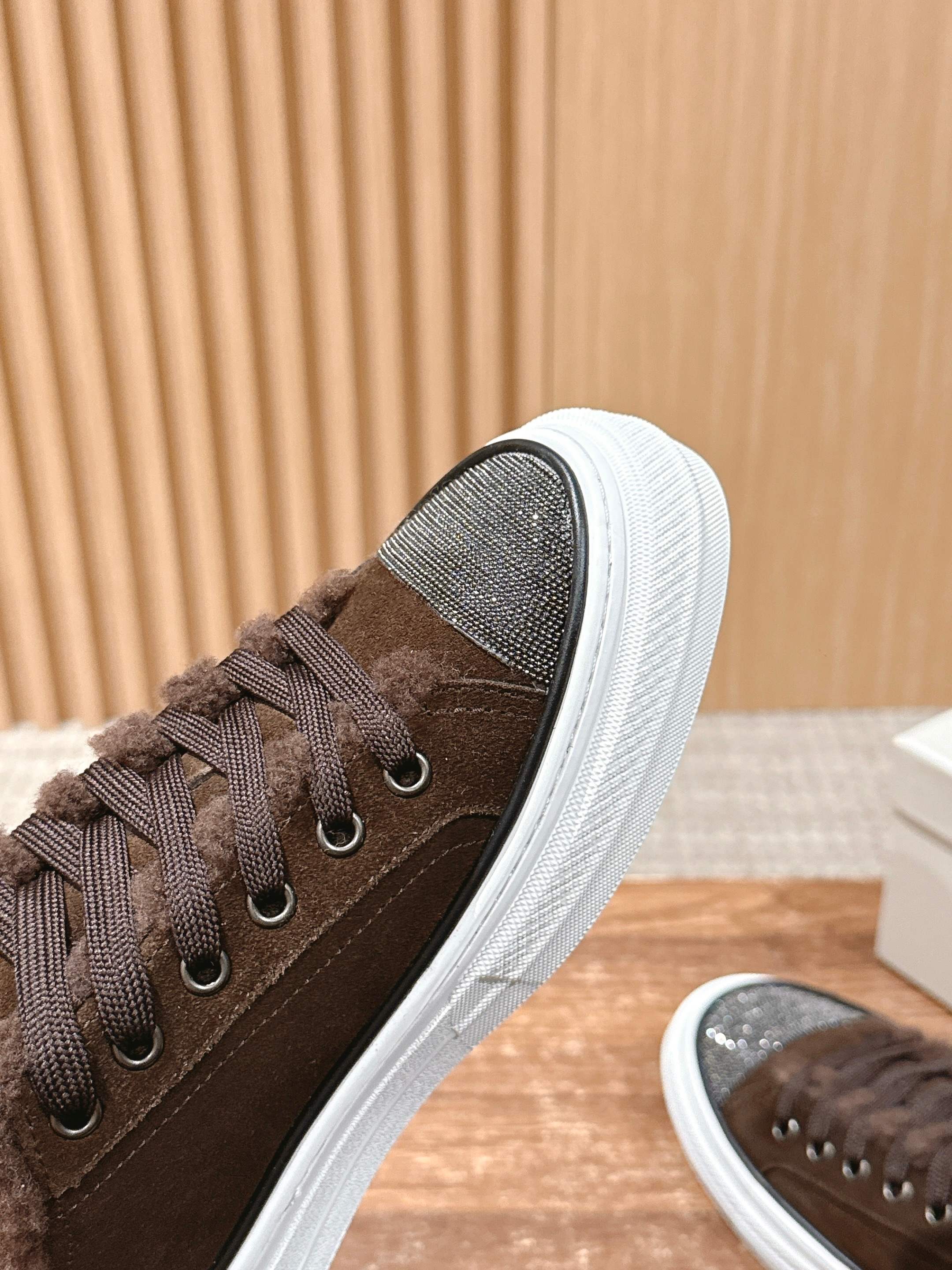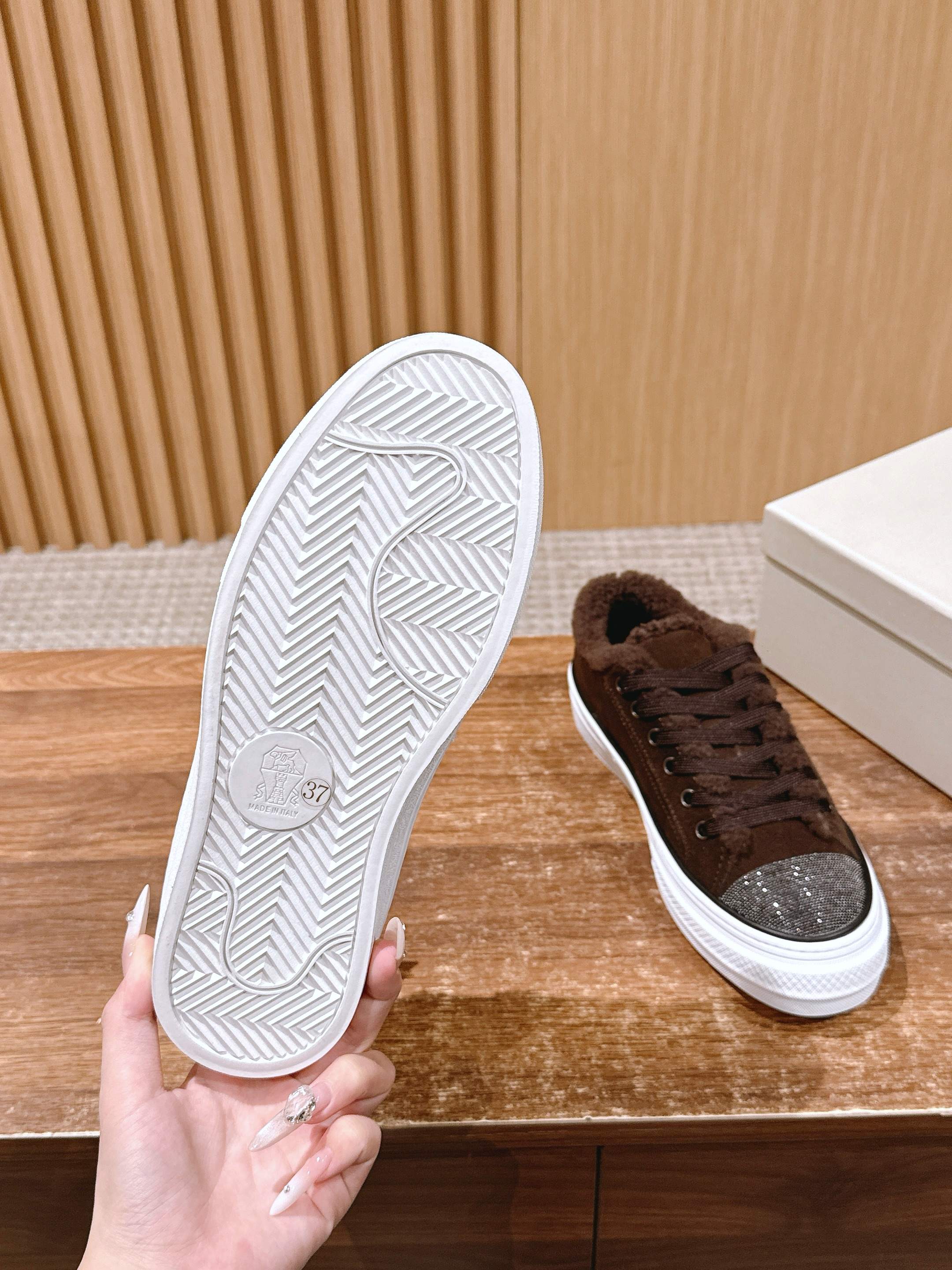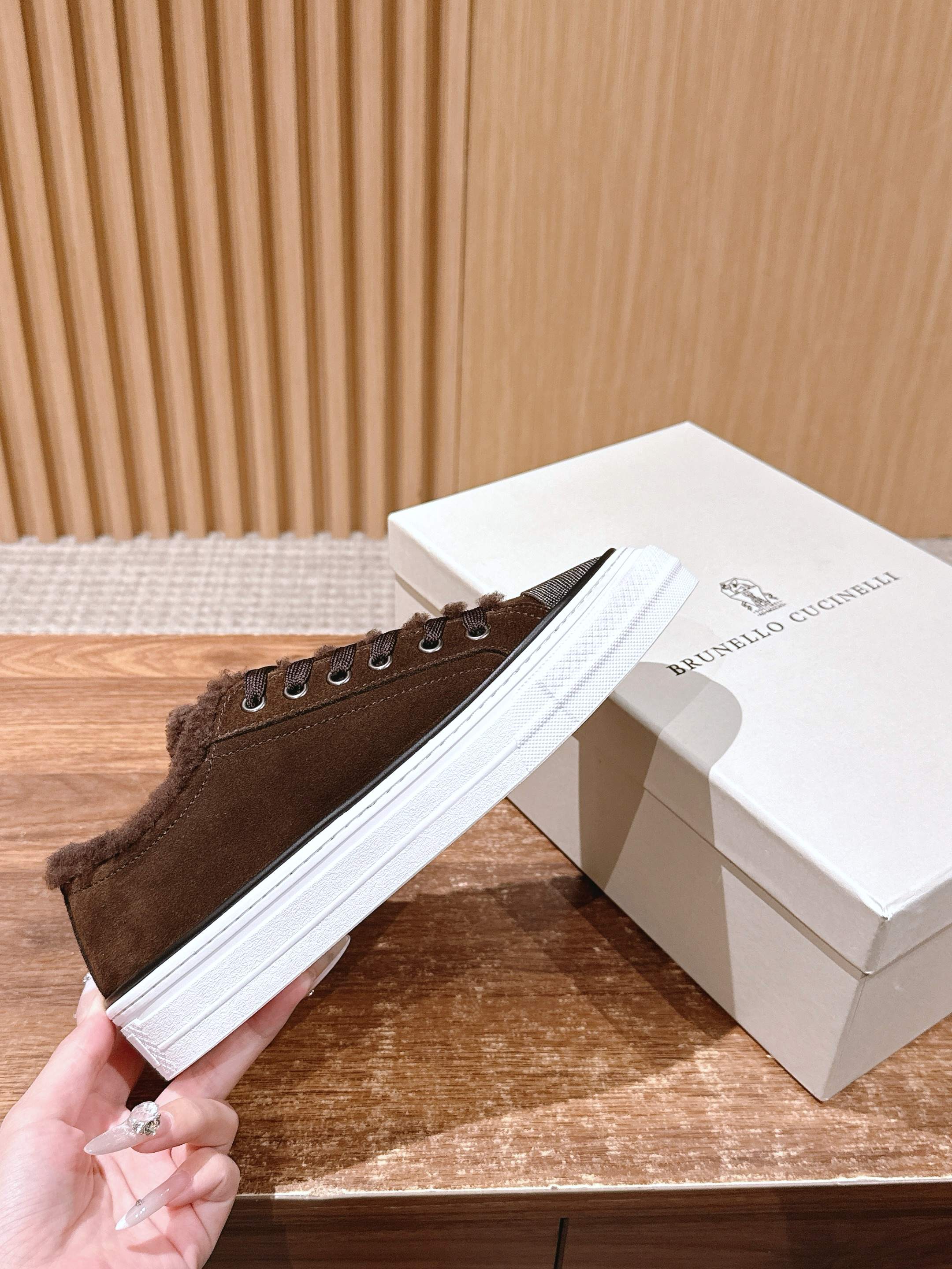 This shoes is AAAAA 1:1 quality (superb). Materials used are identical to the original ones. Brunello Cucinelli trademark marks are indistinguishable to the authentic. Photos take by actual shoes, what you receive will be 100% same with our photos.