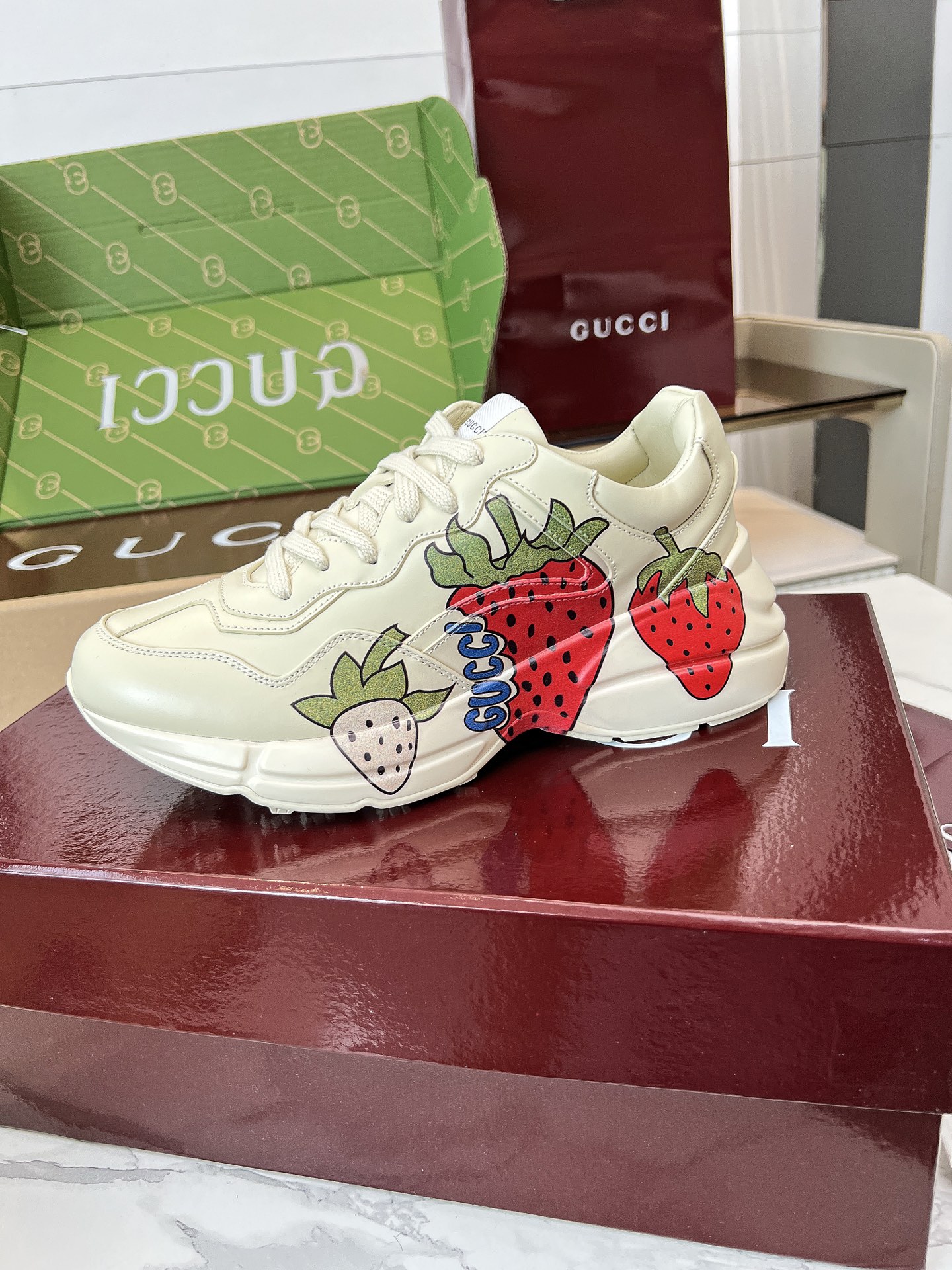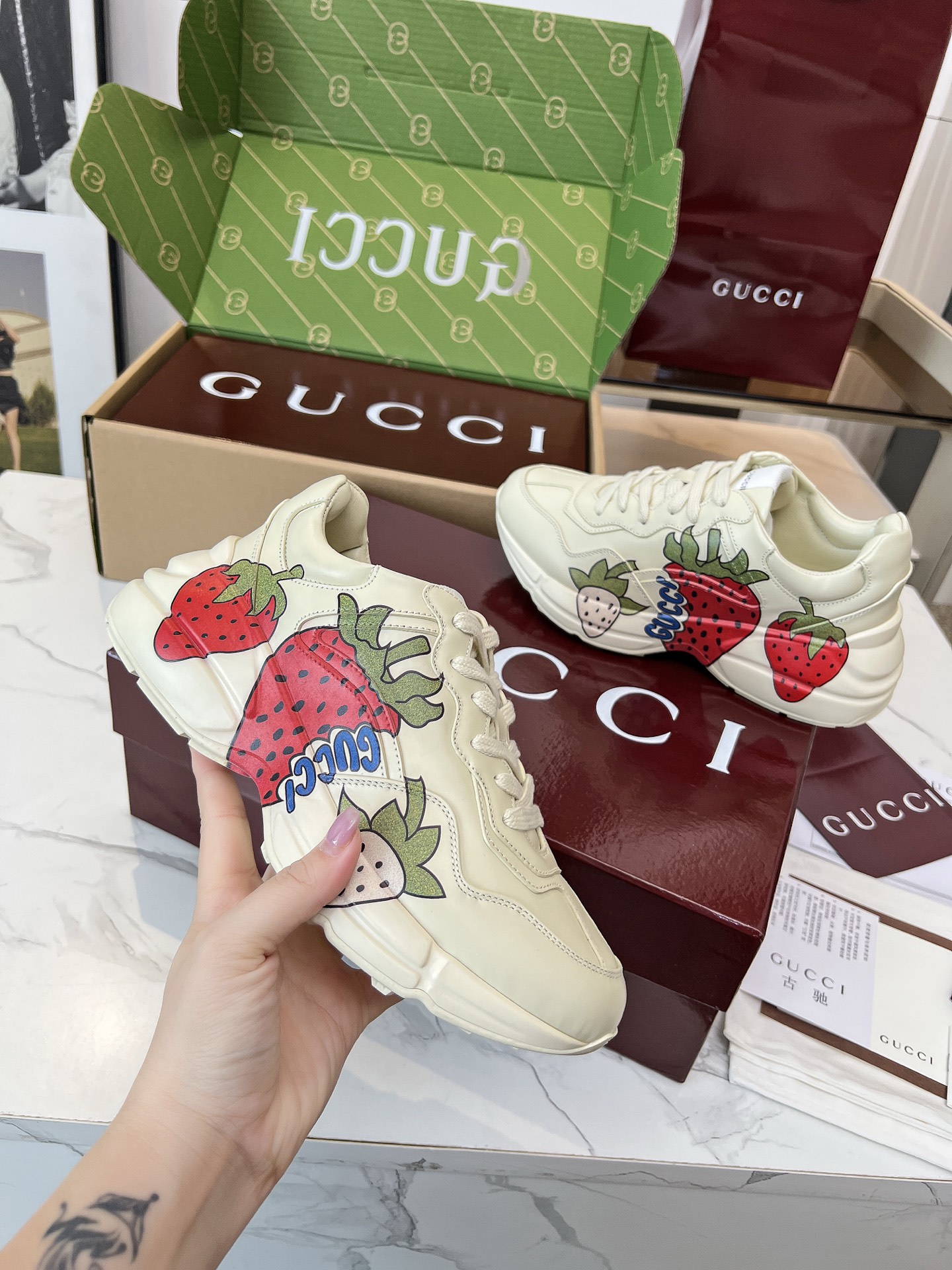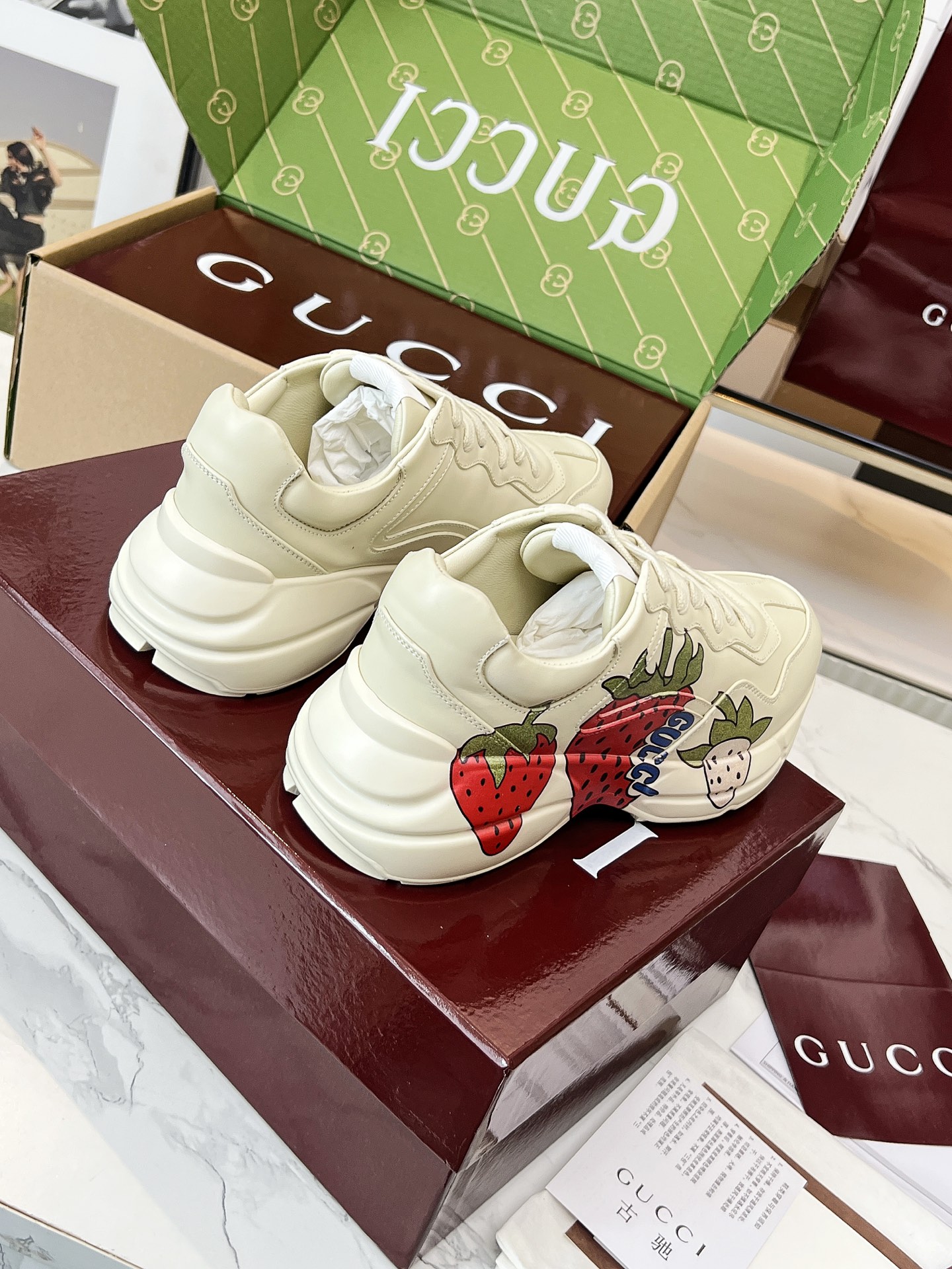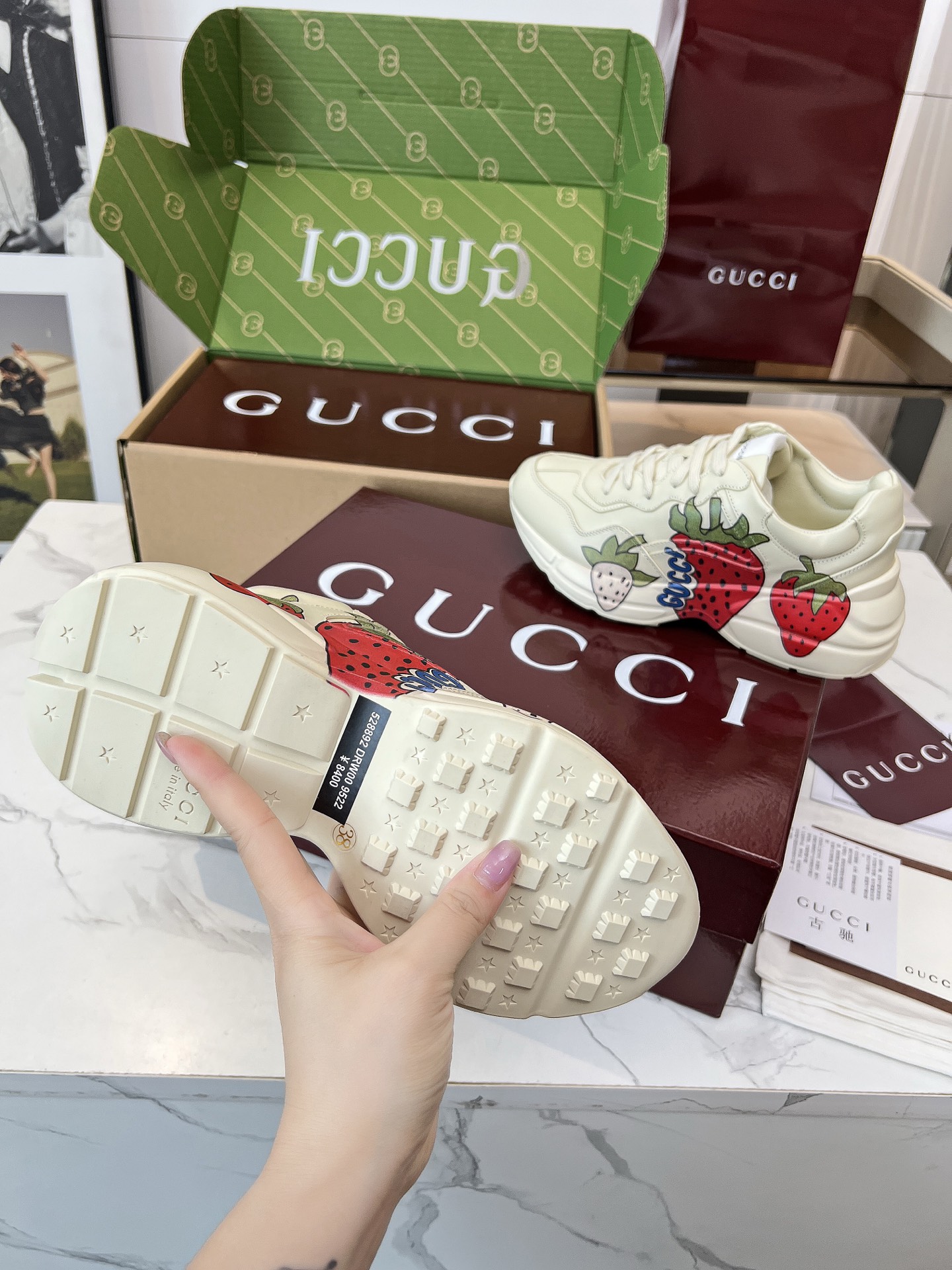 This shoes is AAAAA 1:1 quality (superb). Materials used are identical to the original ones. Gucci trademark marks are indistinguishable to the authentic. Photos take by actual shoes, what you receive will be 100% same with our photos.