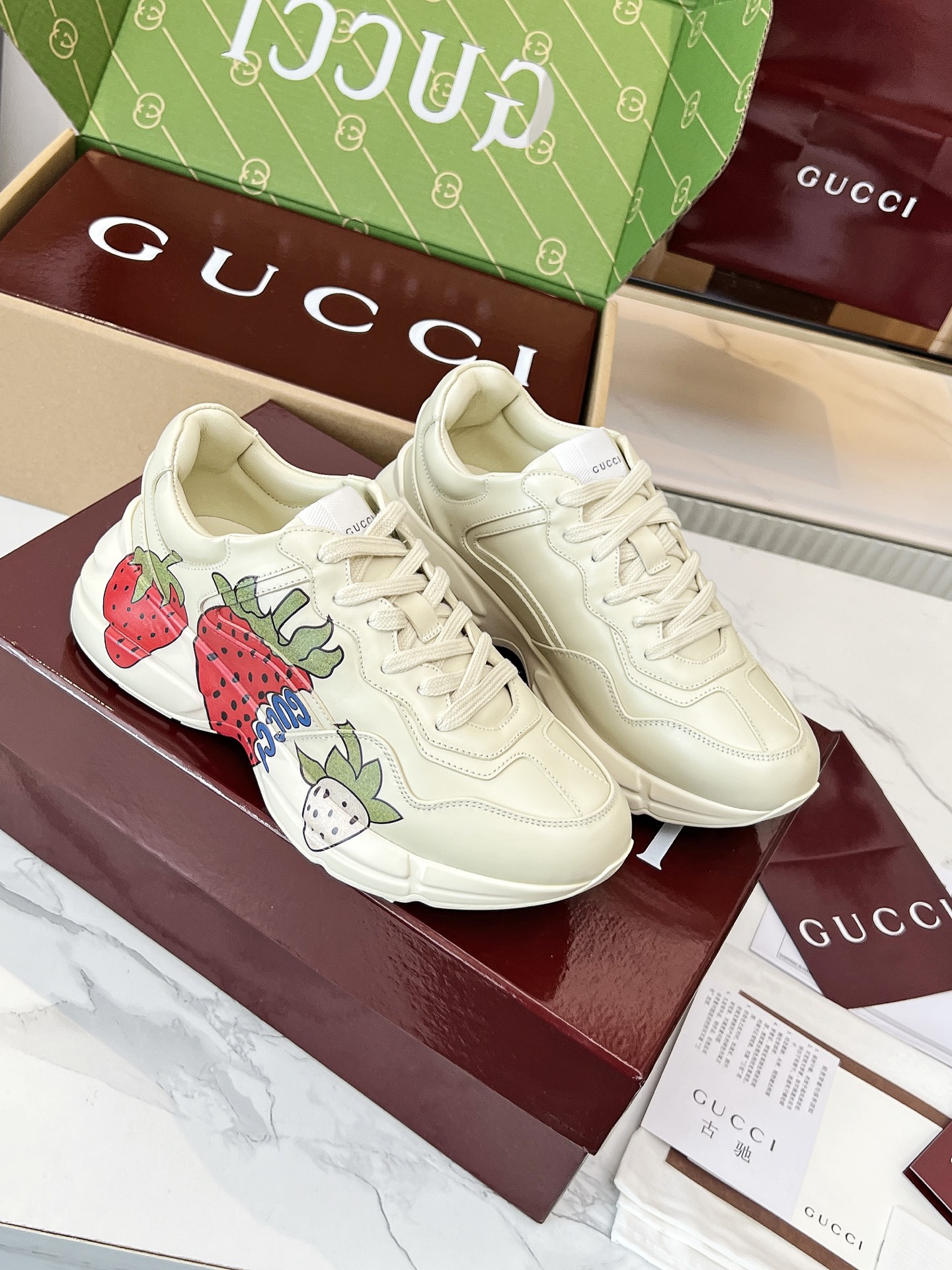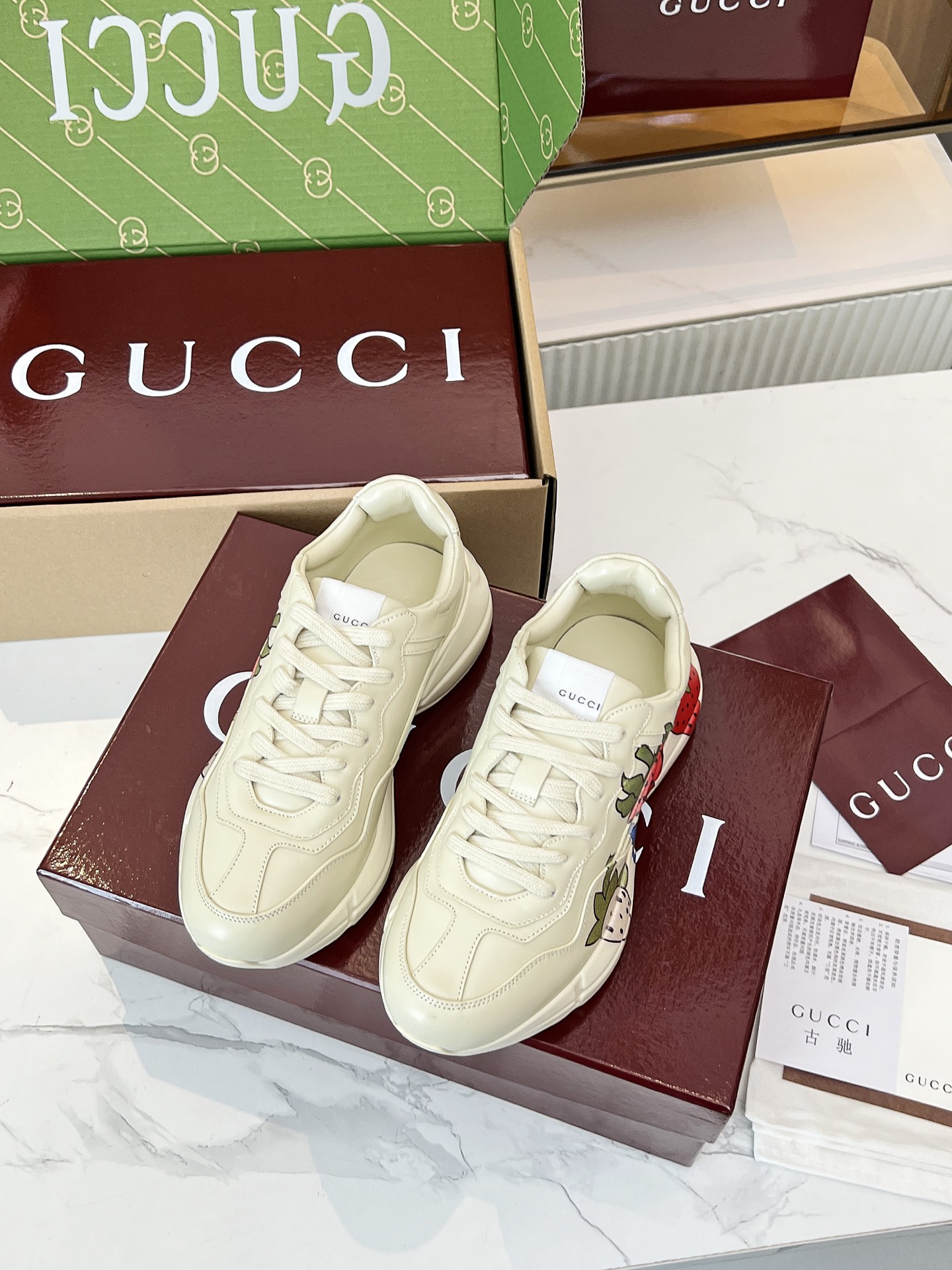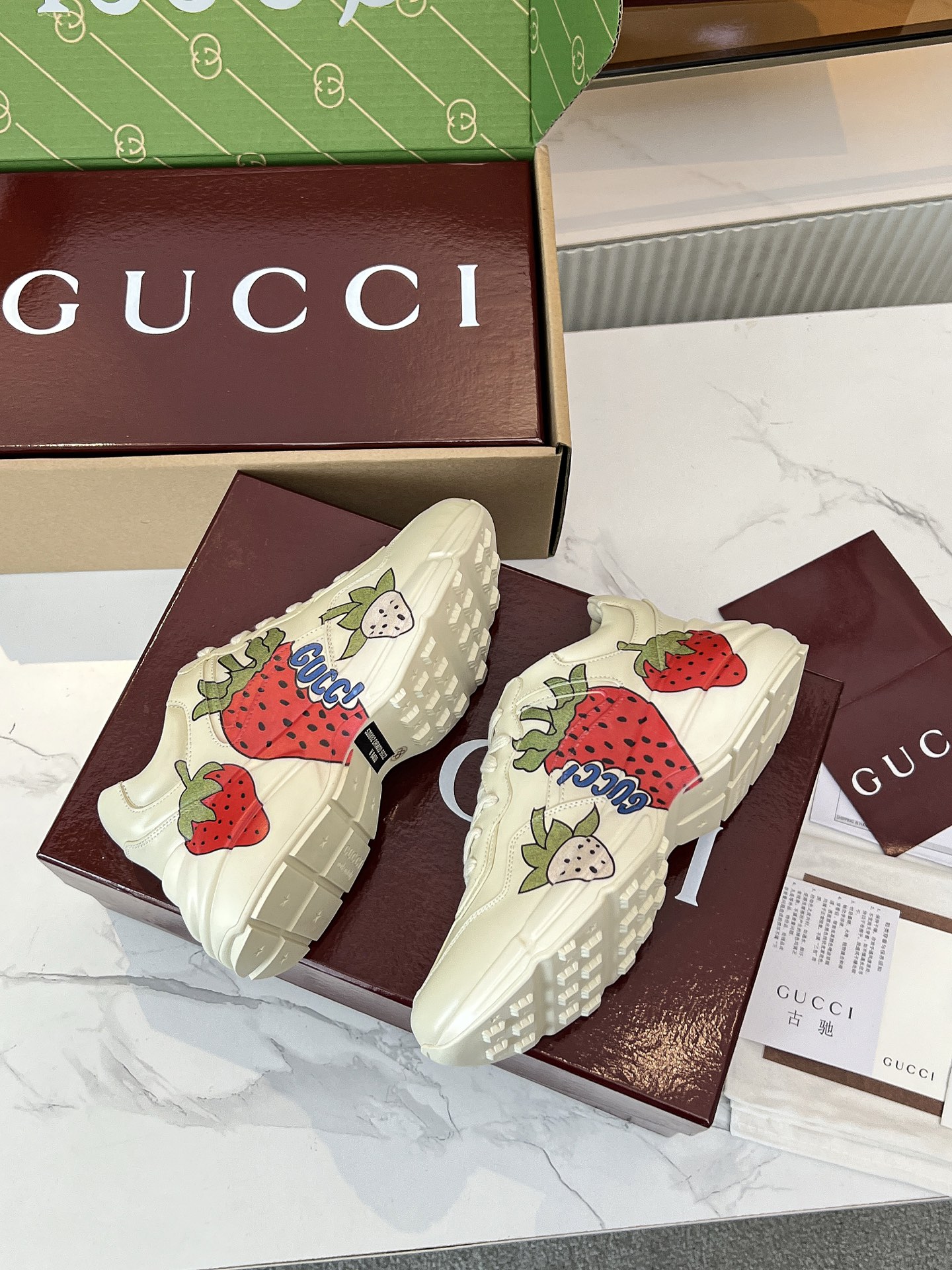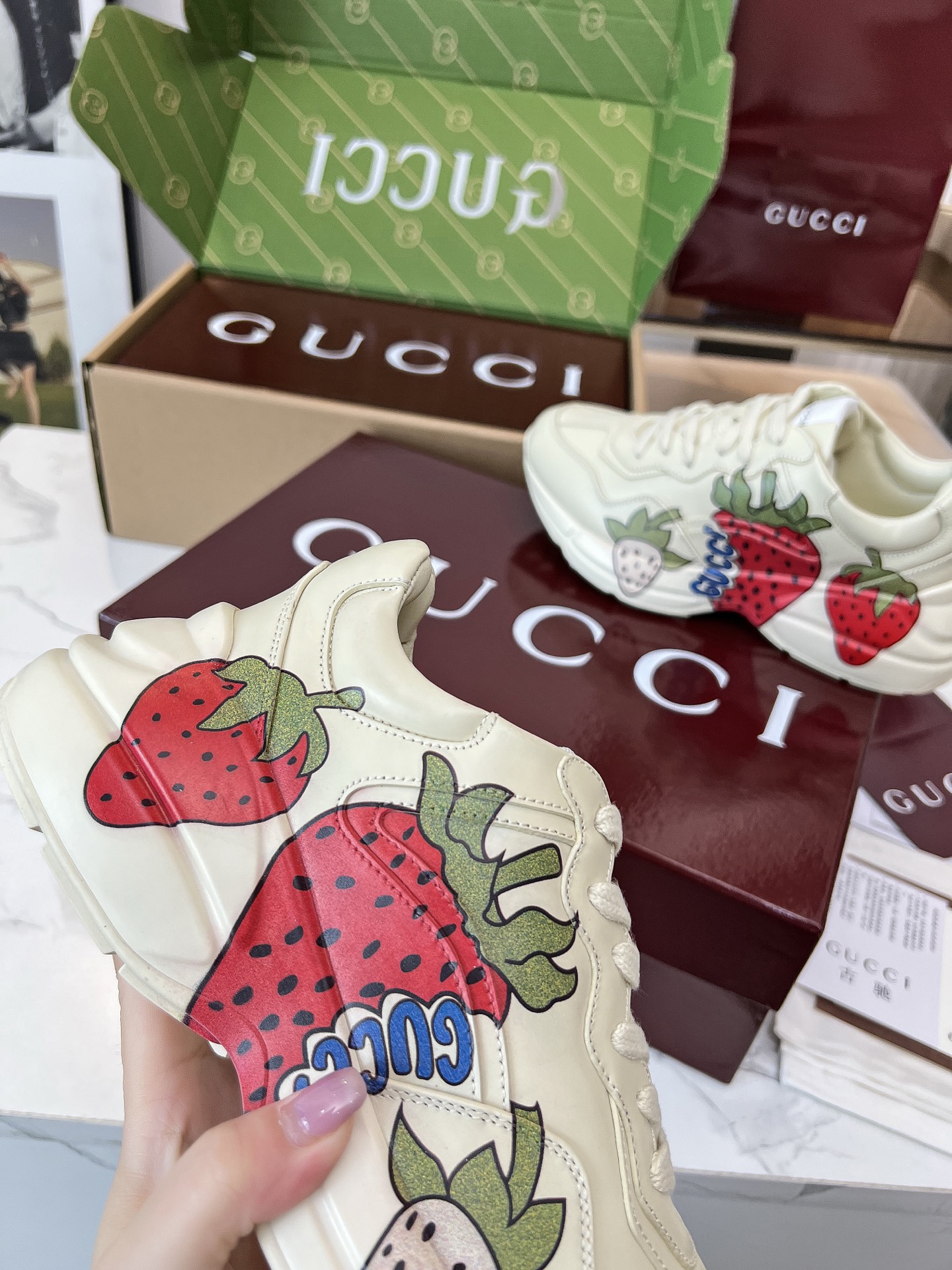 This shoes is AAAAA 1:1 quality (superb). Materials used are identical to the original ones. Gucci trademark marks are indistinguishable to the authentic. Photos take by actual shoes, what you receive will be 100% same with our photos.