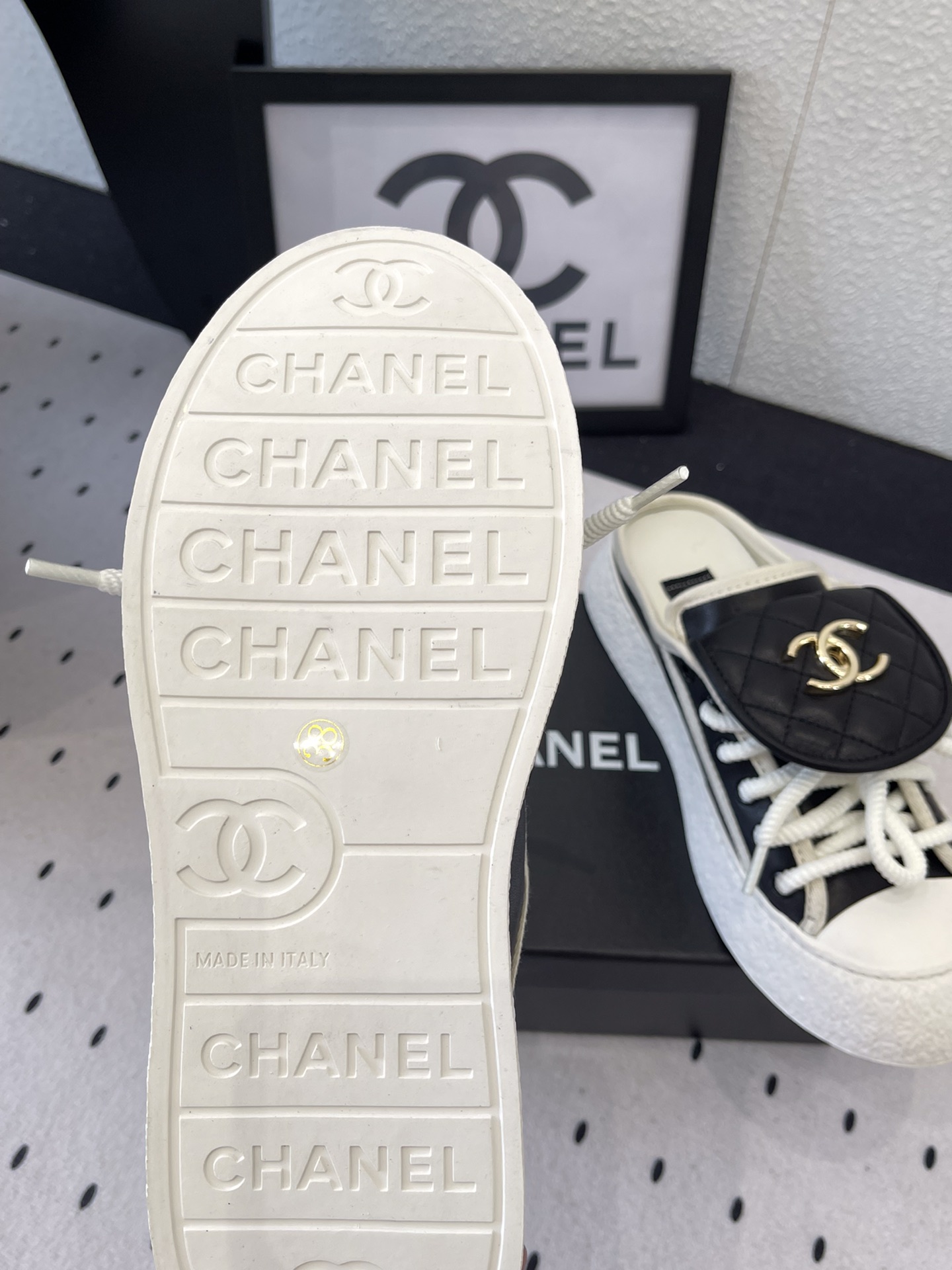 This shoes is AAAAA 1:1 quality (superb). Materials used are identical to the original ones. Chanel trademark marks are indistinguishable to the authentic. Photos take by actual shoes, what you receive will be 100% same with our photos.