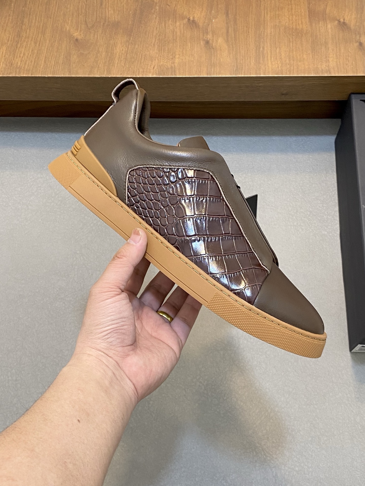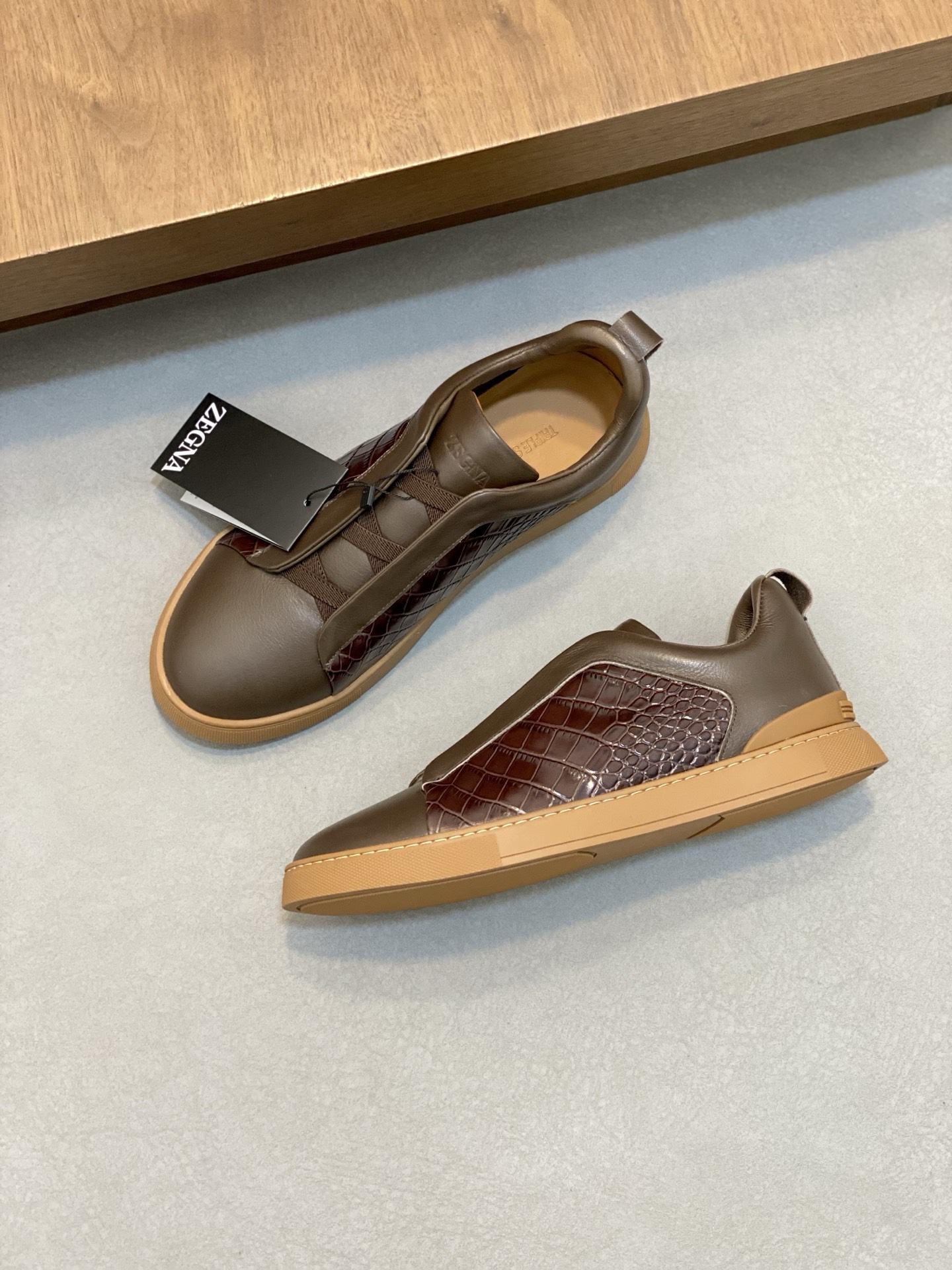 This shoes is AAAAA 1:1 quality (superb). Materials used are identical to the original ones. Zegna trademark marks are indistinguishable to the authentic. Photos take by actual shoes, what you receive will be 100% same with our photos.