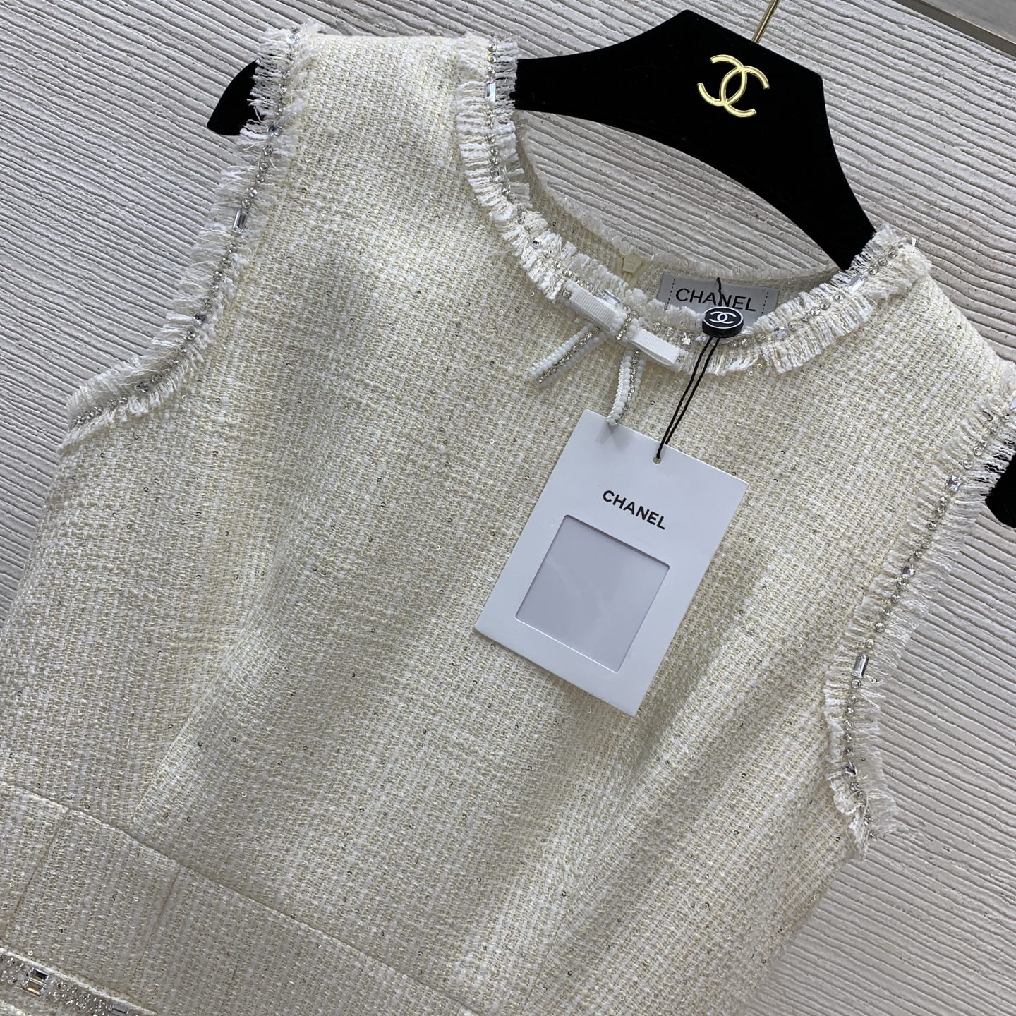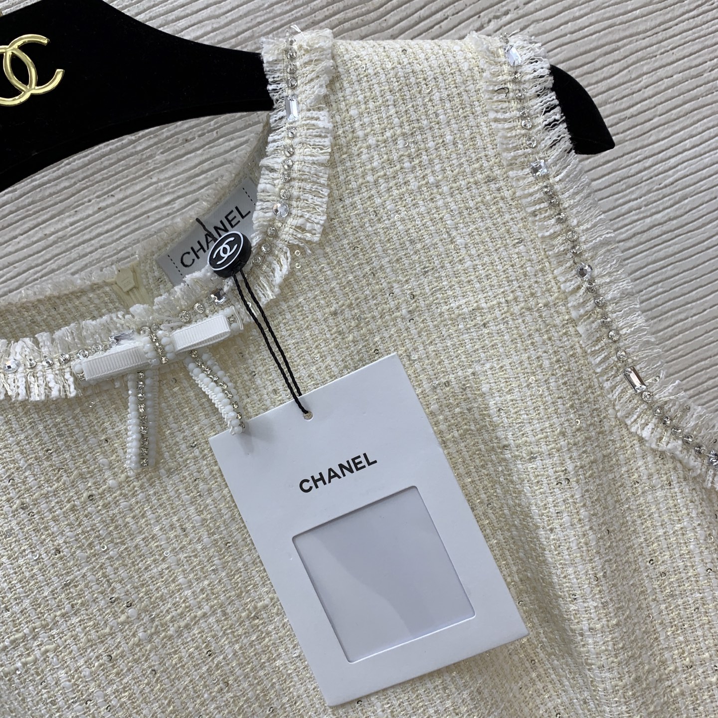 This clothes is AAAAA 1:1 quality (superb). Materials used are identical to the original ones. Chanel trademark marks are indistinguishable to the authentic. Photos take by actual clothes, what you receive will be 100% same with our photos.