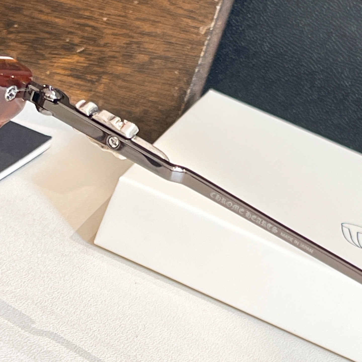 This sunglasses is AAAAA 1:1 quality (superb). Materials used are identical to the original ones. Chrome Hearts trademark marks are indistinguishable to the authentic. Photos take by actual sunglasses, what you receive will be 100% same with our photos.